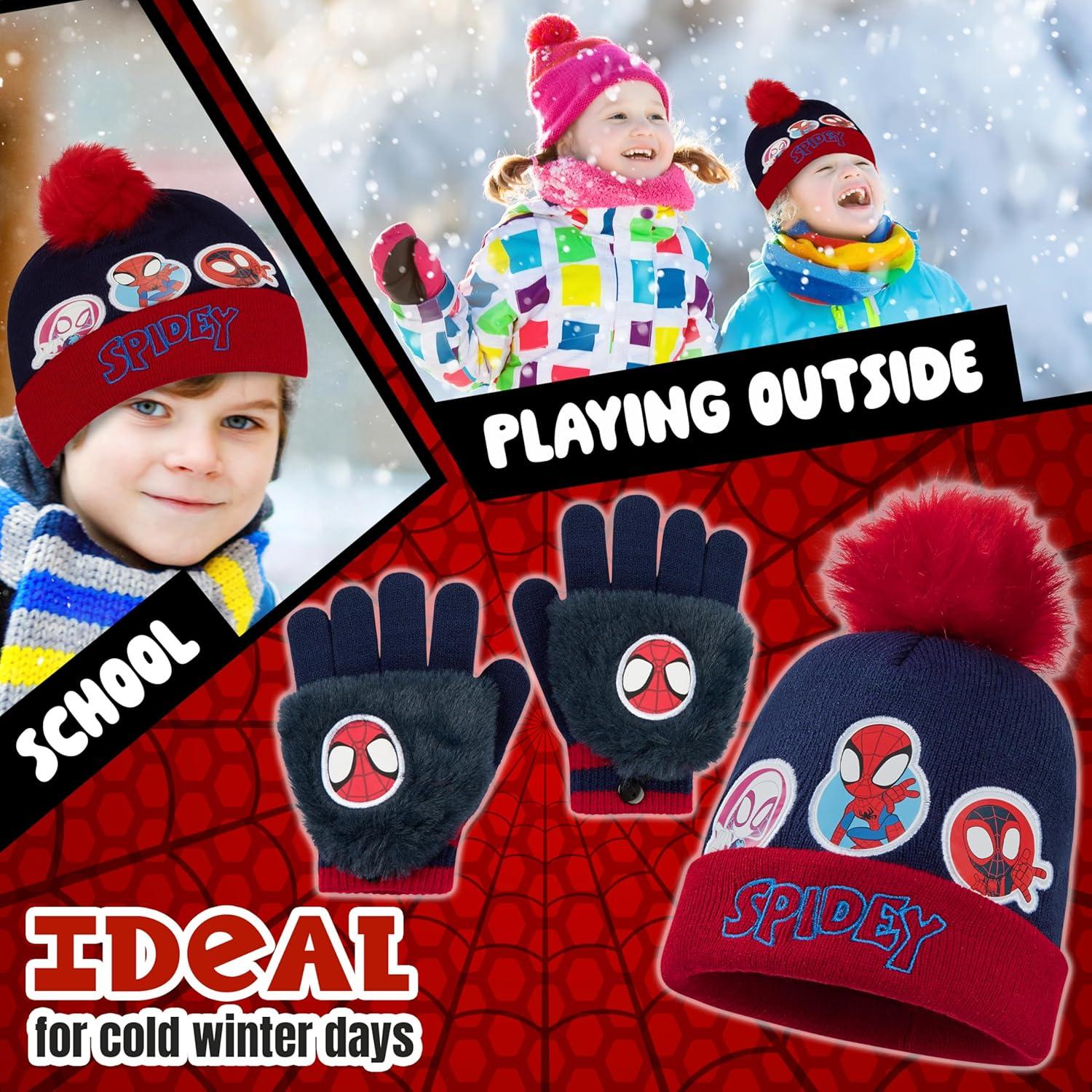 Marvel Boys Hat and Gloves Set for Boys Kids Winter Beanie Hat Cold Weather Accessories Set Avengers Gifts(Red Spiderman 3 Pcs)