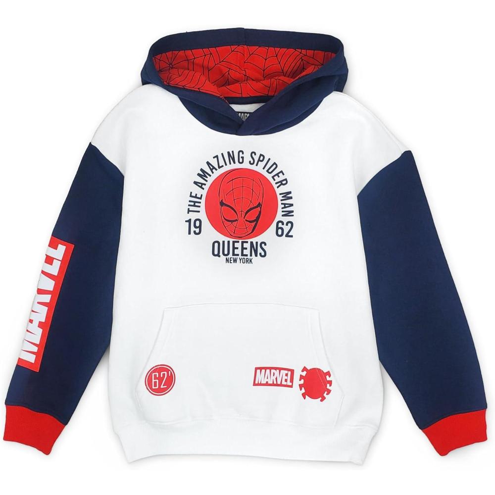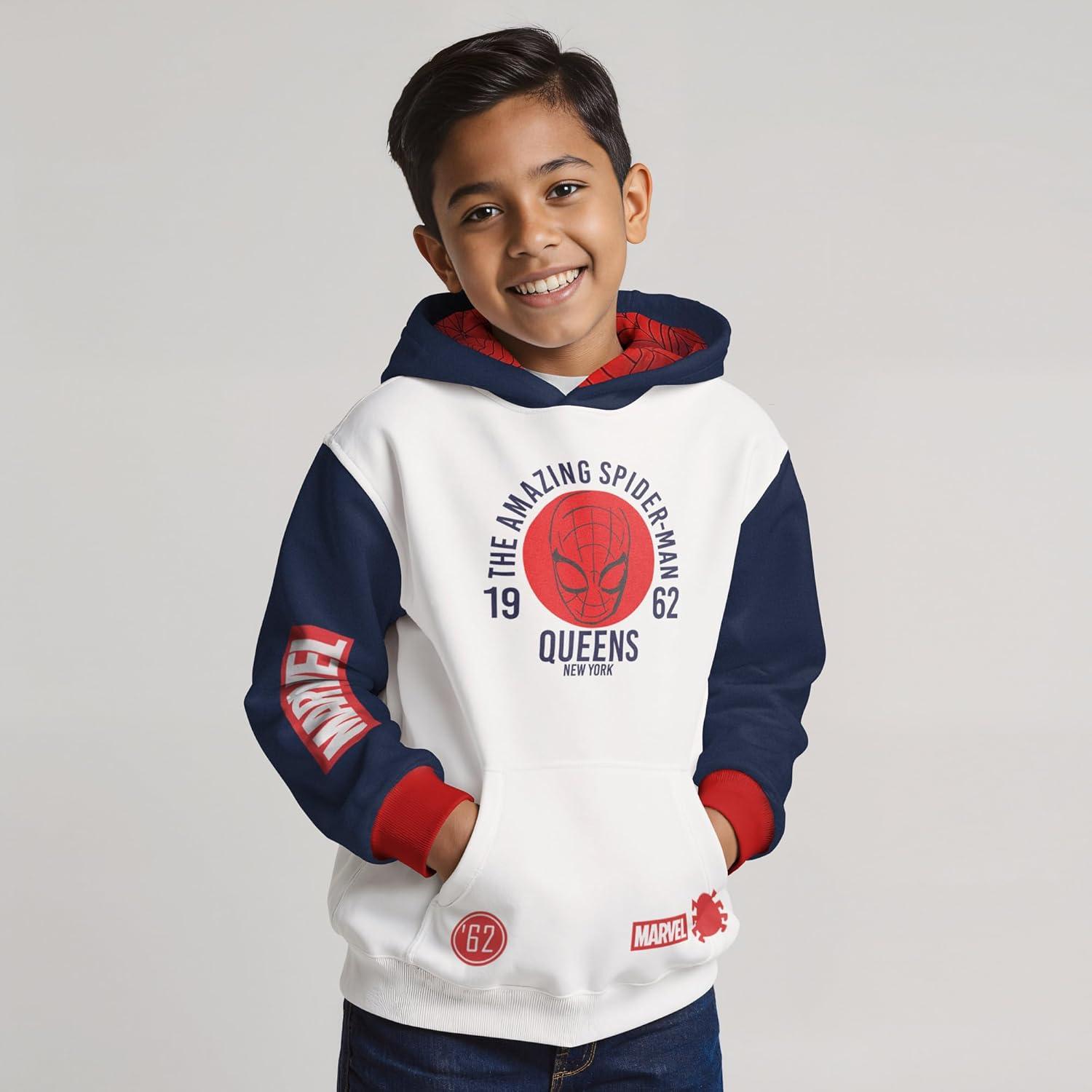 Marvel Boy’s Spiderman Classic Spidey Circle Queens Pullover Hoodie(White/Navy)
