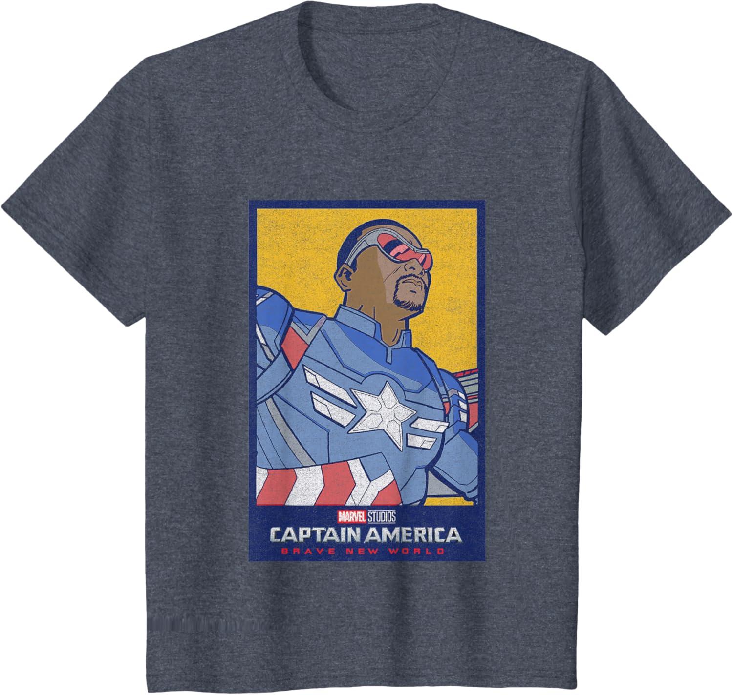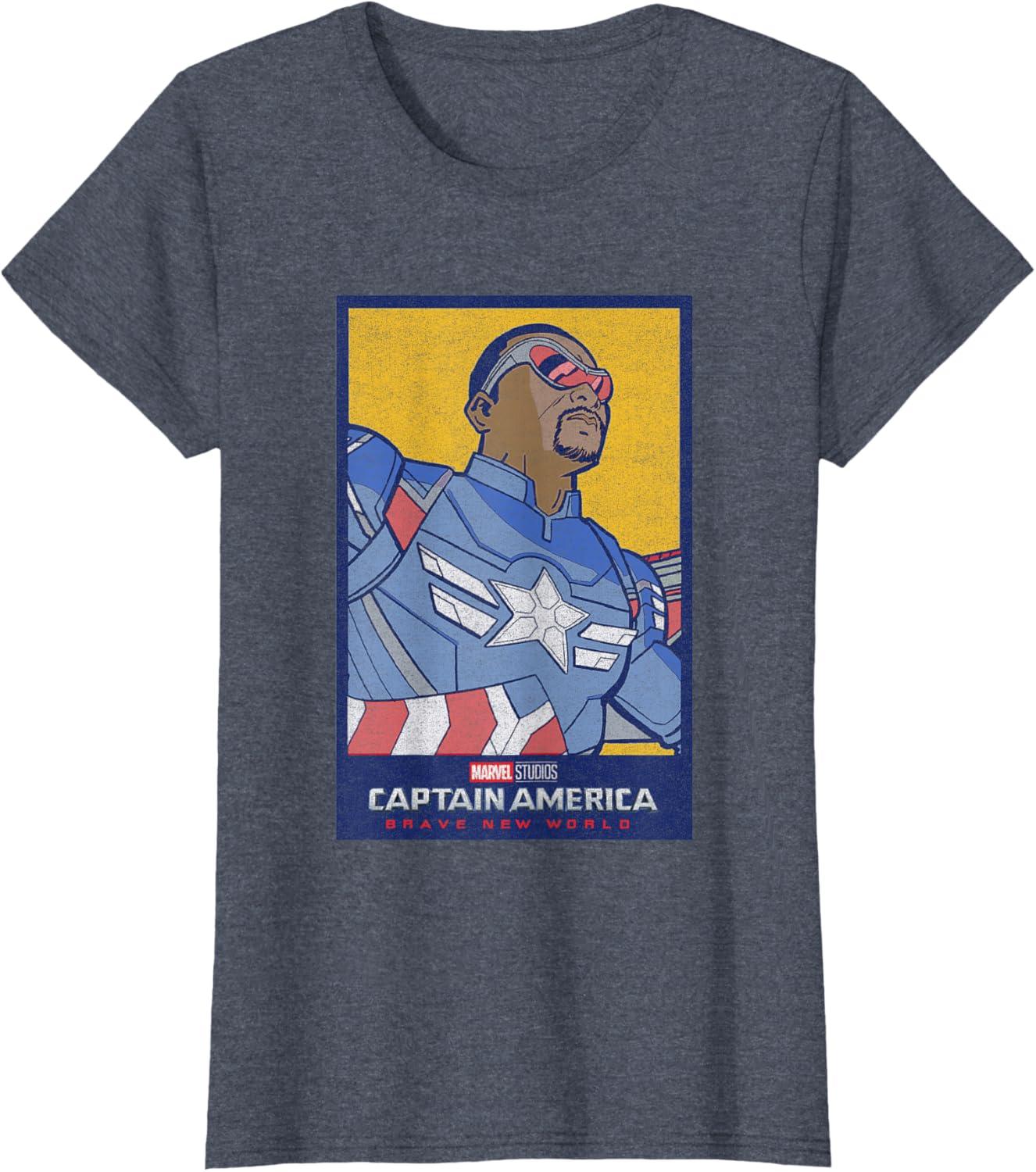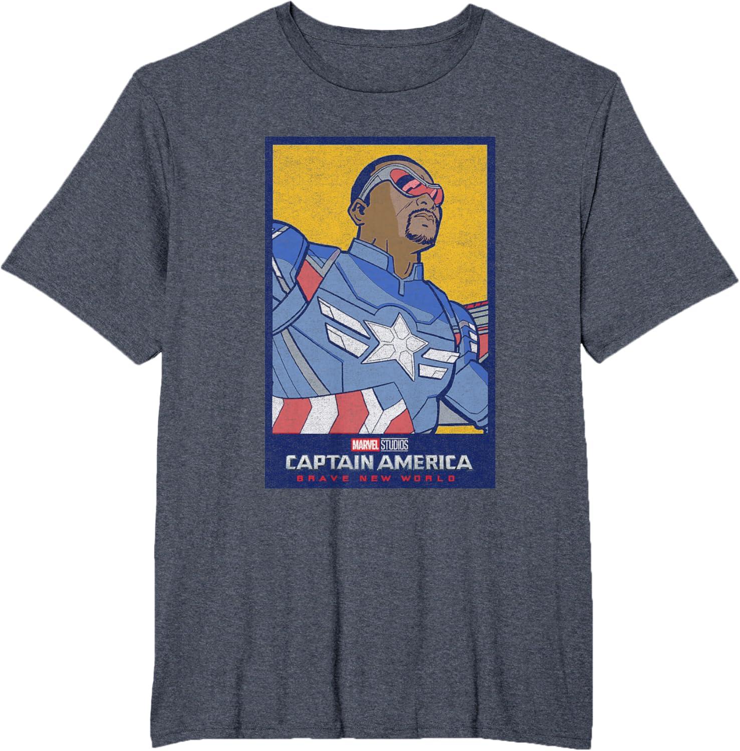 Marvel Captain America: Brave New World Cap Face Poster T-Shirt(Heather Blue)