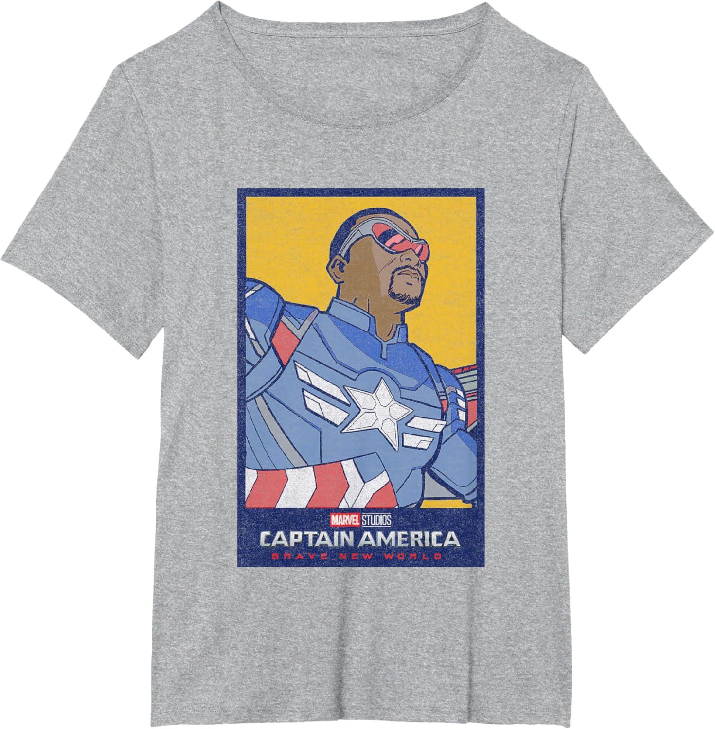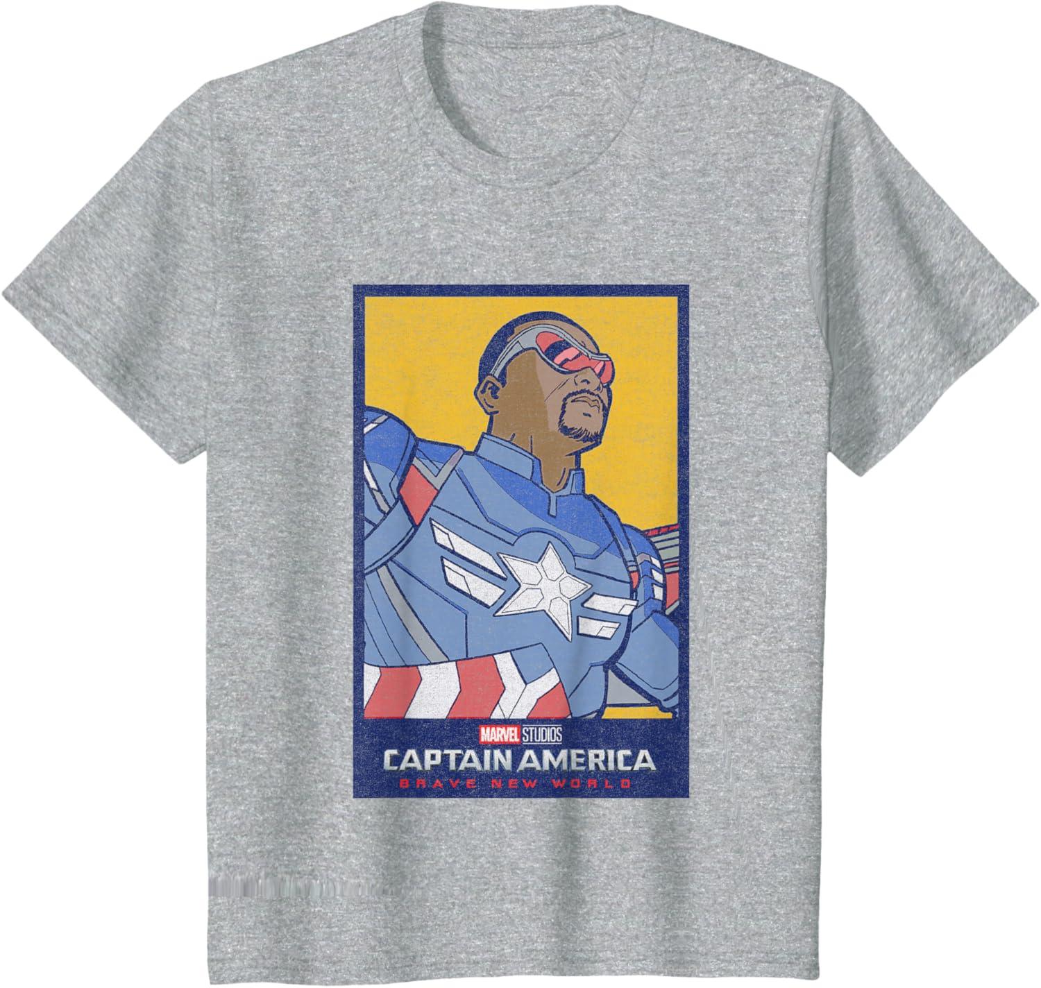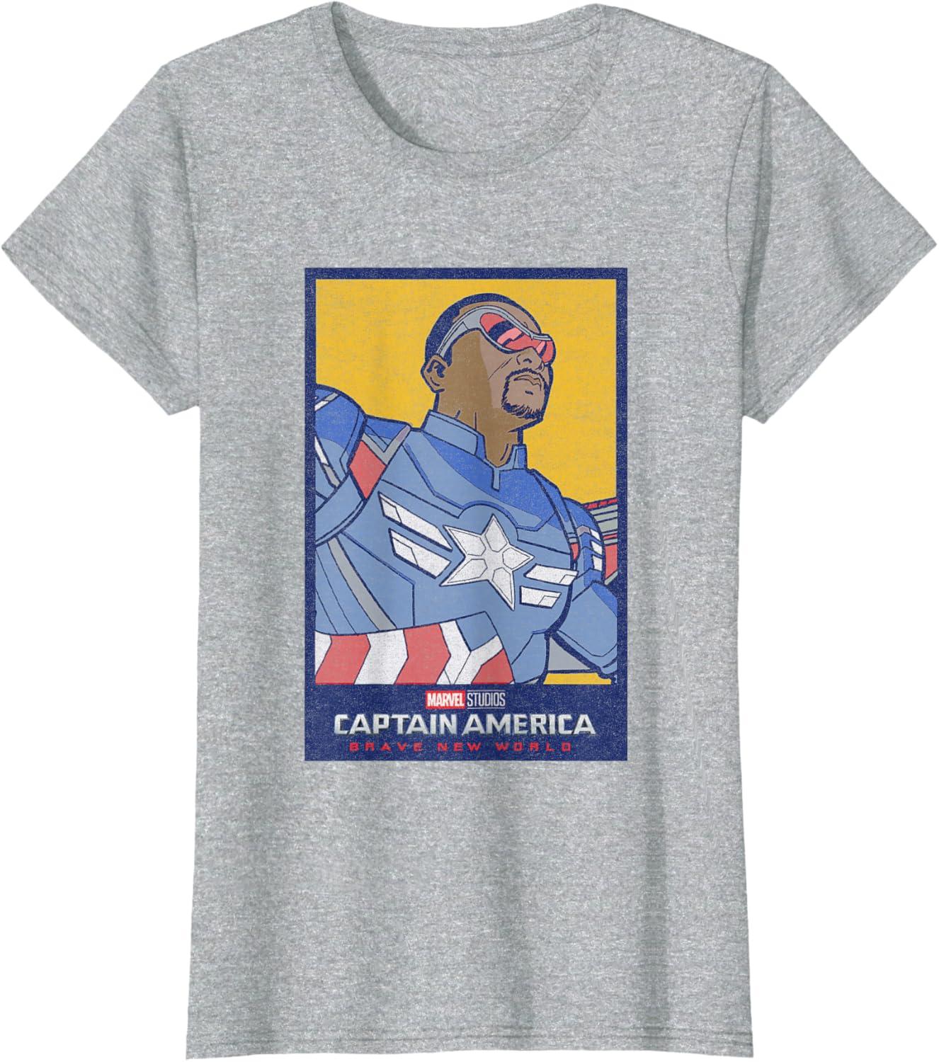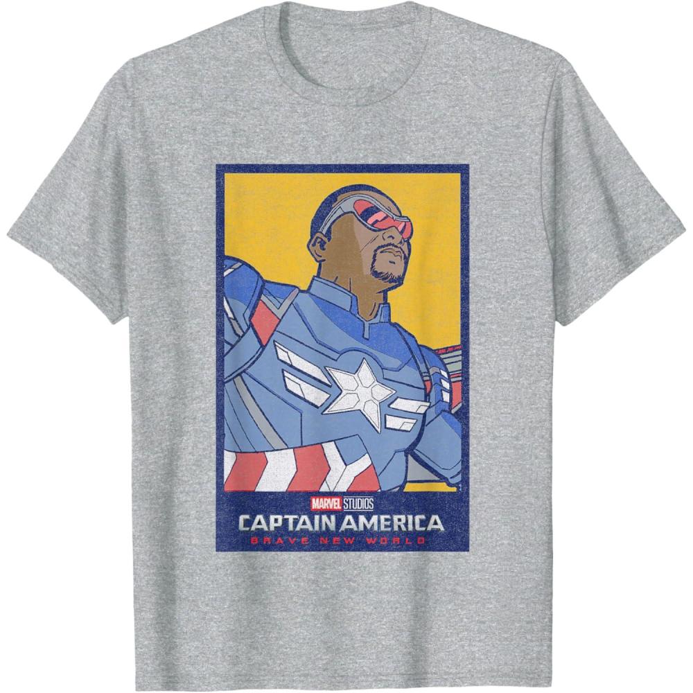 Marvel Captain America: Brave New World Cap Face Poster T-Shirt(Heather Grey)