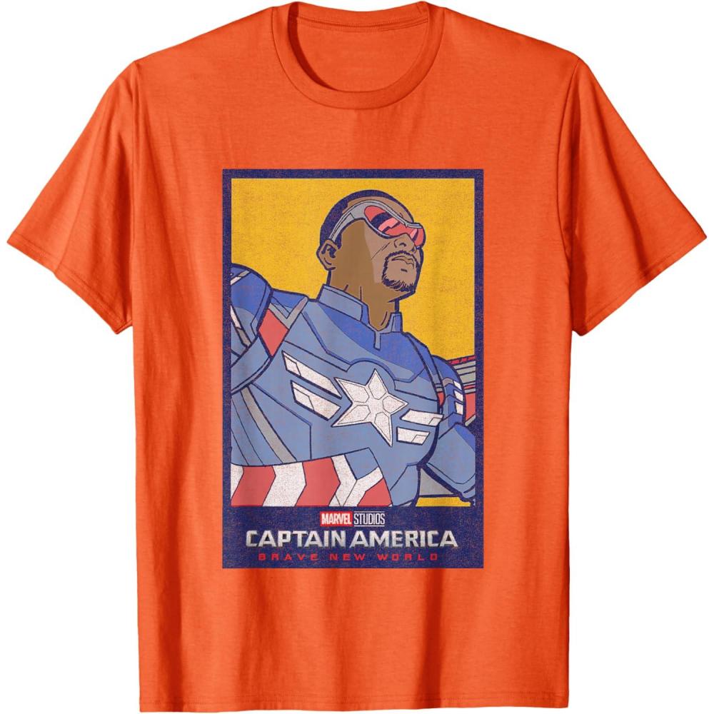 Marvel Captain America: Brave New World Cap Face Poster T-Shirt(Orange)