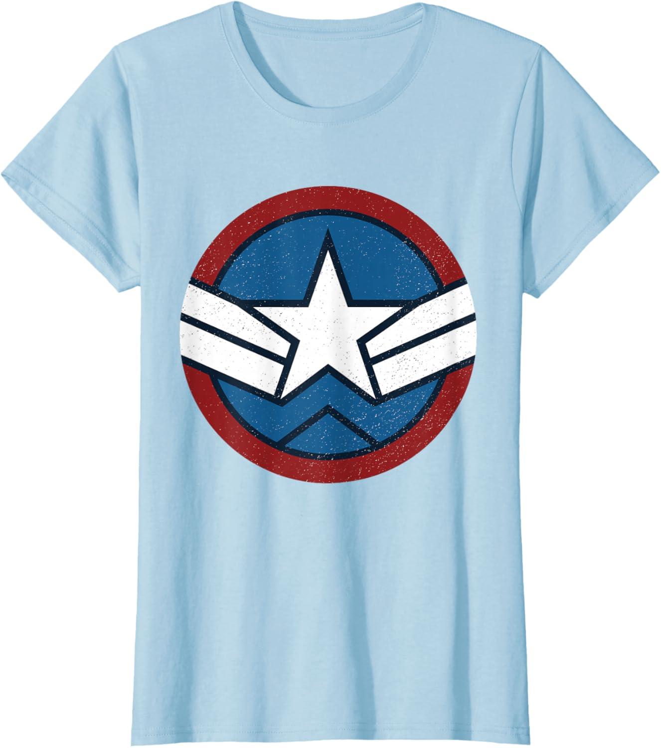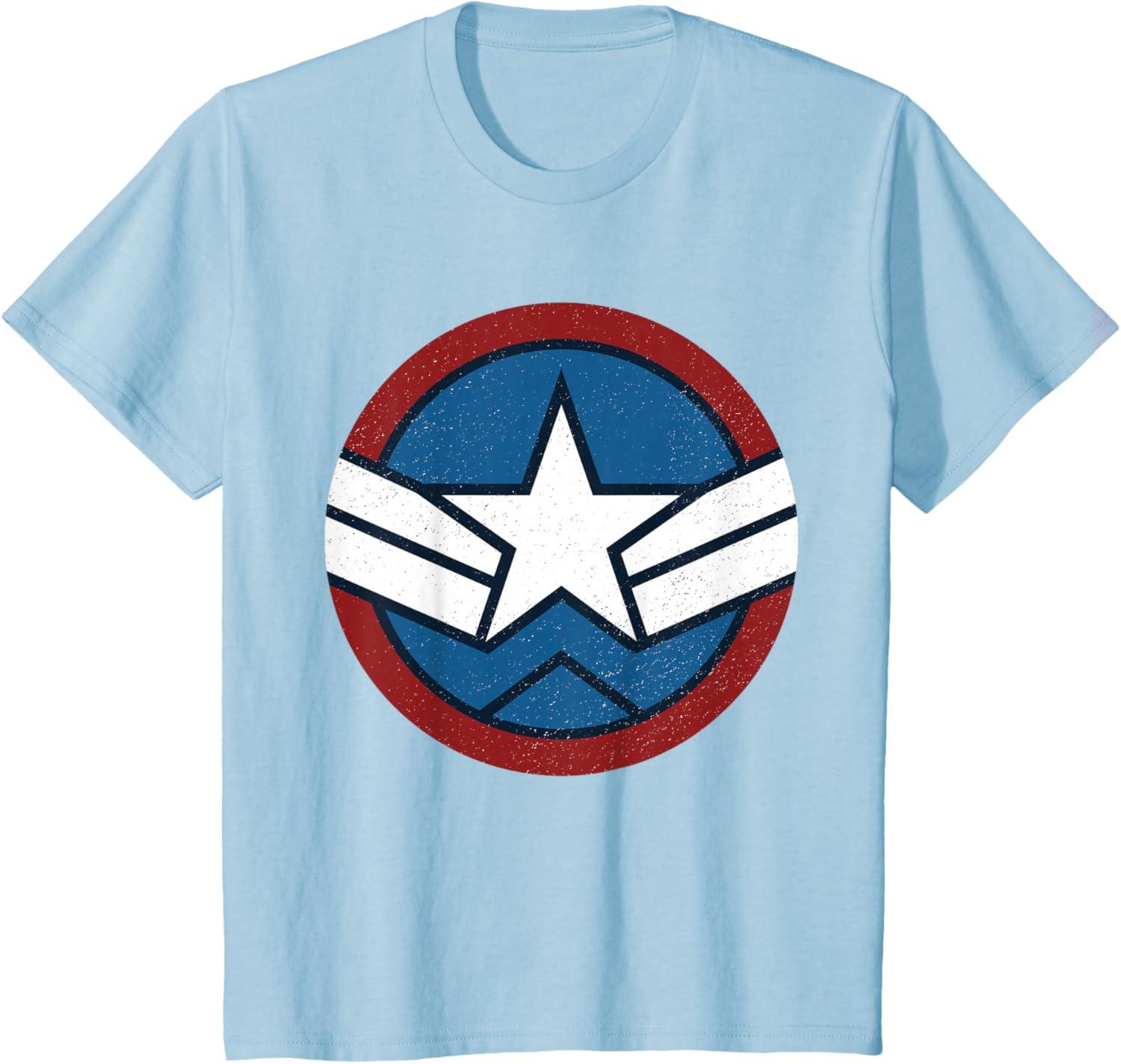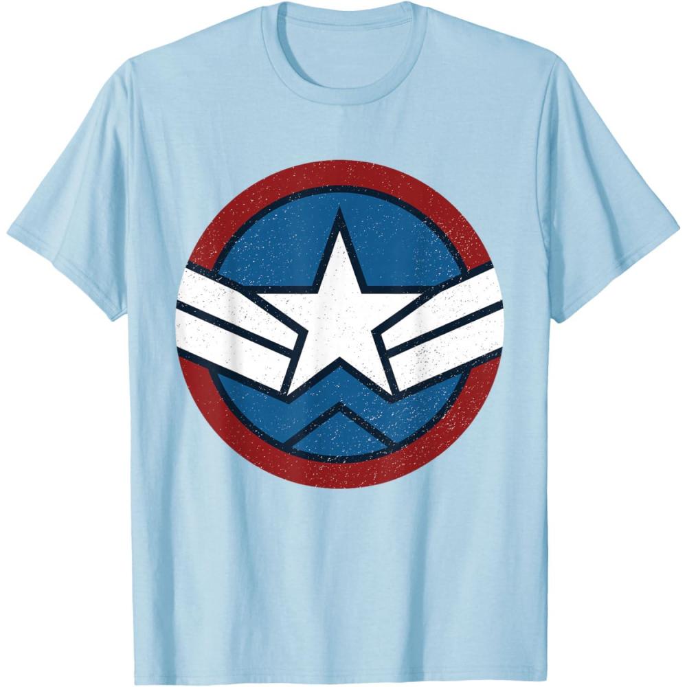 Marvel Captain America: Brave New World Distressed Star Logo T-Shirt(Baby Blue)