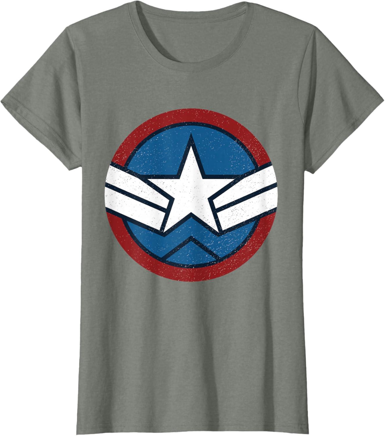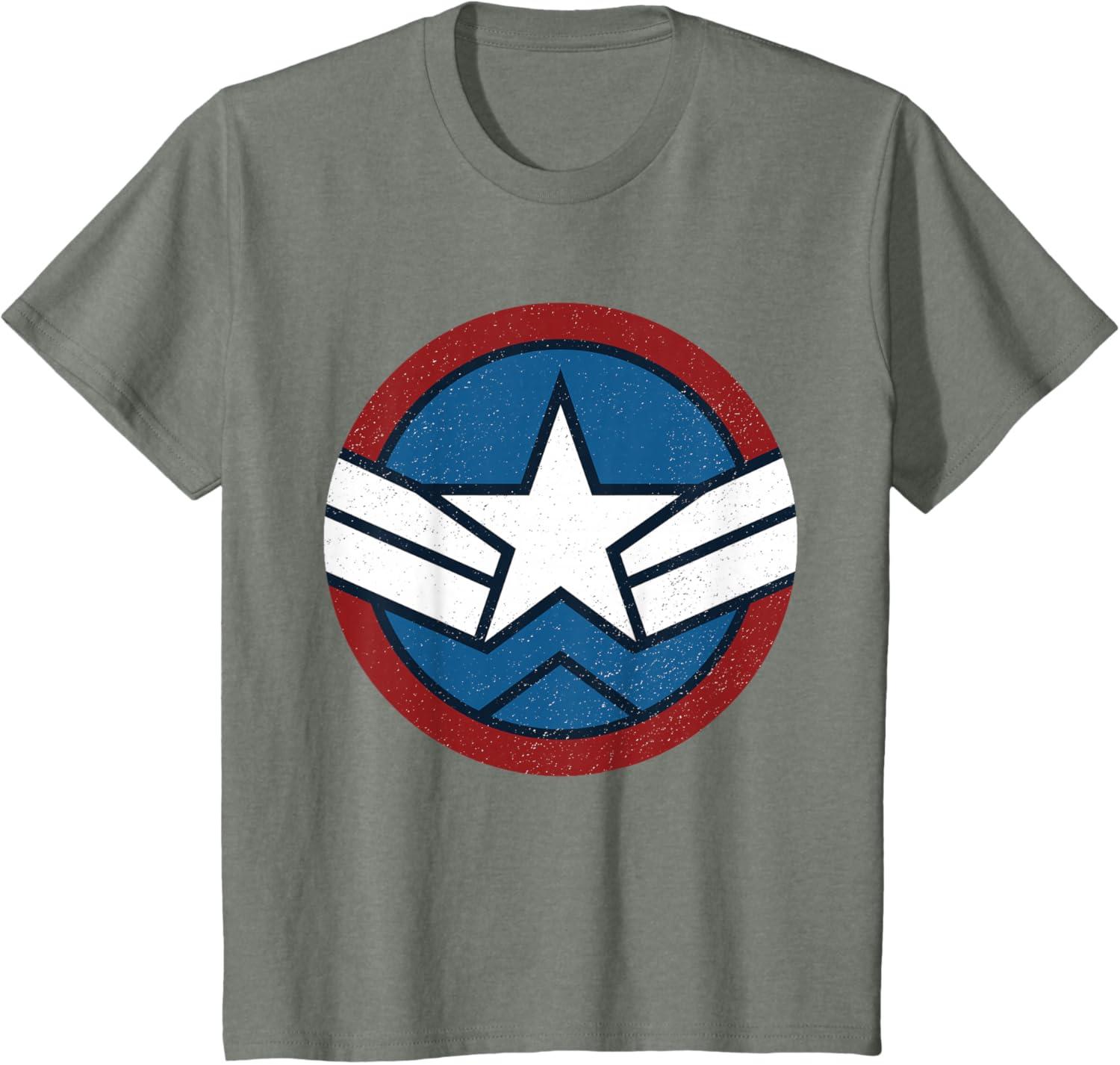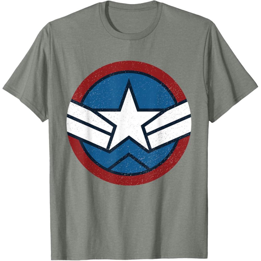 Marvel Captain America: Brave New World Distressed Star Logo T-Shirt(Olive Heather)