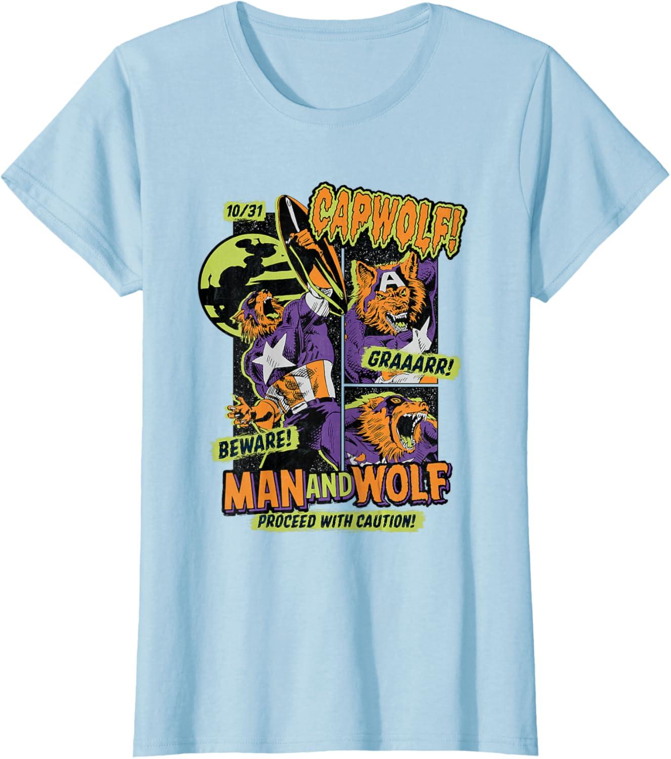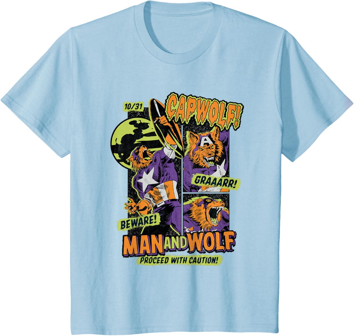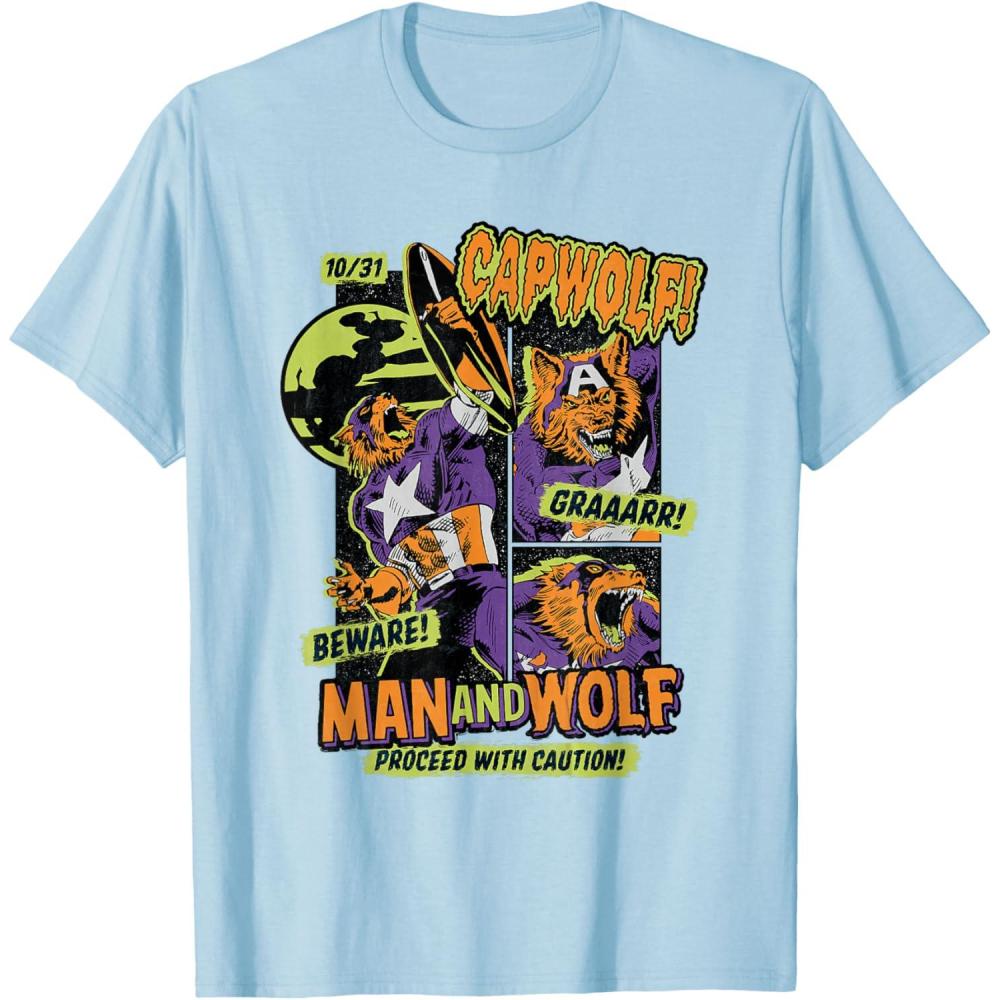 Marvel Captain America Halloween Werewolf Beware Capwolf! T-Shirt(Baby Blue)