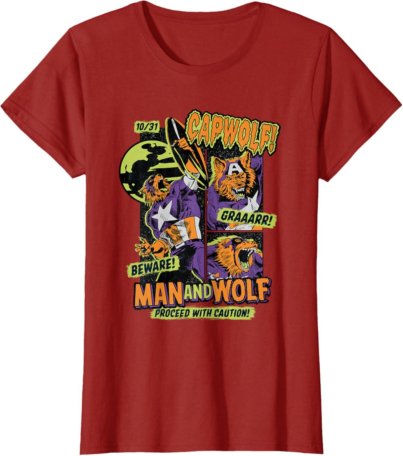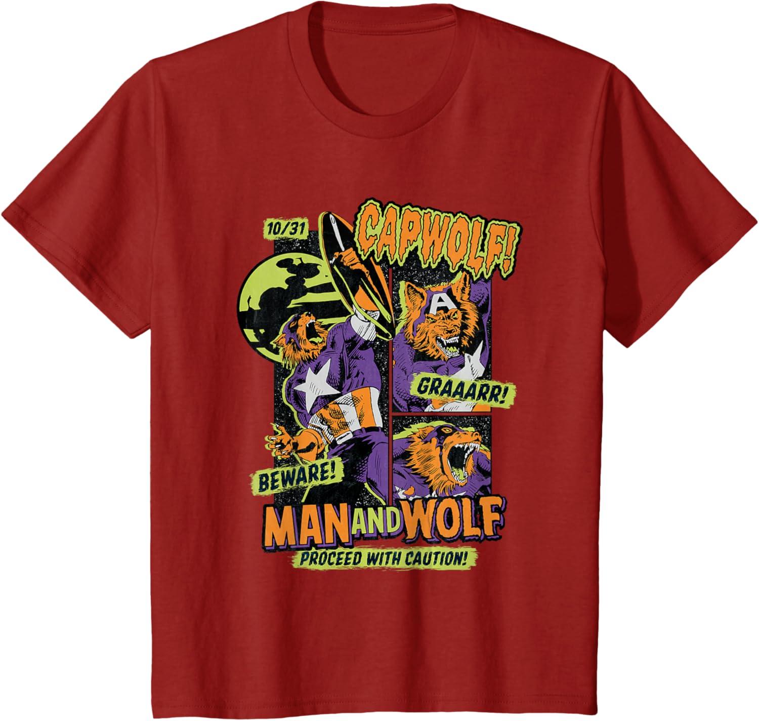 Marvel Captain America Halloween Werewolf Beware Capwolf! T-Shirt(Cranberry Red)