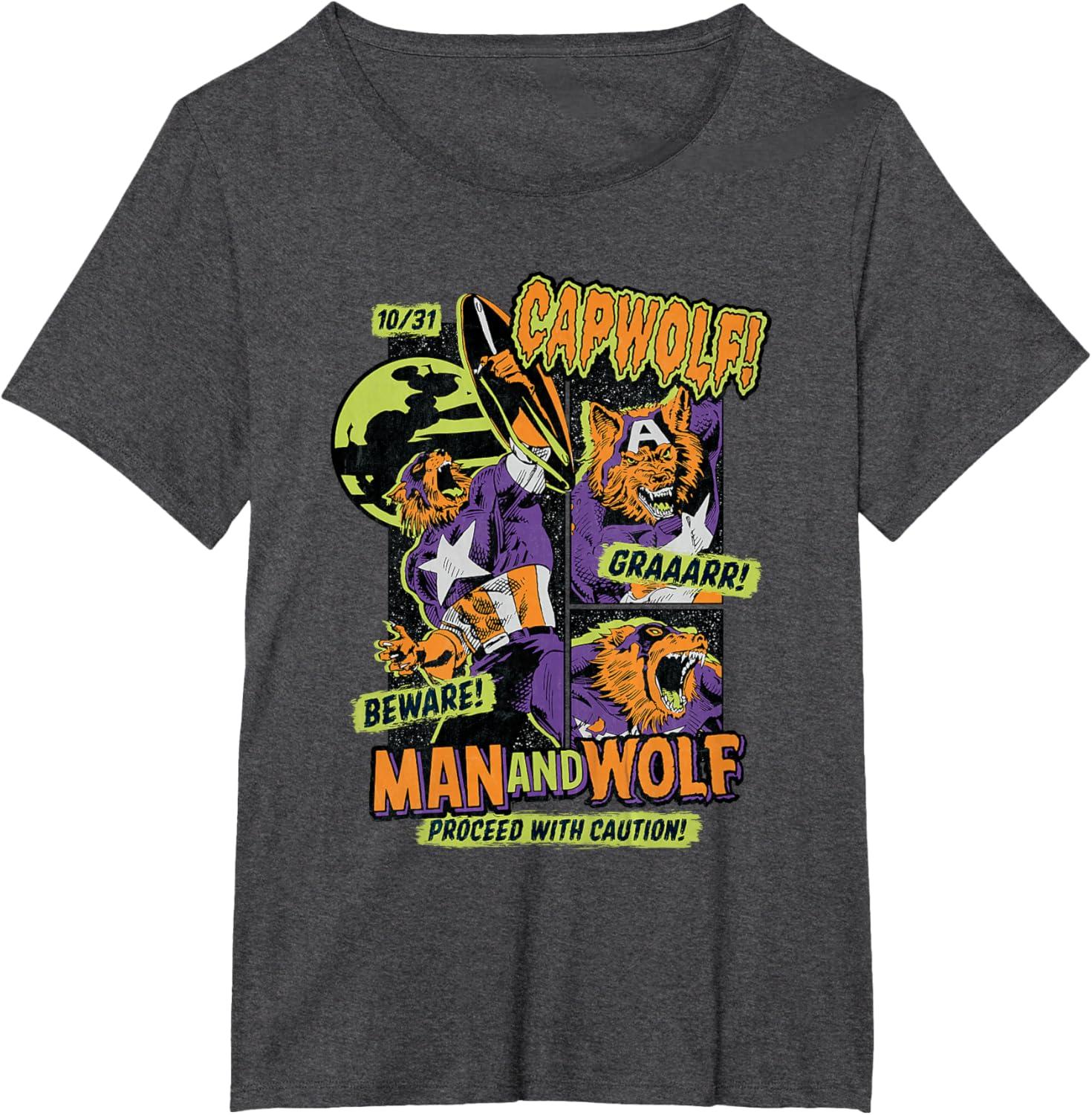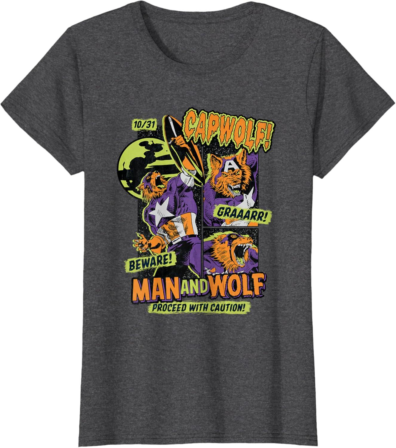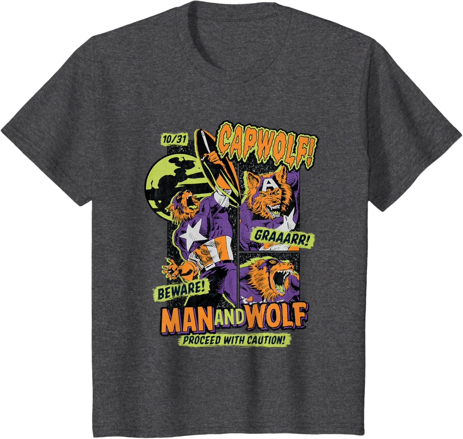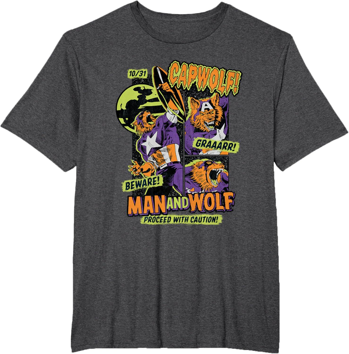 Marvel Captain America Halloween Werewolf Beware Capwolf! T-Shirt(Heather Grey)