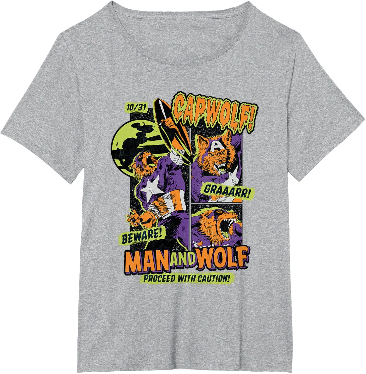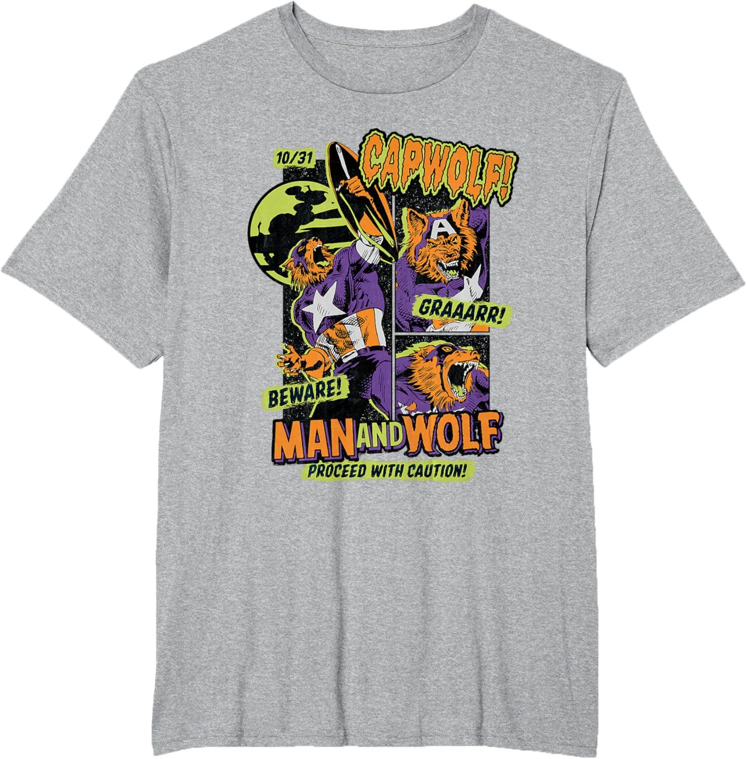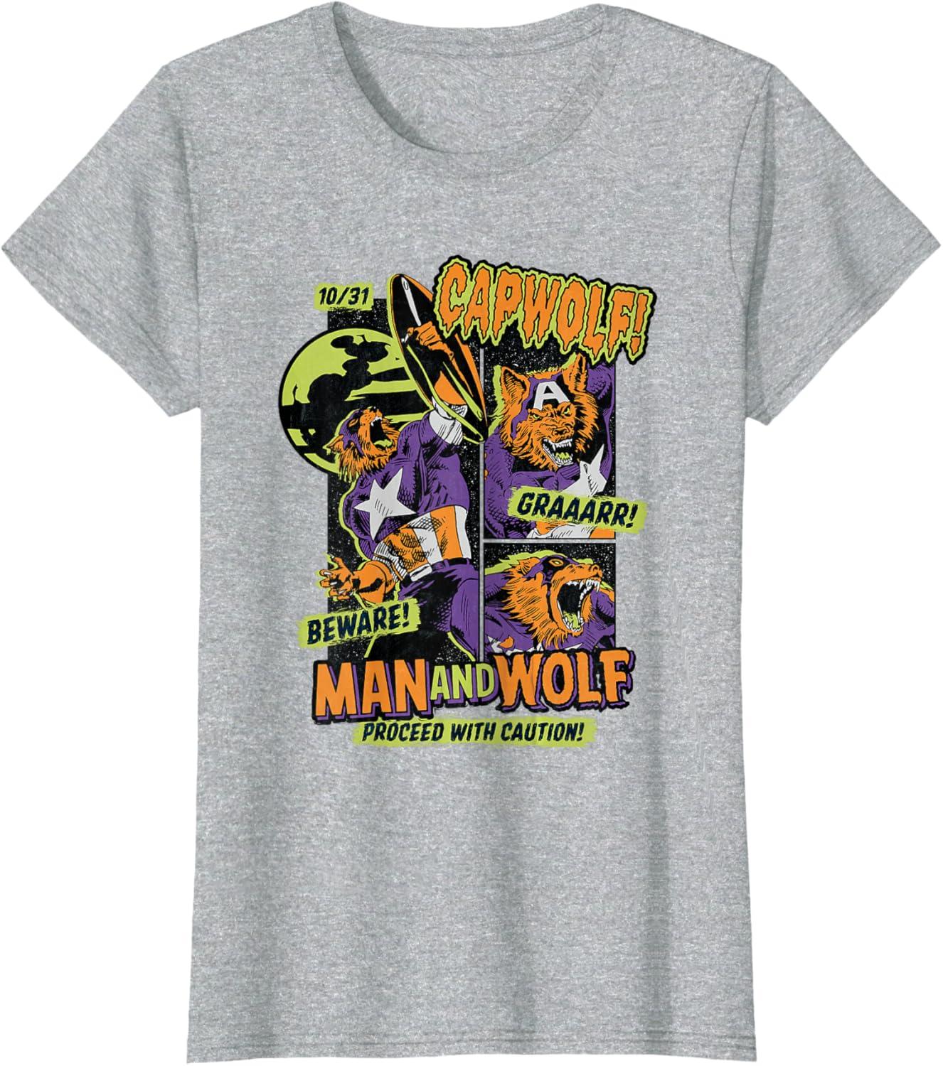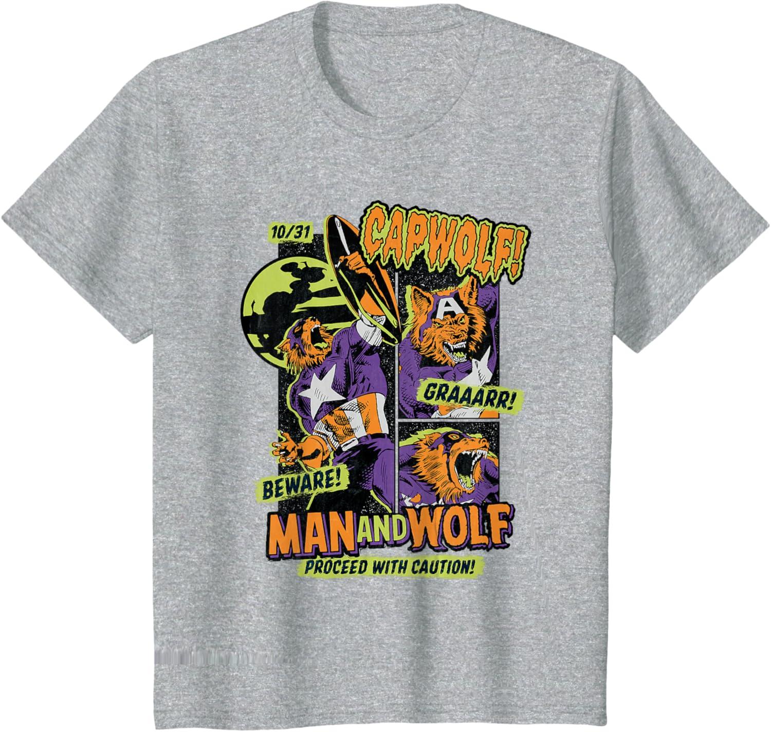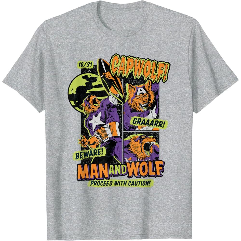 Marvel Captain America Halloween Werewolf Beware Capwolf! T-Shirt(Heather Grey)
