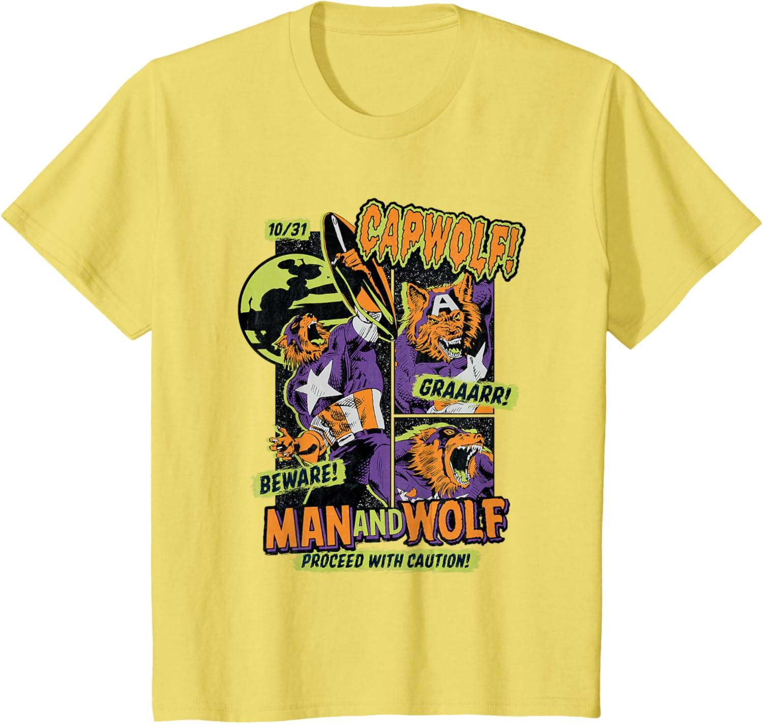 Be the first to review “Marvel Captain America Halloween Werewolf Beware Capwolf! T-Shirt(Lemon Yellow)”