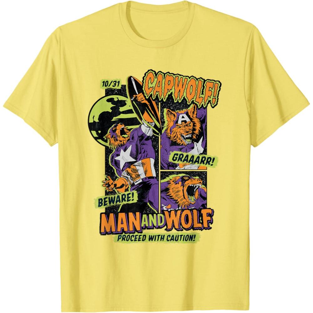 Marvel Captain America Halloween Werewolf Beware Capwolf! T-Shirt(Lemon Yellow)