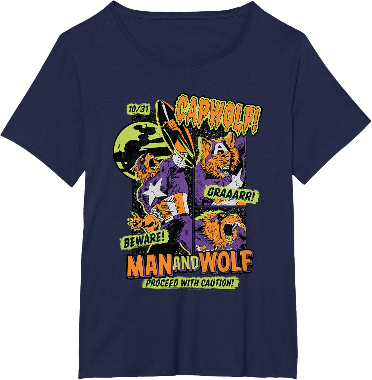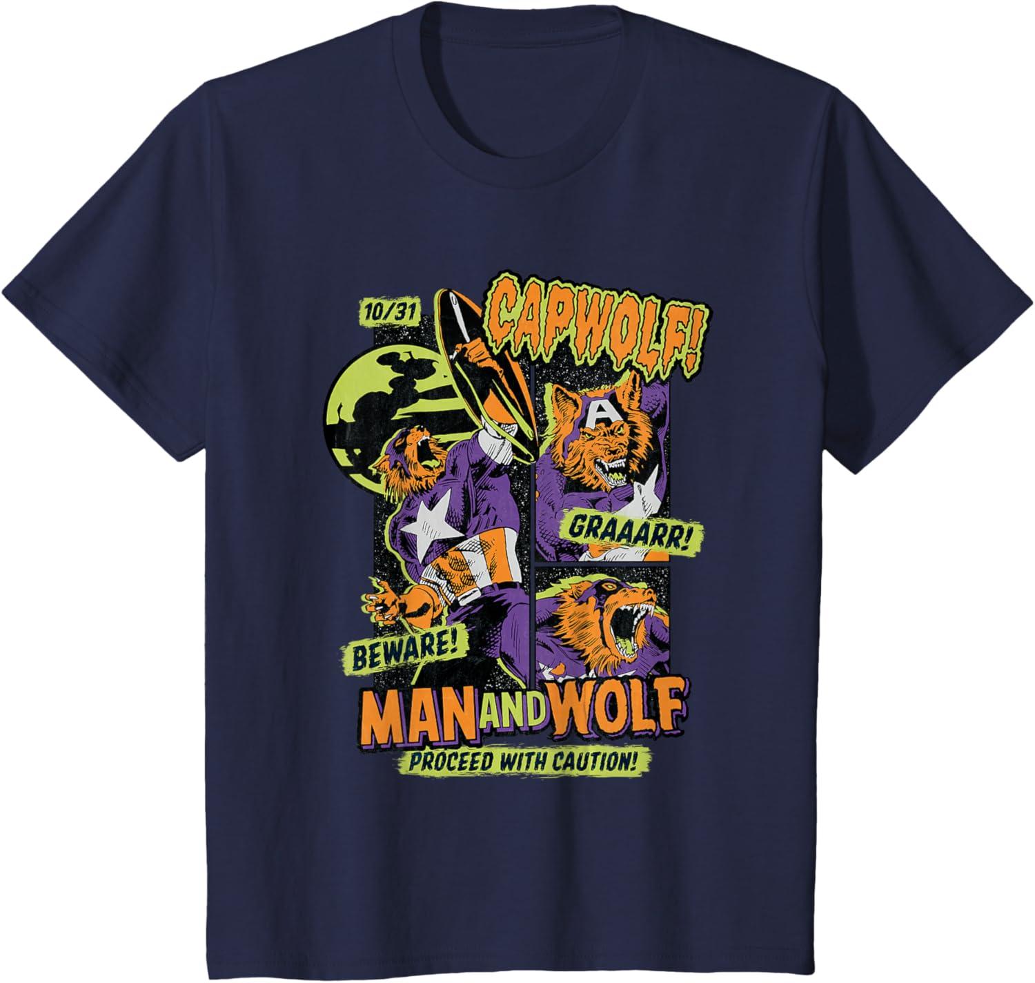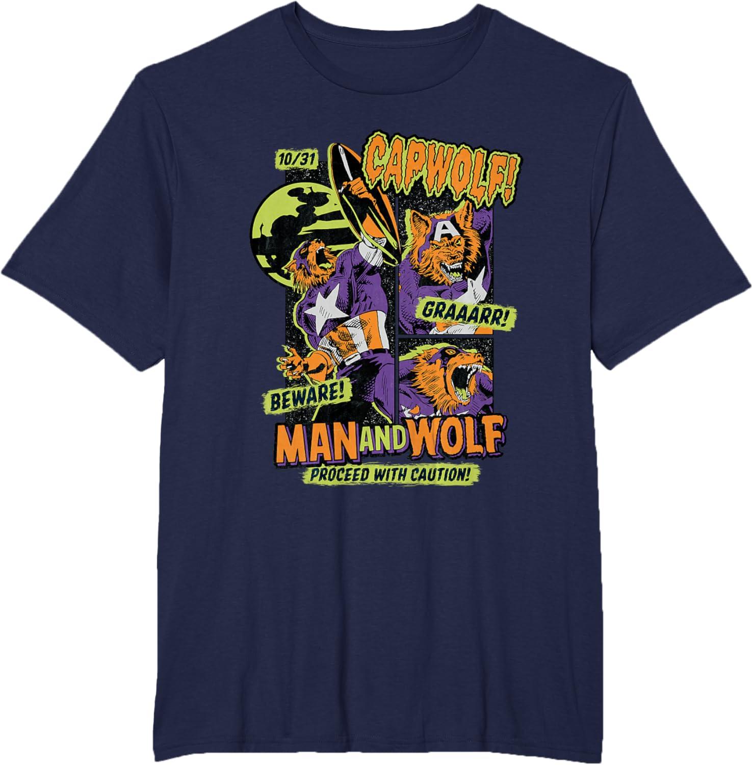 Marvel Captain America Halloween Werewolf Beware Capwolf! T-Shirt(Navy Blue)