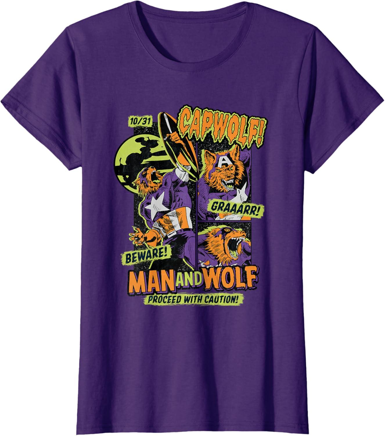 Marvel Captain America Halloween Werewolf Beware Capwolf! T-Shirt(Purple)