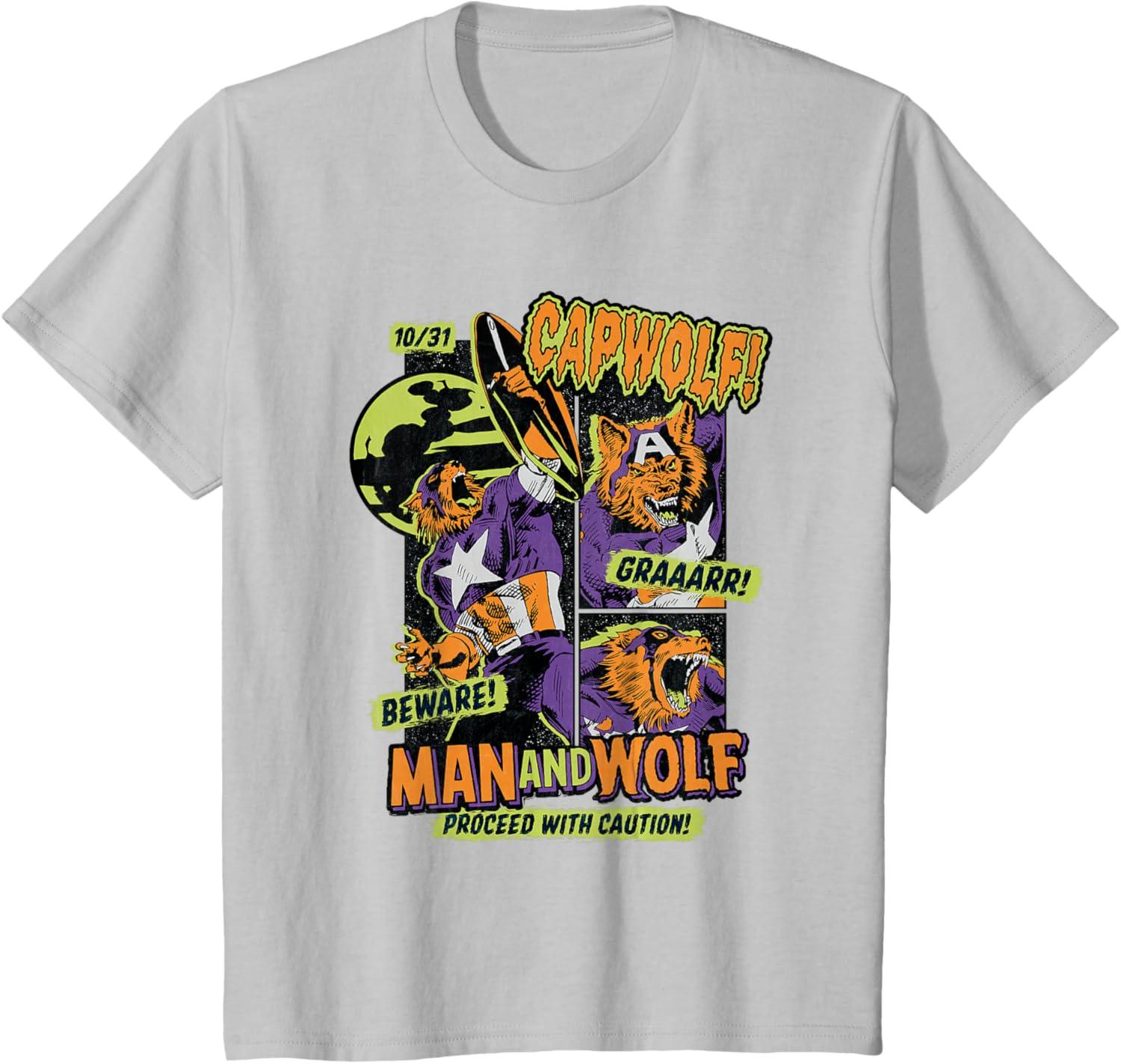 Marvel Captain America Halloween Werewolf Beware Capwolf! T-Shirt(Silver Grey)