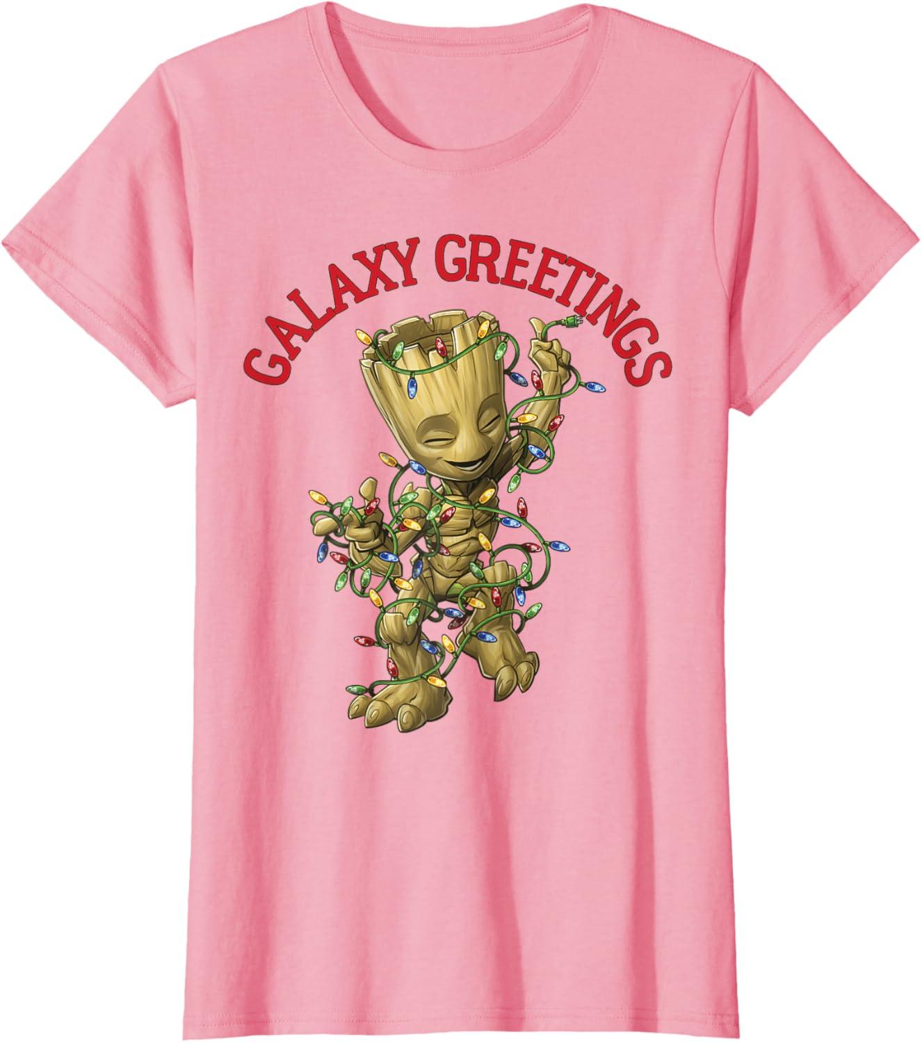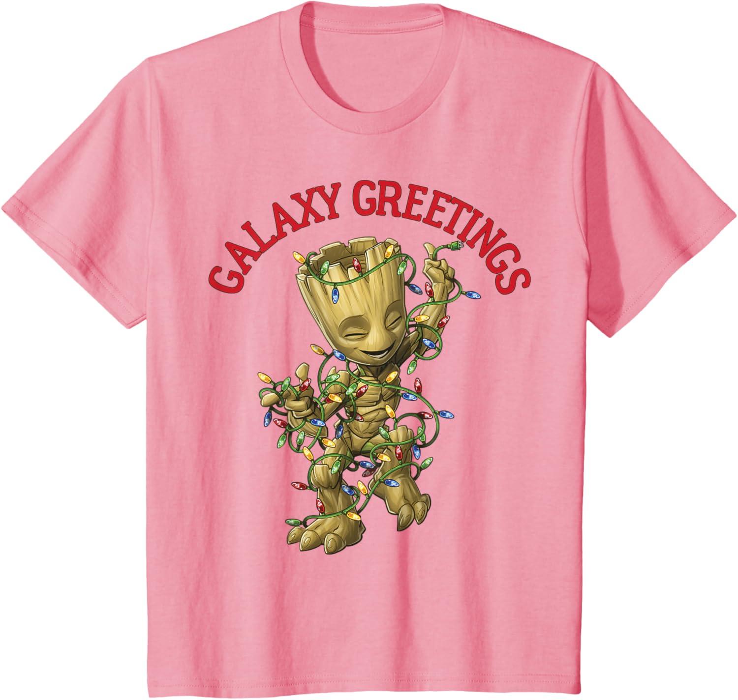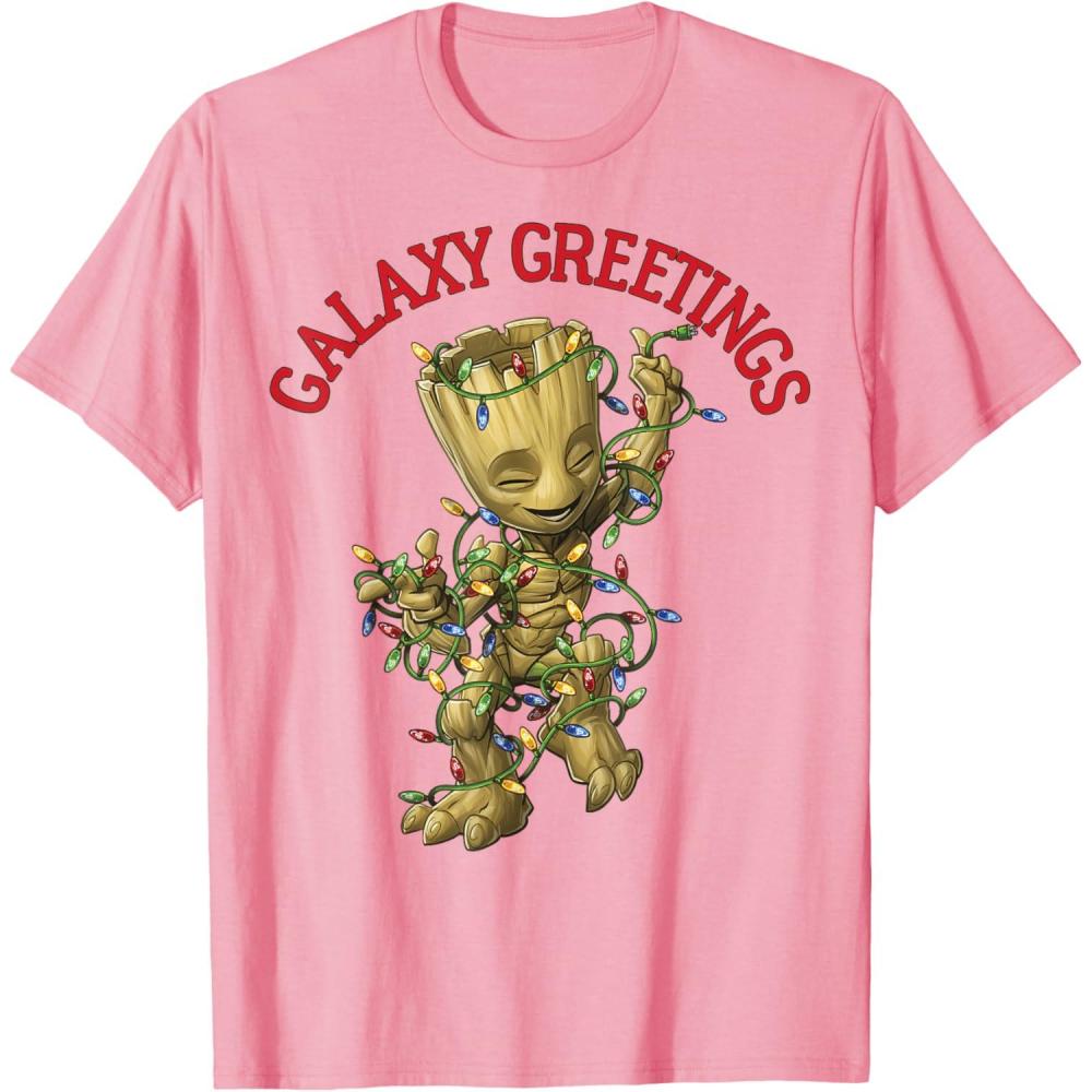 Our holiday sale features the best deals on Marvel Christmas Groot Galaxy Greetings Short Sleeve T-Shirt(Pink) and accessories. Shop now and save!