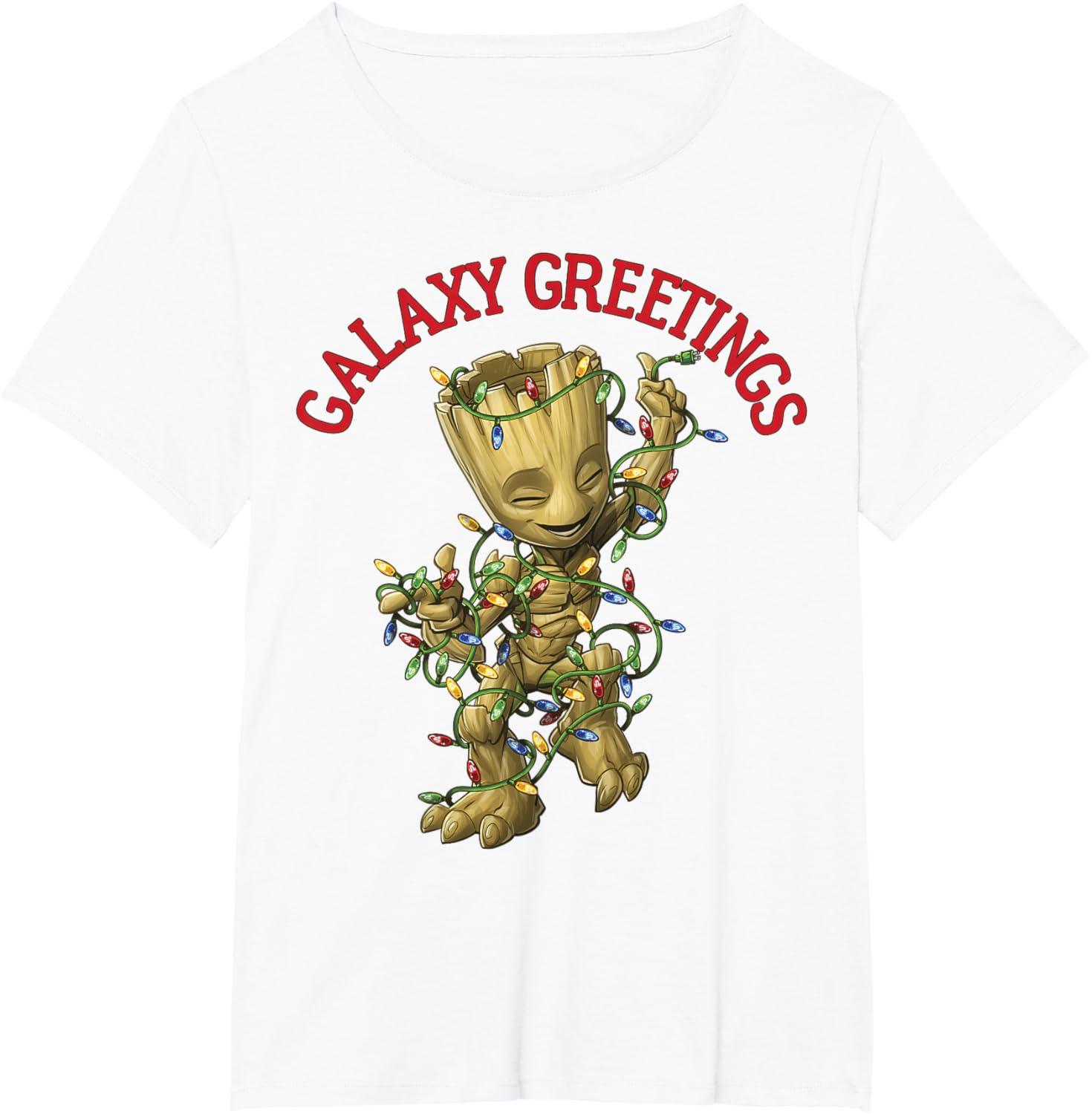 Marvel Christmas Groot Galaxy Greetings Short Sleeve T-Shirt(White)