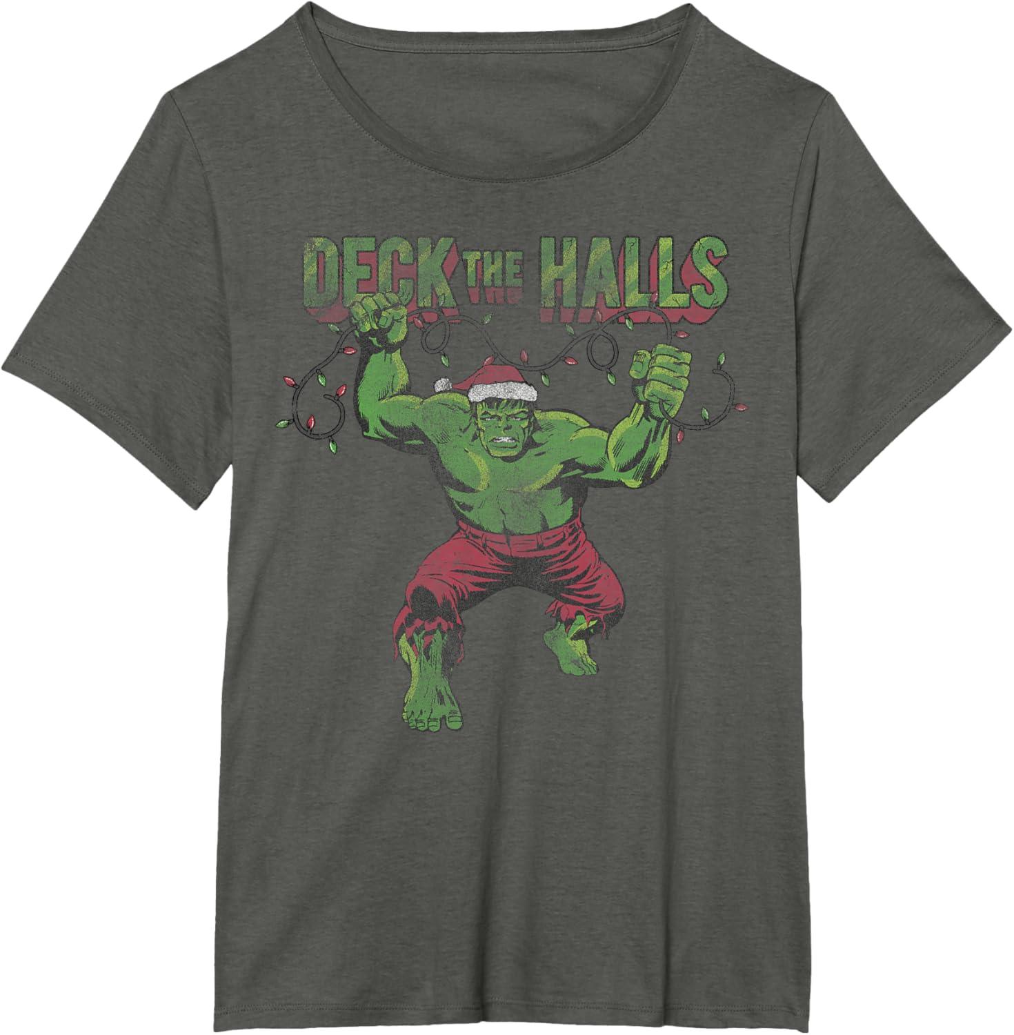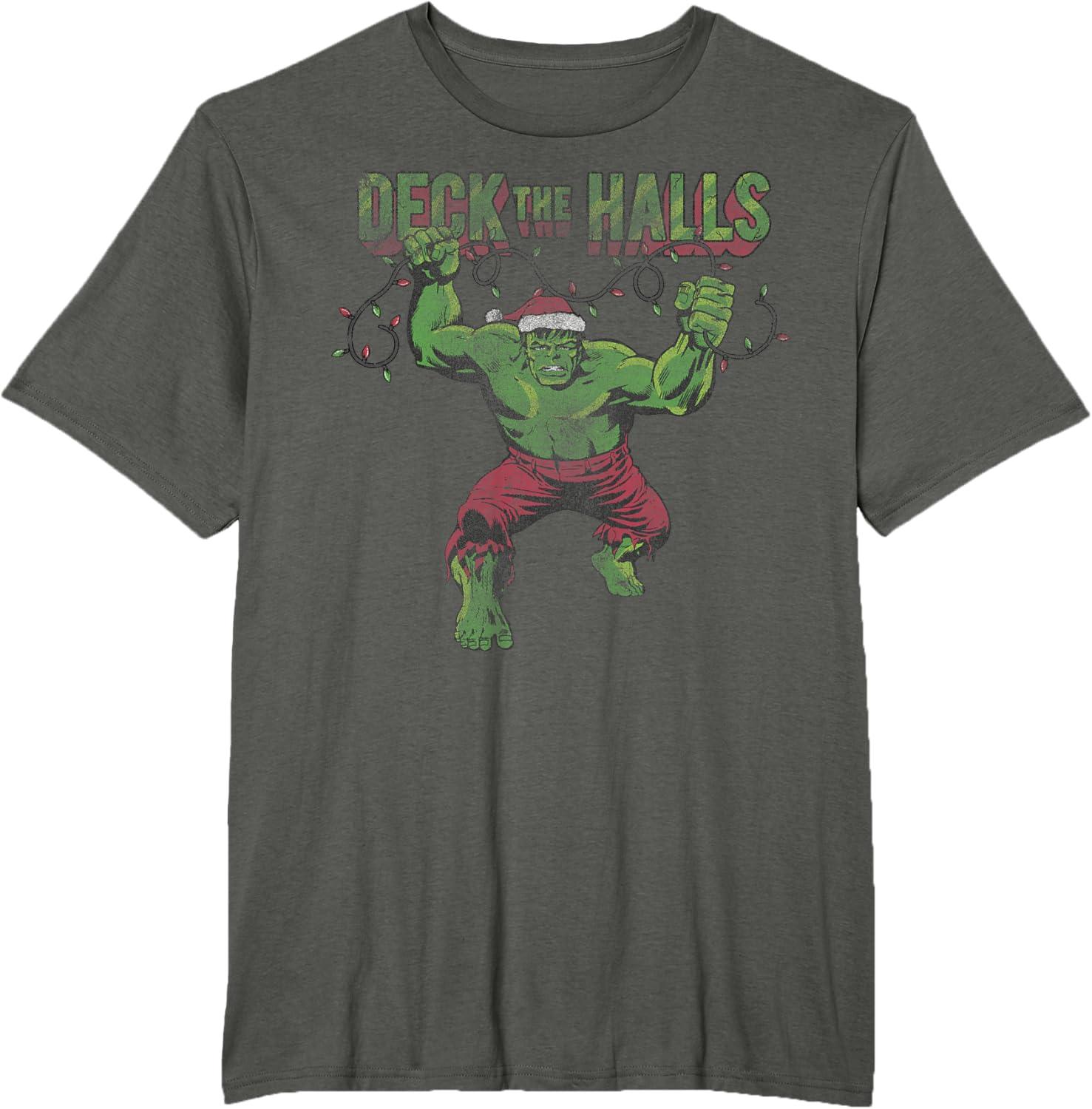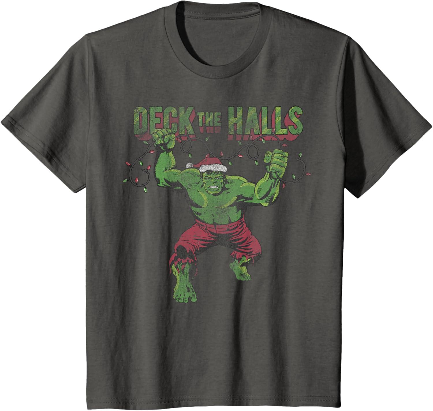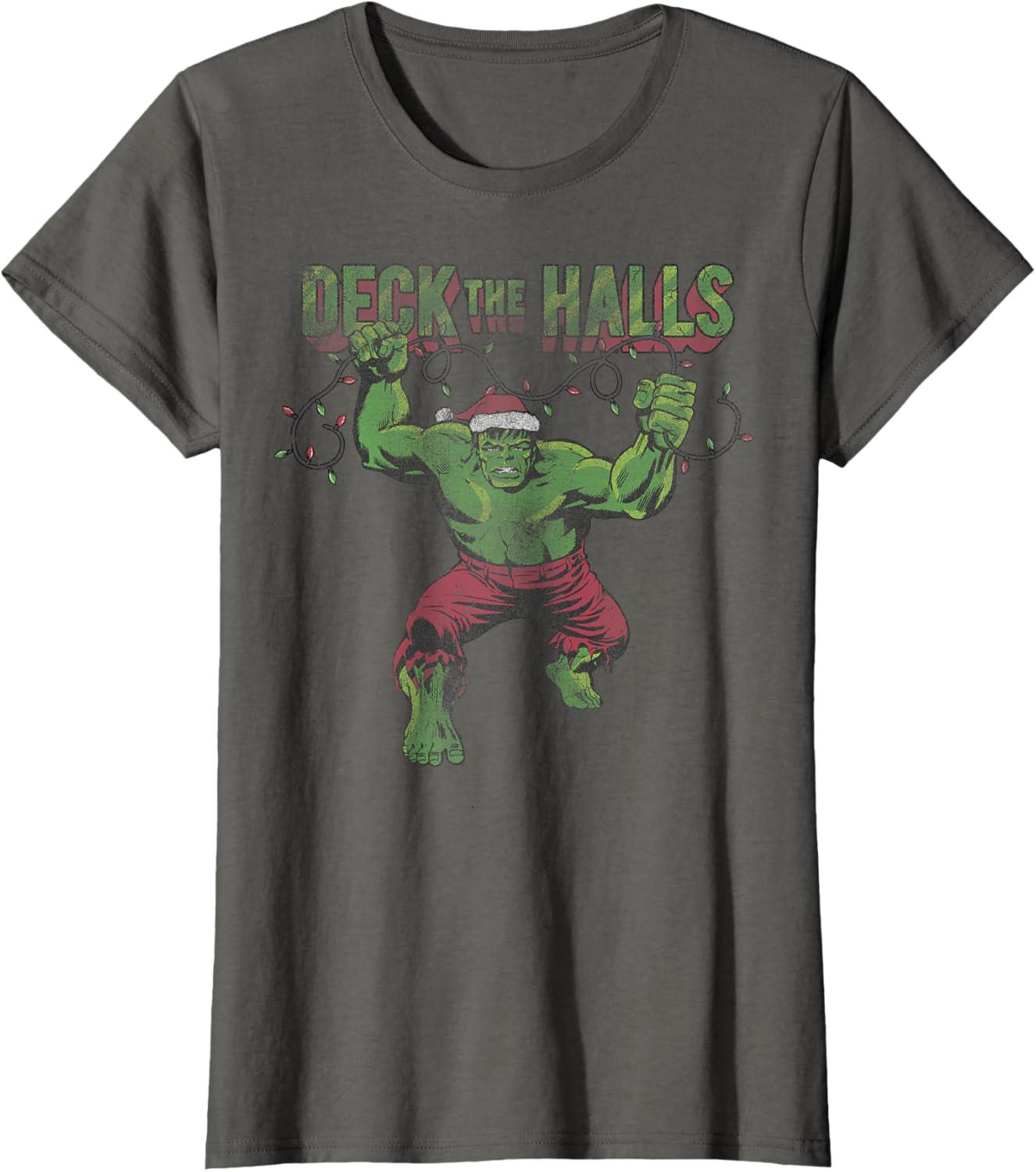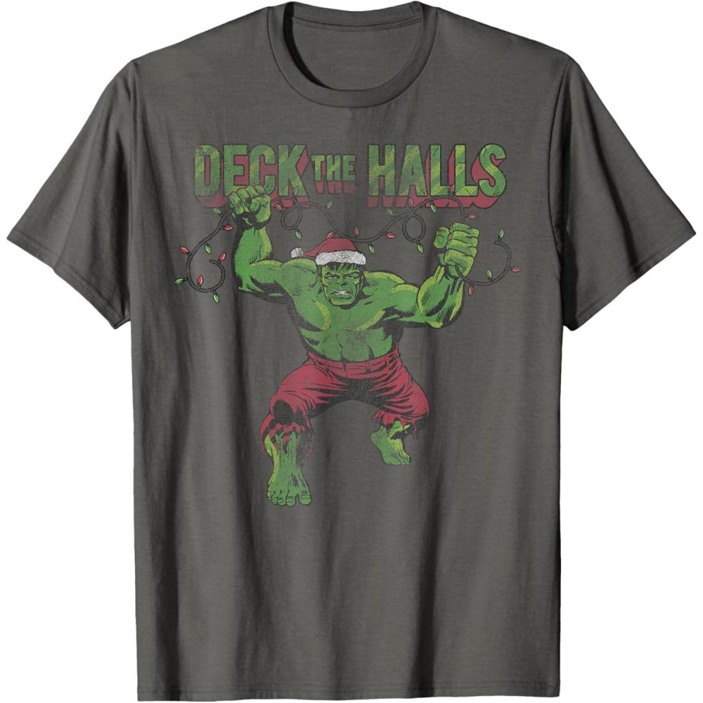 Marvel Christmas Hulk Deck The Halls Portrait T-Shirt(Asphalt Grey)