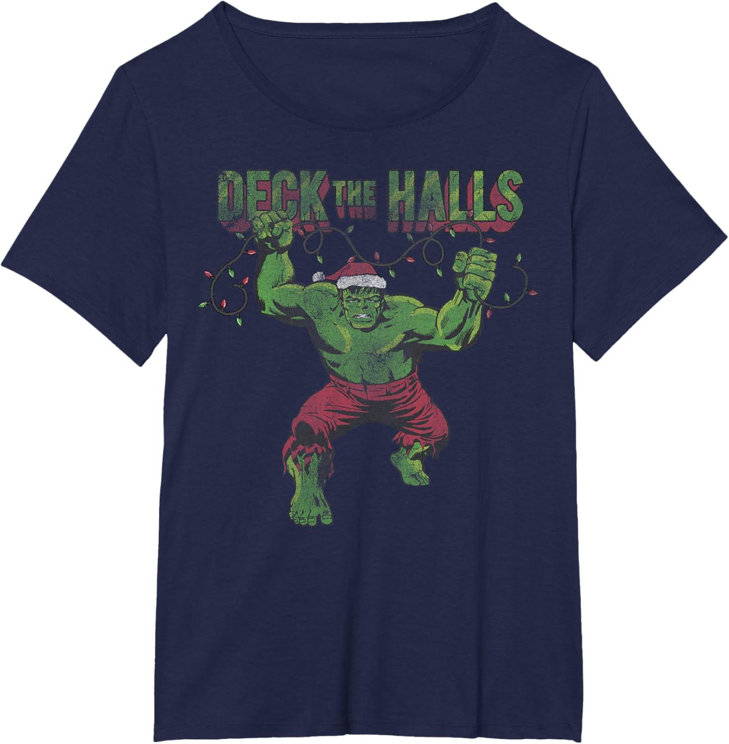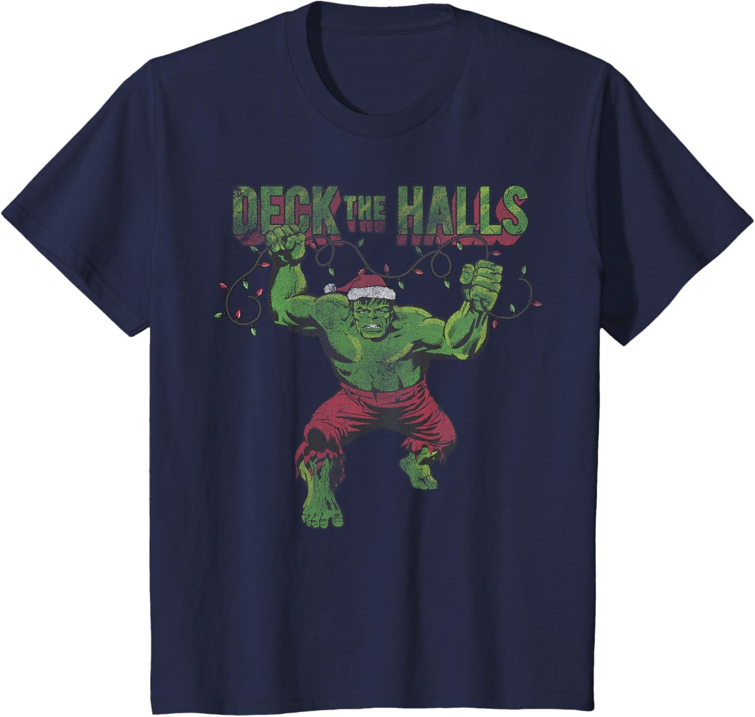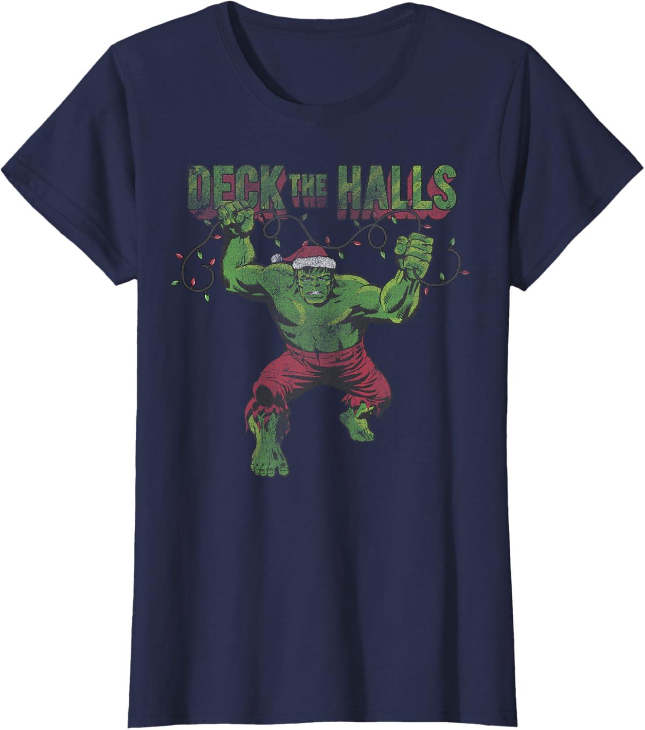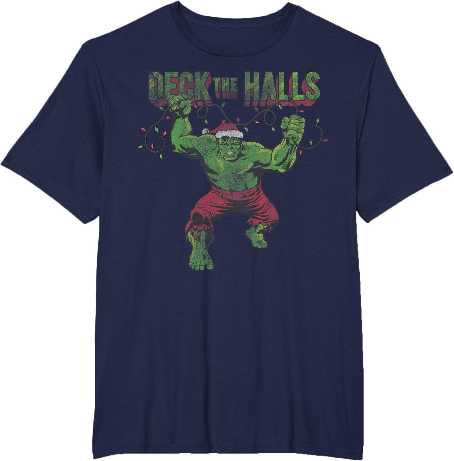 Marvel Christmas Hulk Deck The Halls Portrait T-Shirt(Navy Blue)