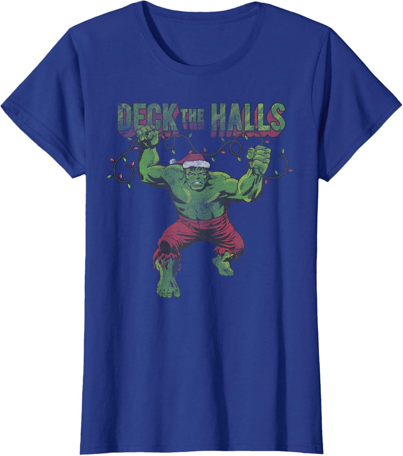 imageMarvel Christmas Hulk Deck The Halls Portrait TShirtRoyal Blue