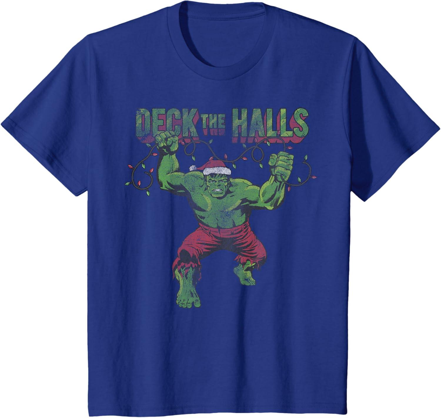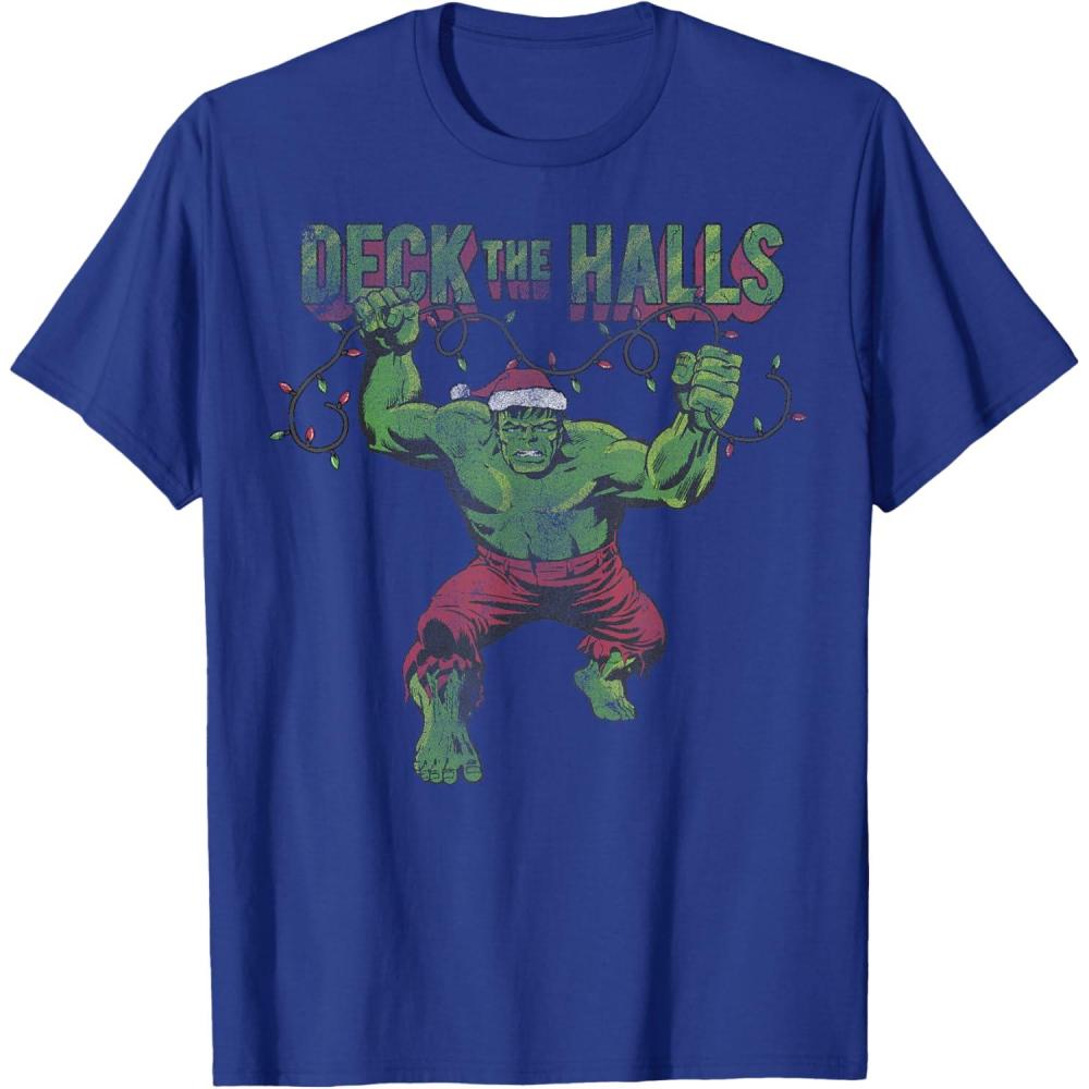 Marvel Christmas Hulk Deck The Halls Portrait T-Shirt(Royal Blue)