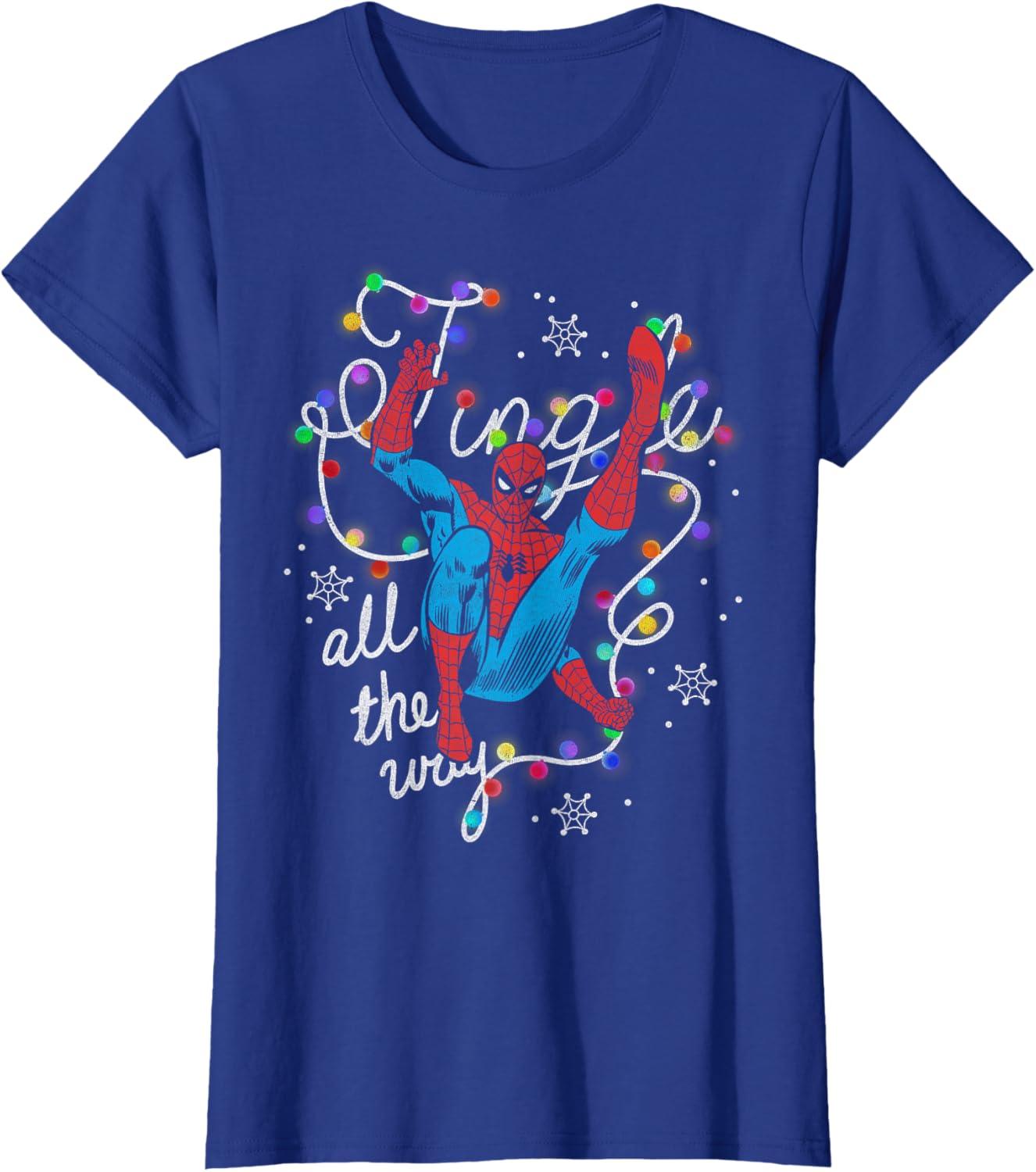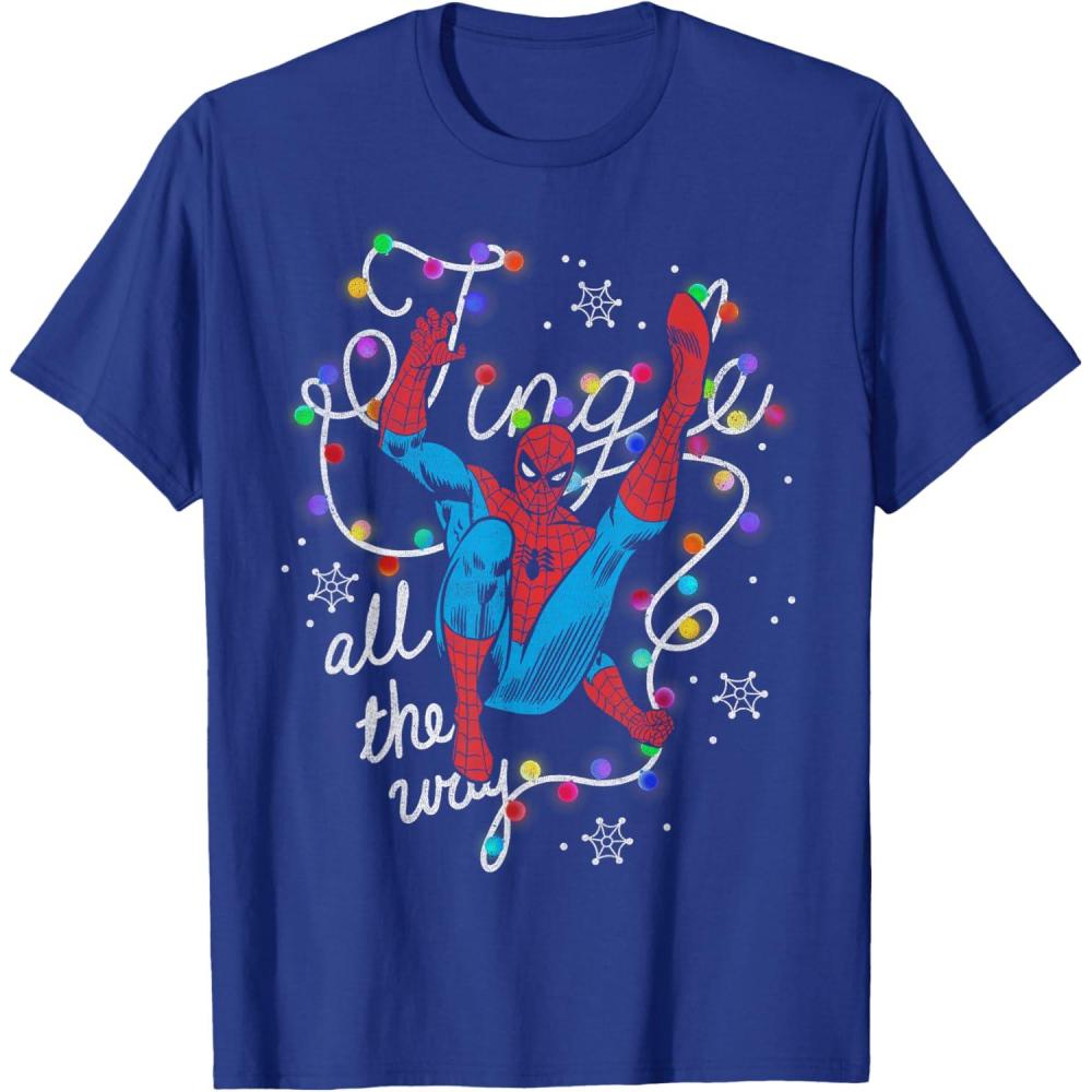 Marvel Christmas Spider-Man Jingle All The Way Action Pose T-Shirt(Royal Blue)