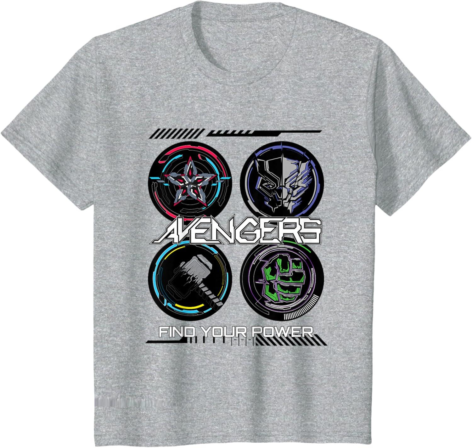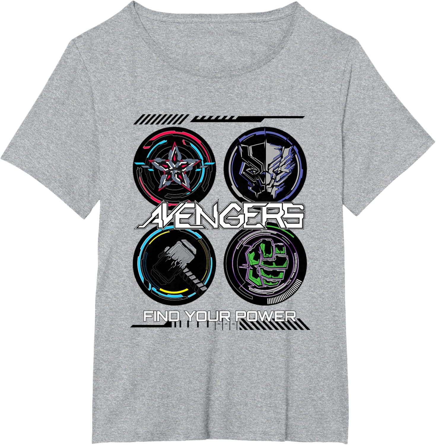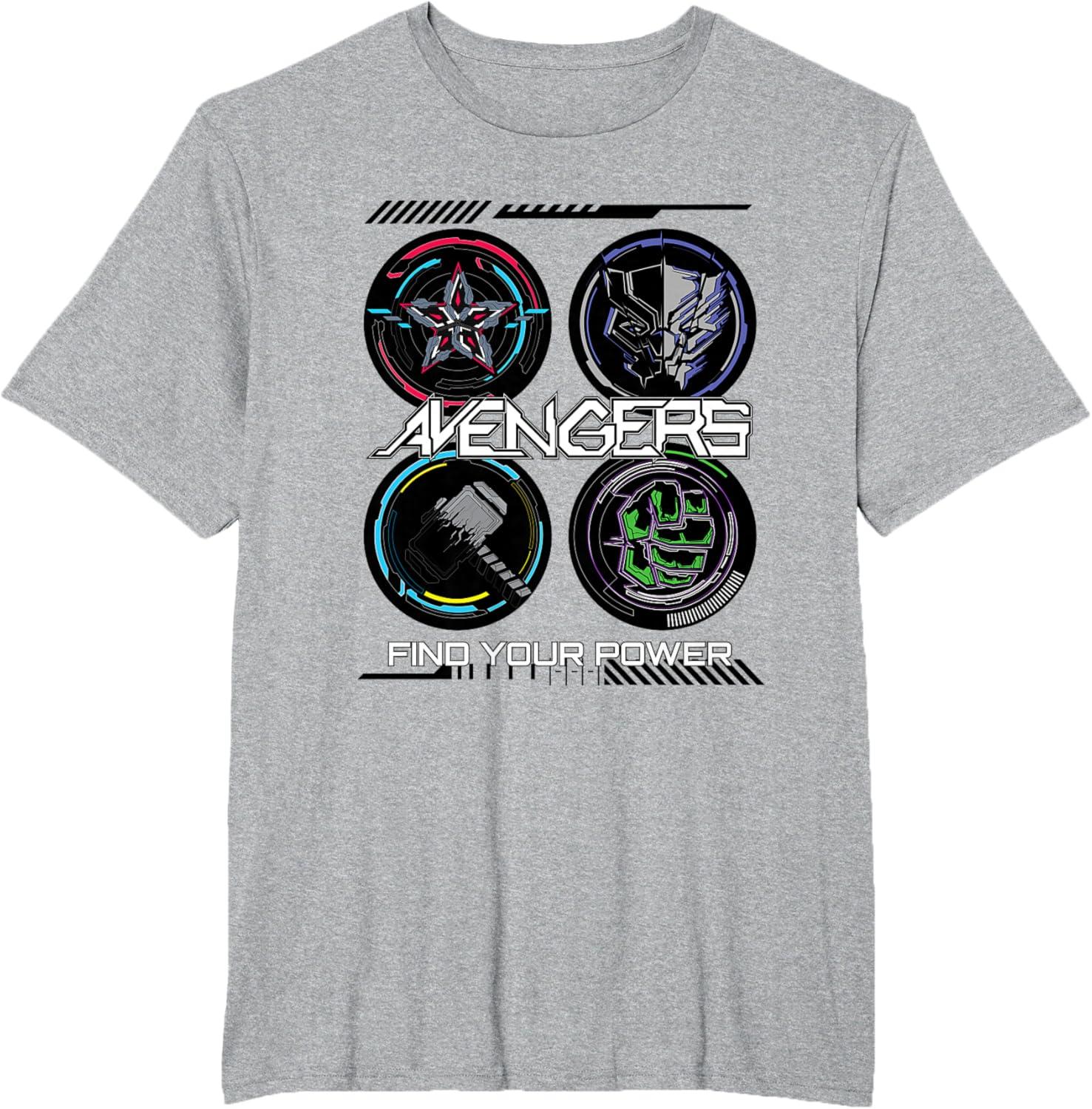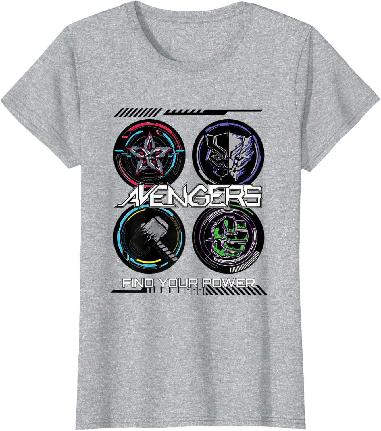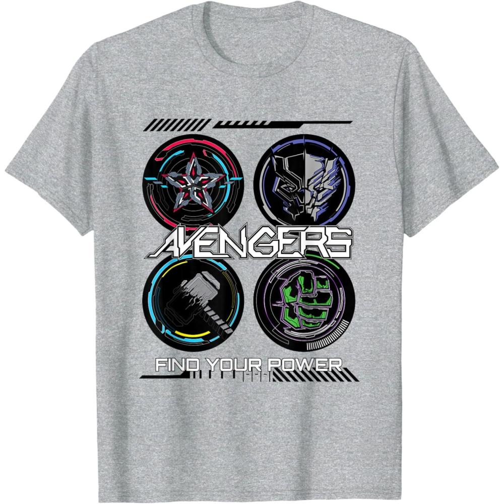 Marvel Comics Avengers Find Your Power Icons T-Shirt(Heather Grey)