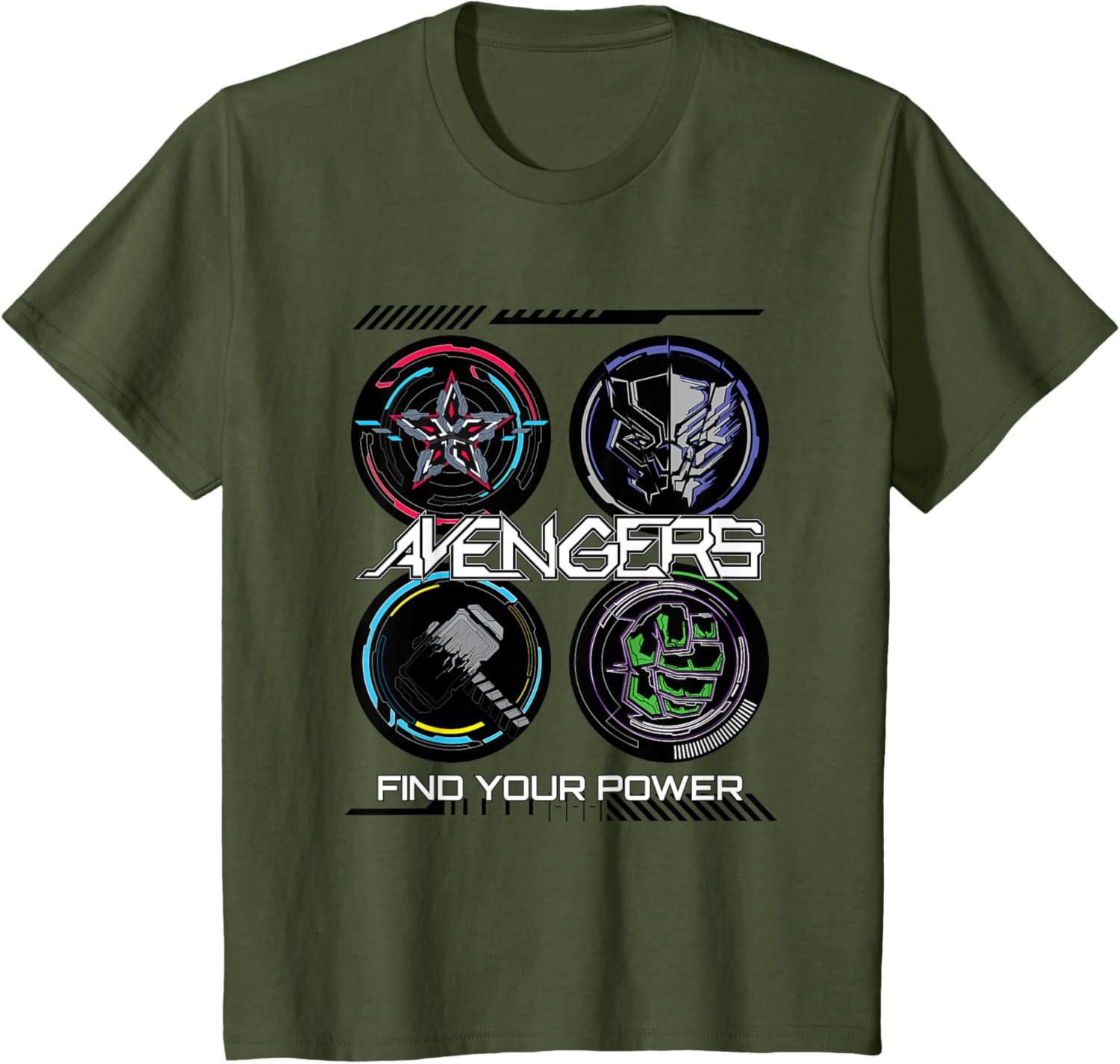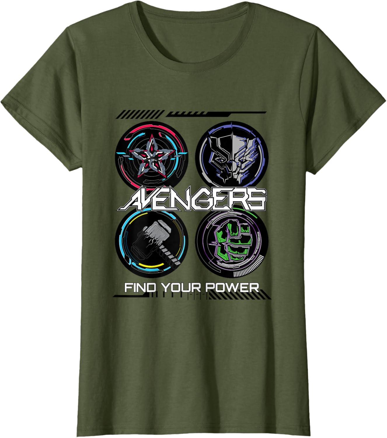 Be the first to review “Marvel Comics Avengers Find Your Power Icons T-Shirt(Olive Green)”