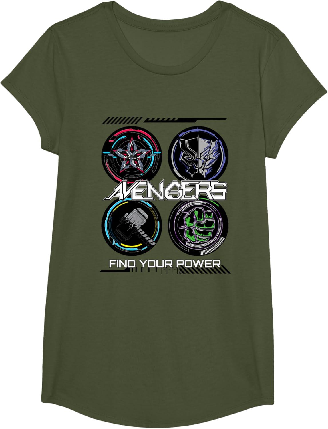 Marvel Comics Avengers Find Your Power Icons T-Shirt(Olive Green)