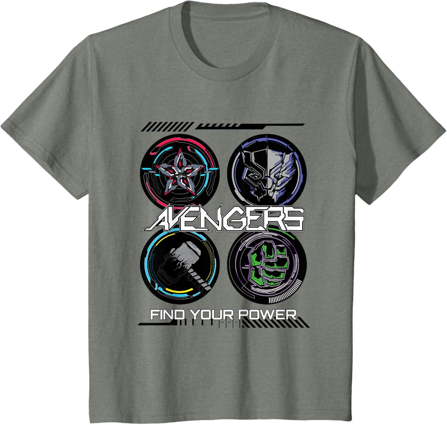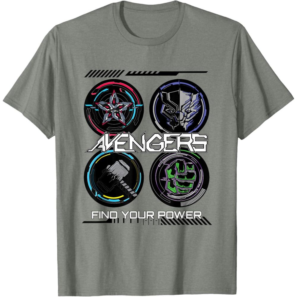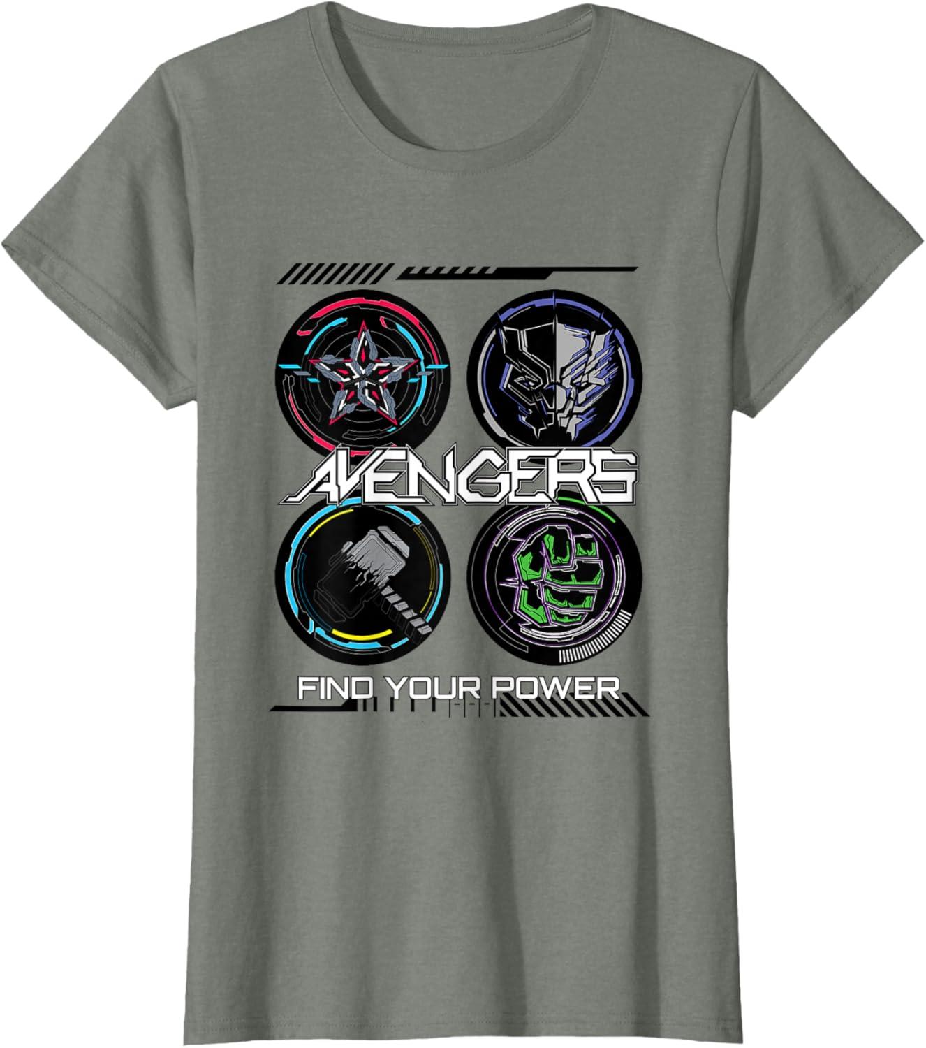 Marvel Comics Avengers Find Your Power Icons T-Shirt(Olive Heather)