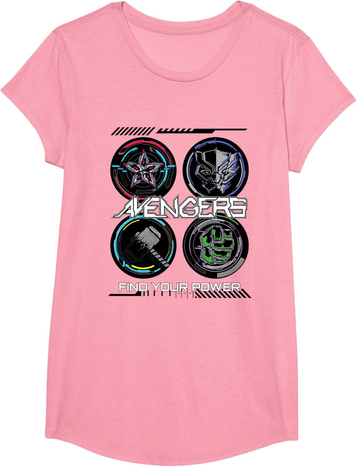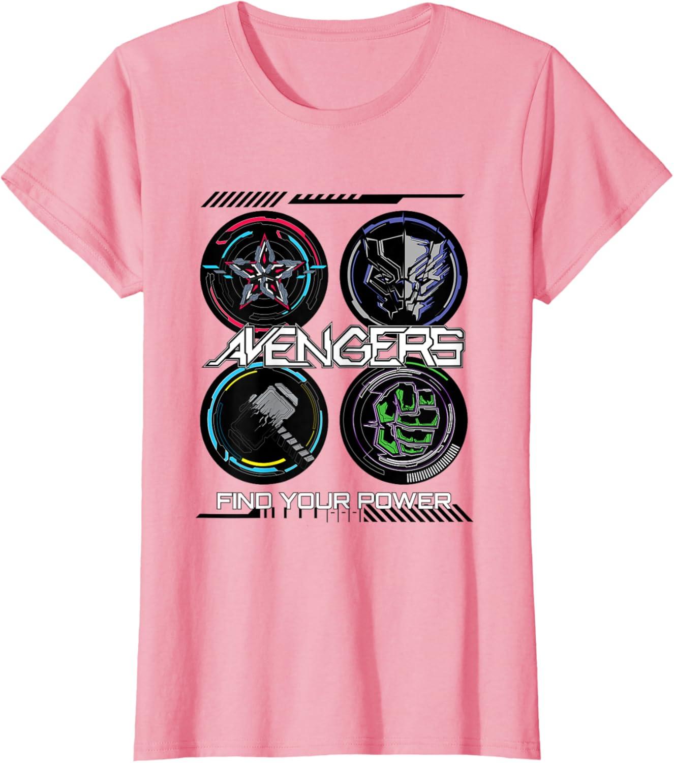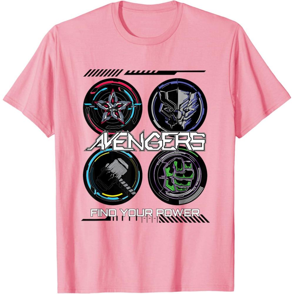 Marvel Comics Avengers Find Your Power Icons T-Shirt(Pink)