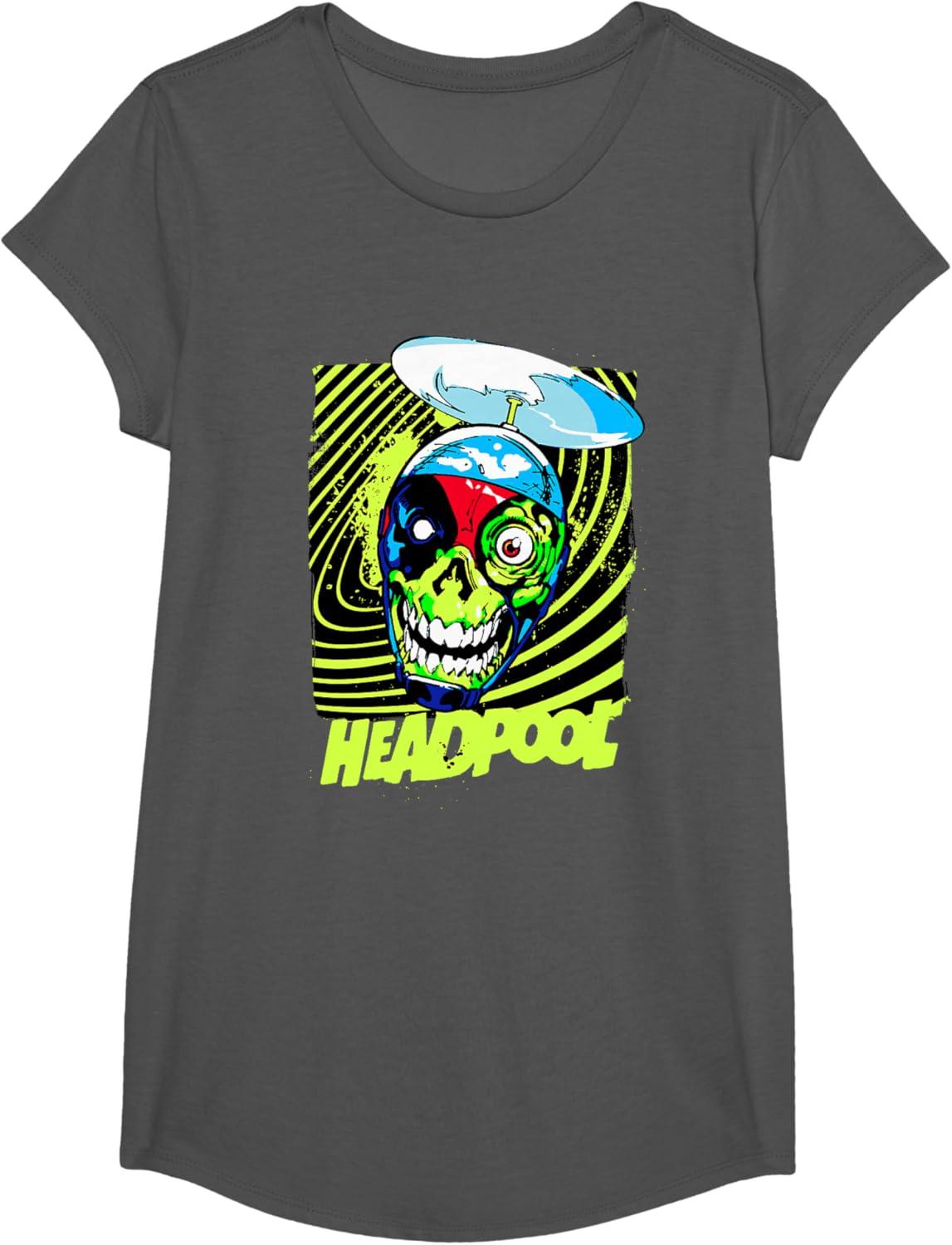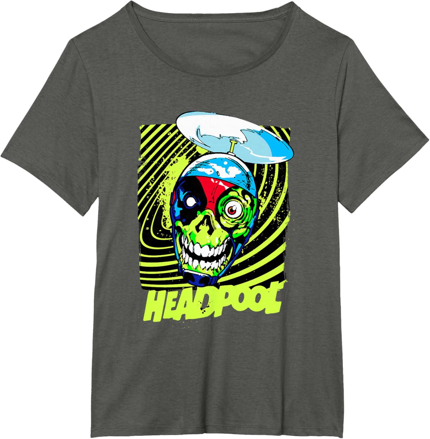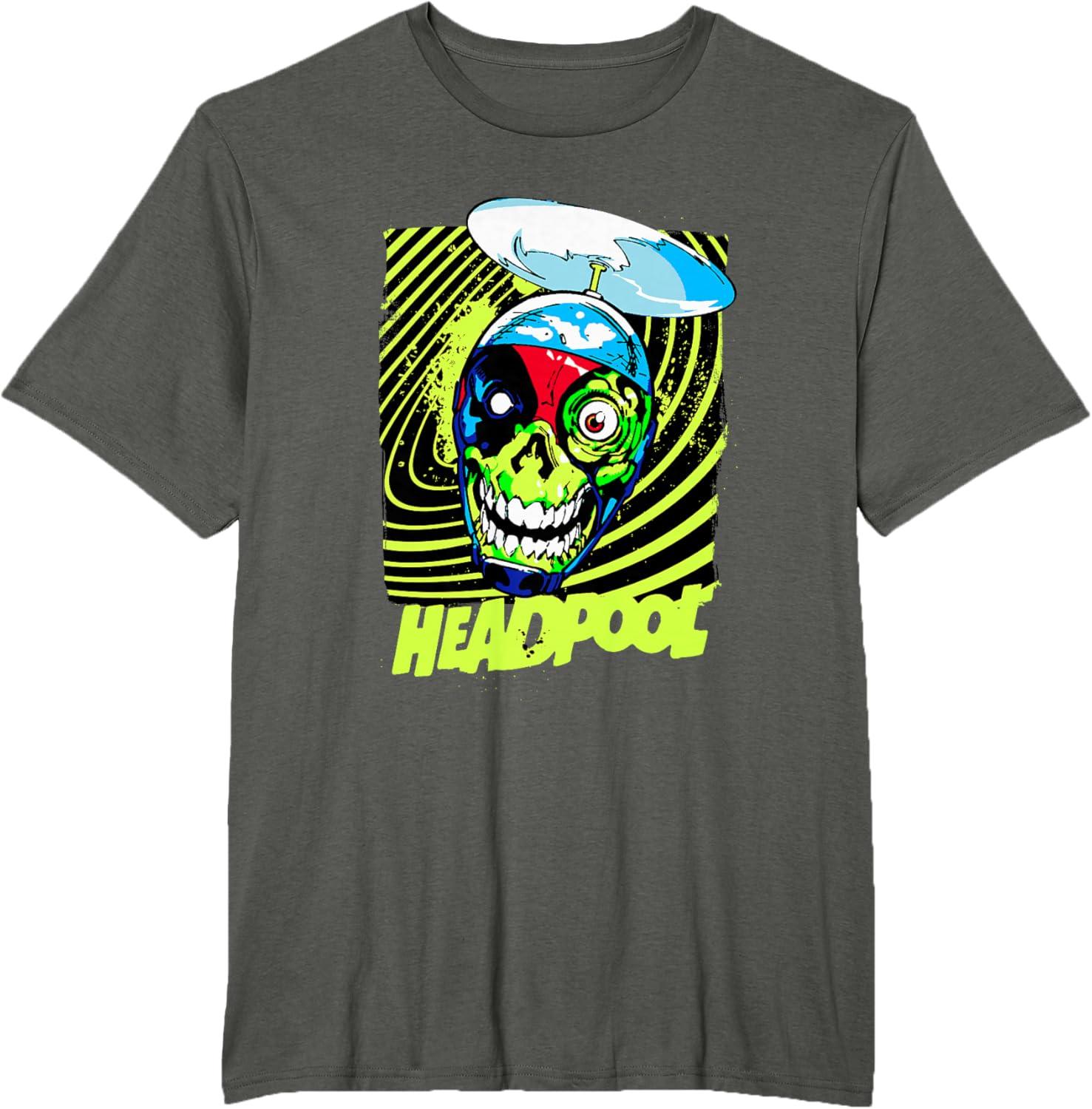 Marvel Comics Deadpool Neon Swirl Zombie Skull T-Shirt(Asphalt Grey)