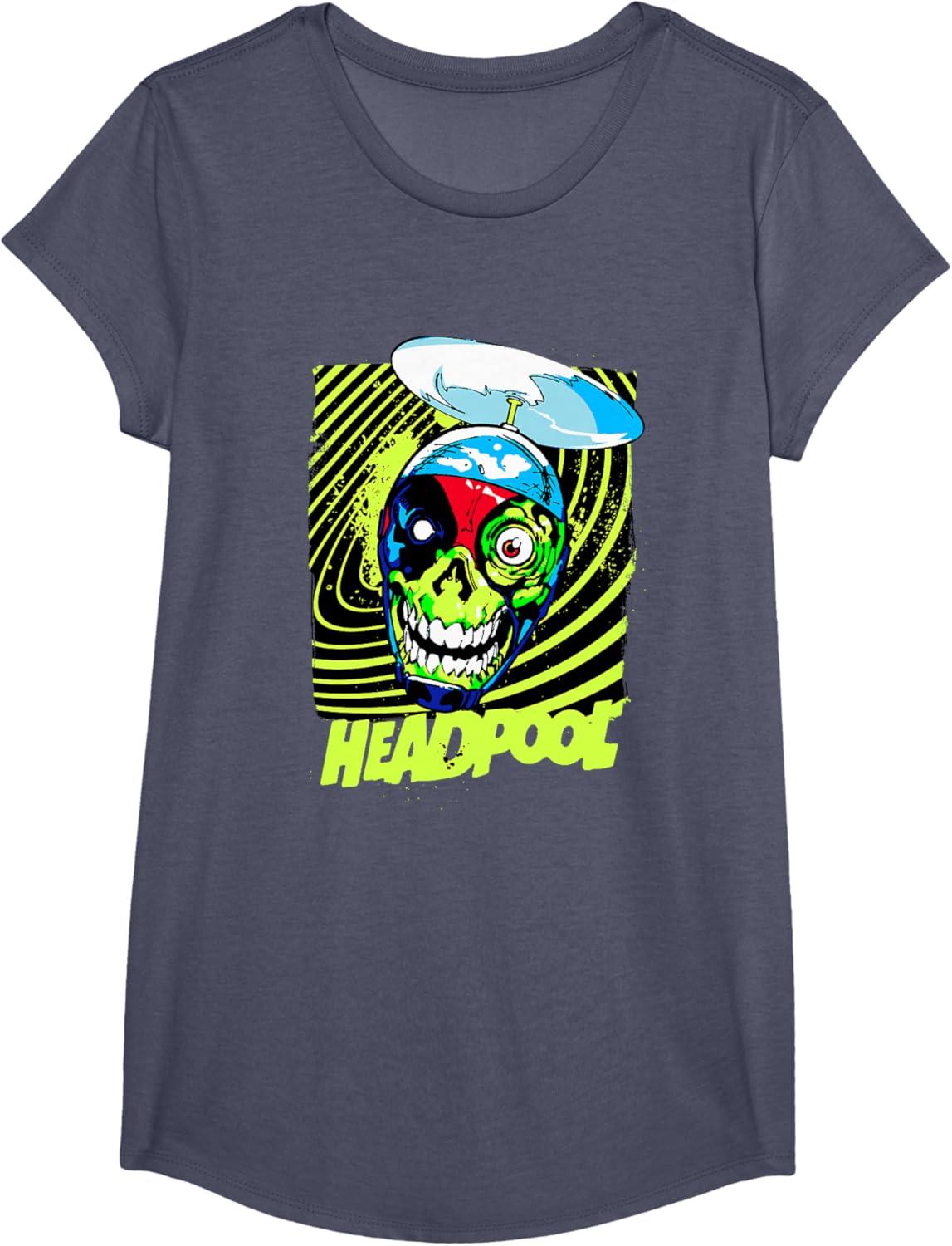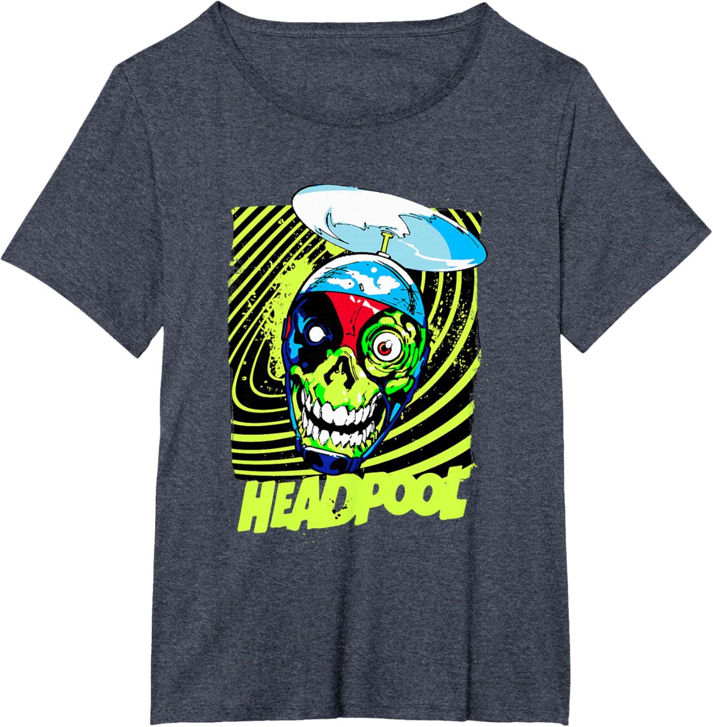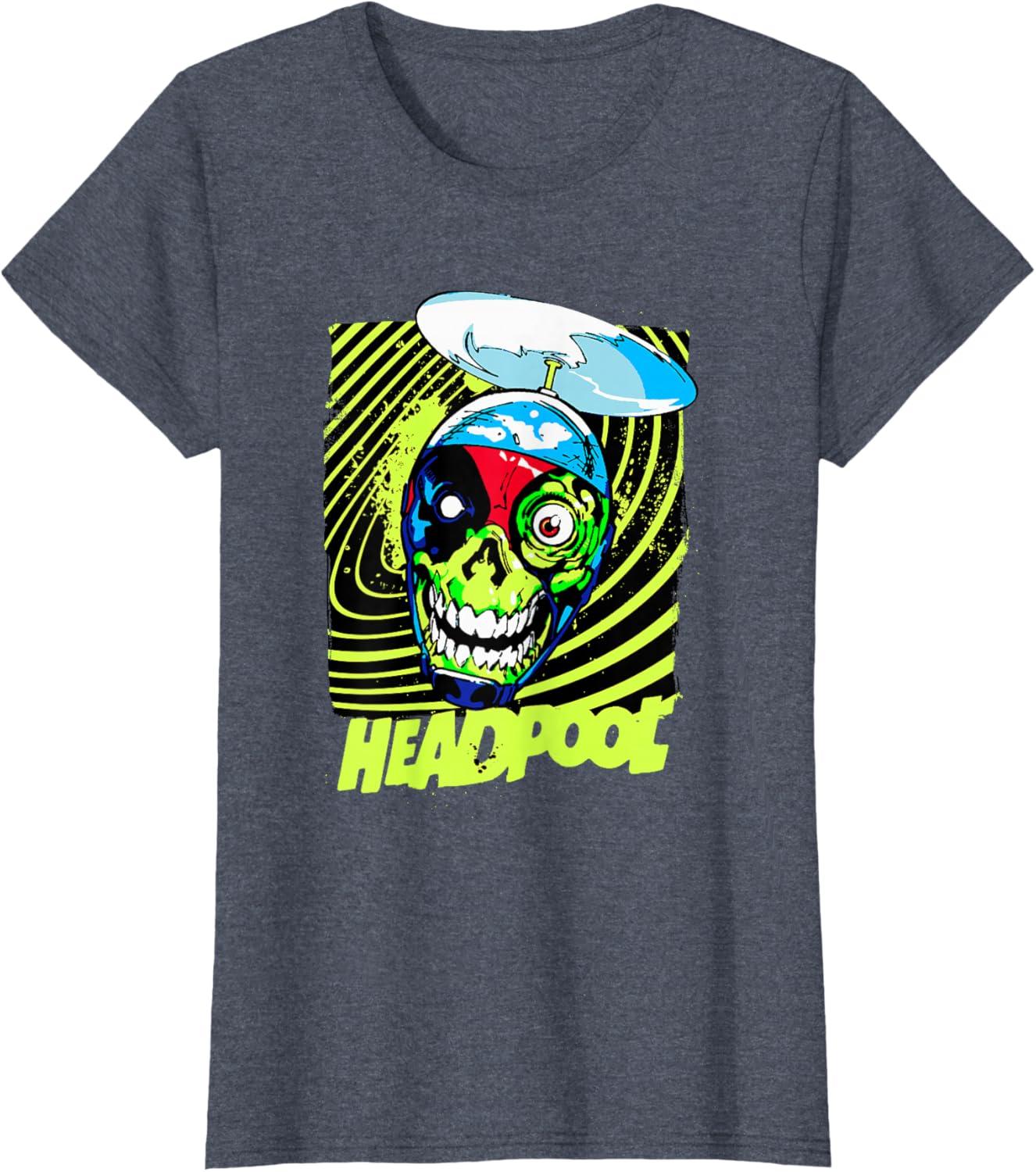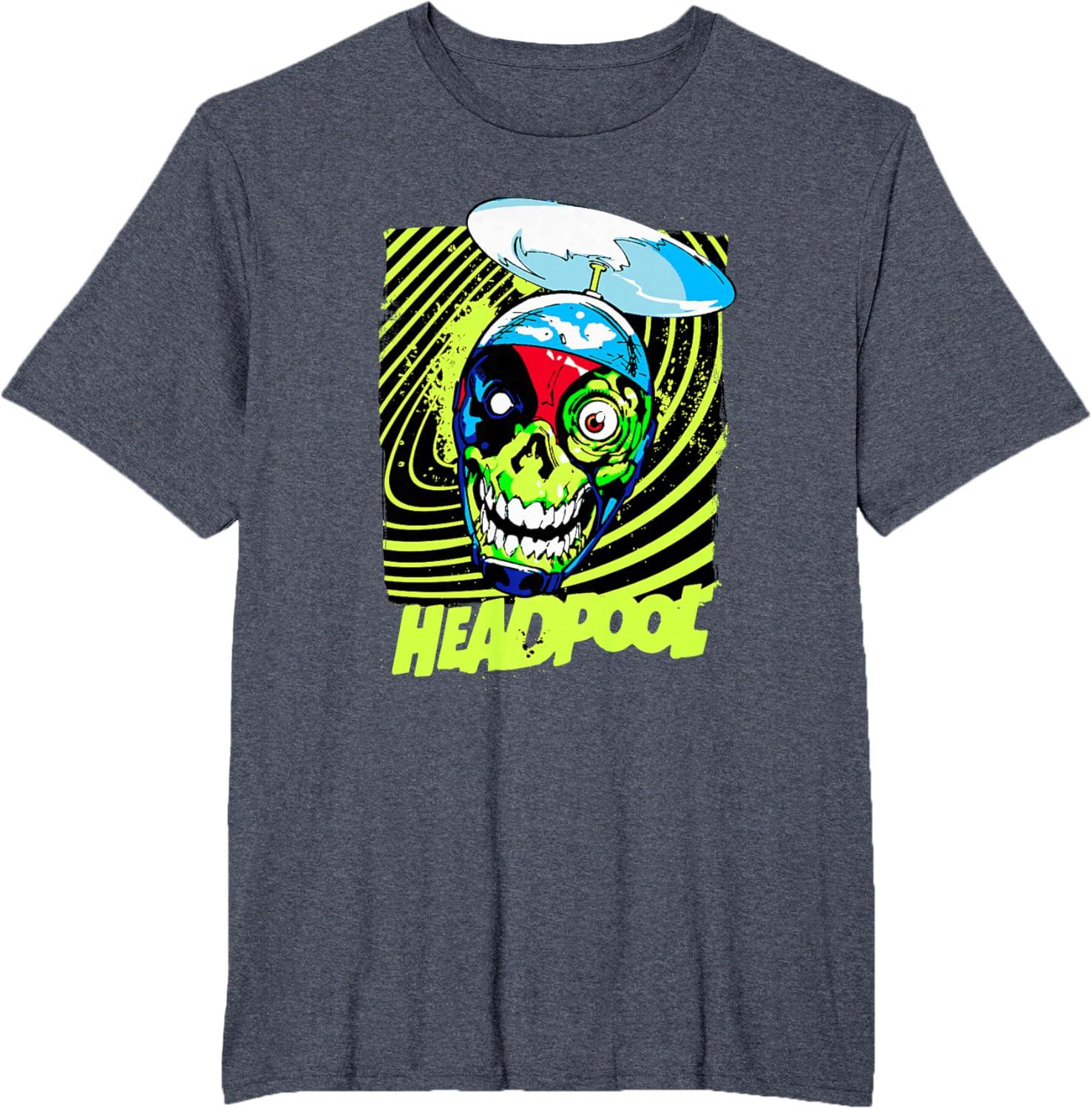 Marvel Comics Deadpool Neon Swirl Zombie Skull T-Shirt(Heather Blue)