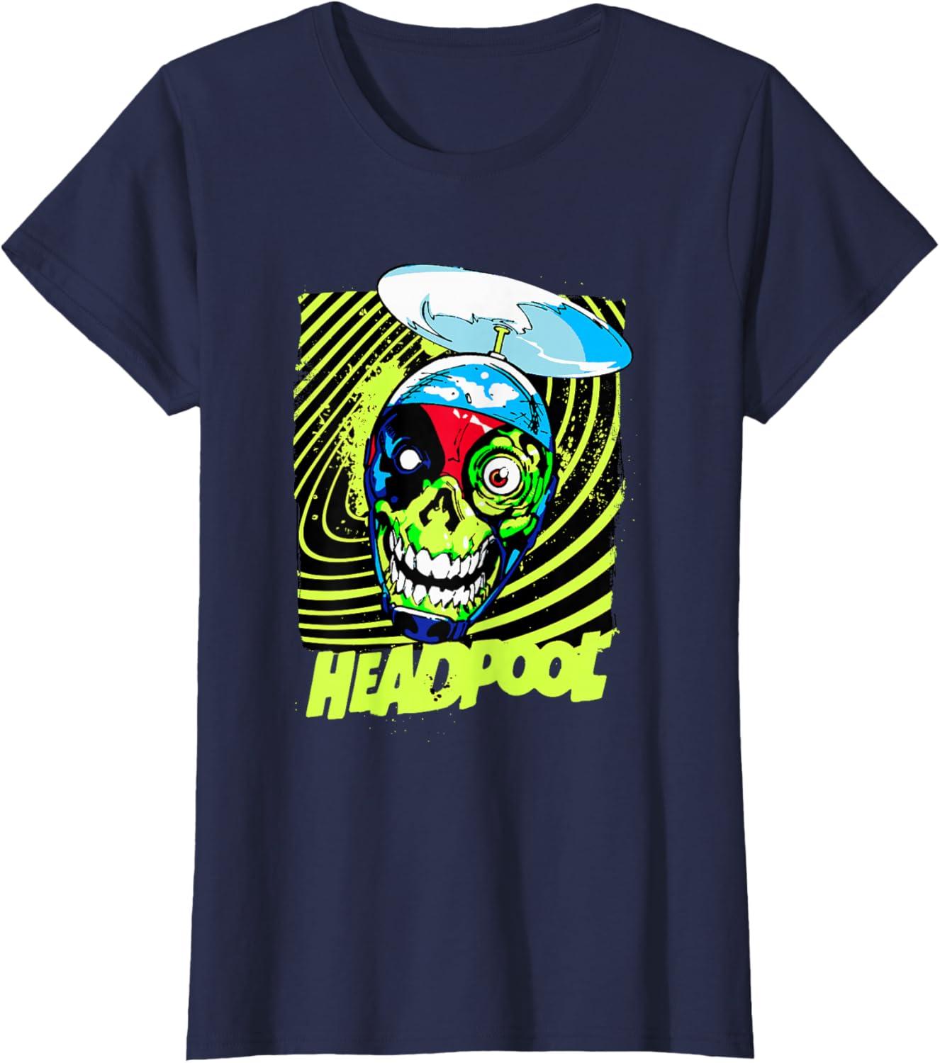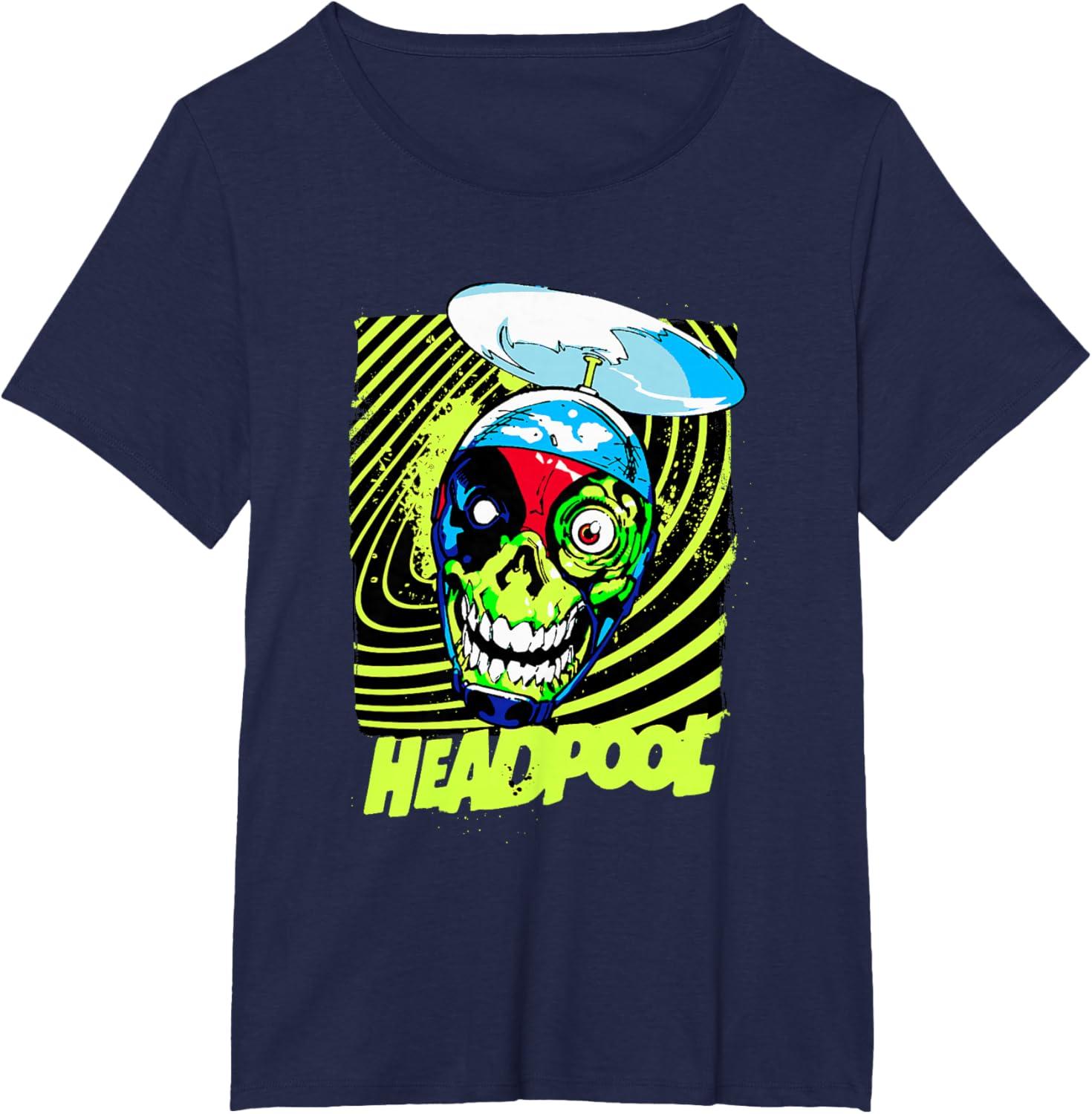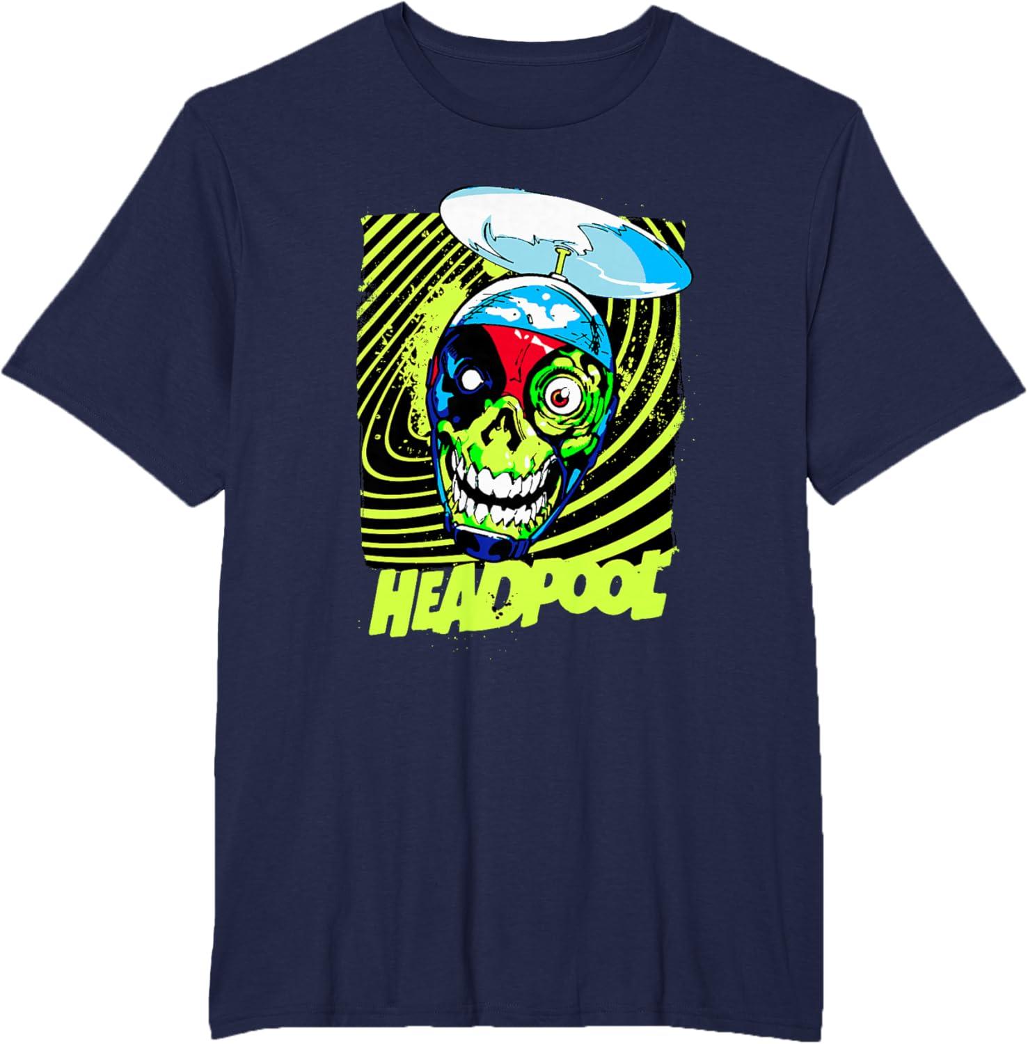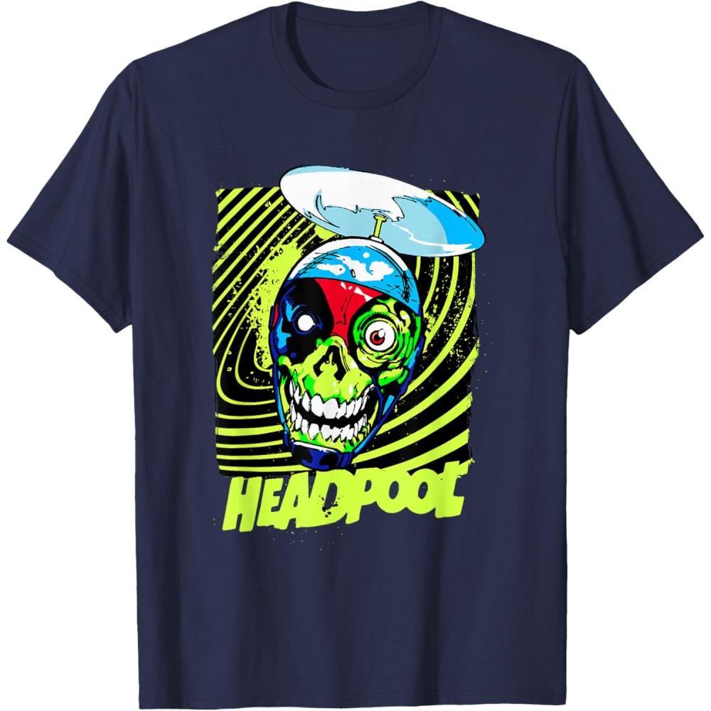 Marvel Comics Deadpool Neon Swirl Zombie Skull T-Shirt(Navy Blue)