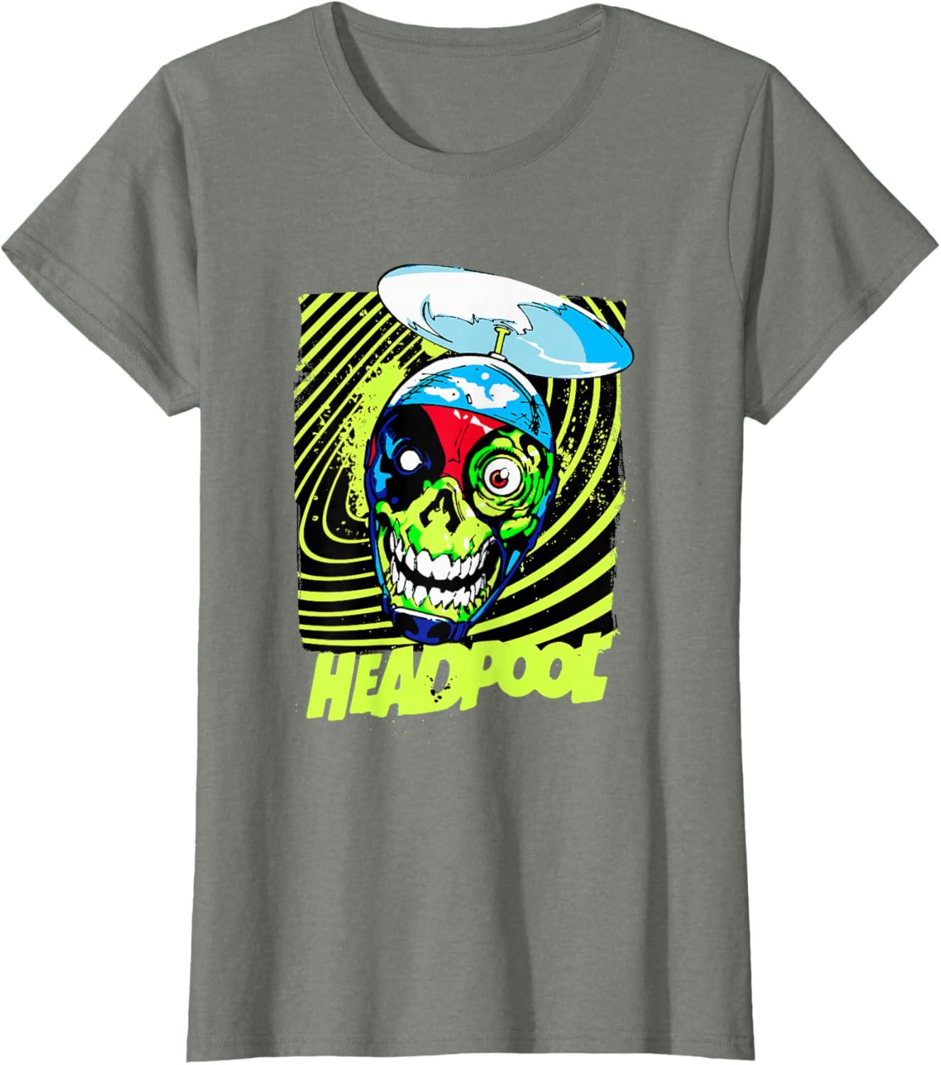 Marvel Comics Deadpool Neon Swirl Zombie Skull T-Shirt(Heather Blue)