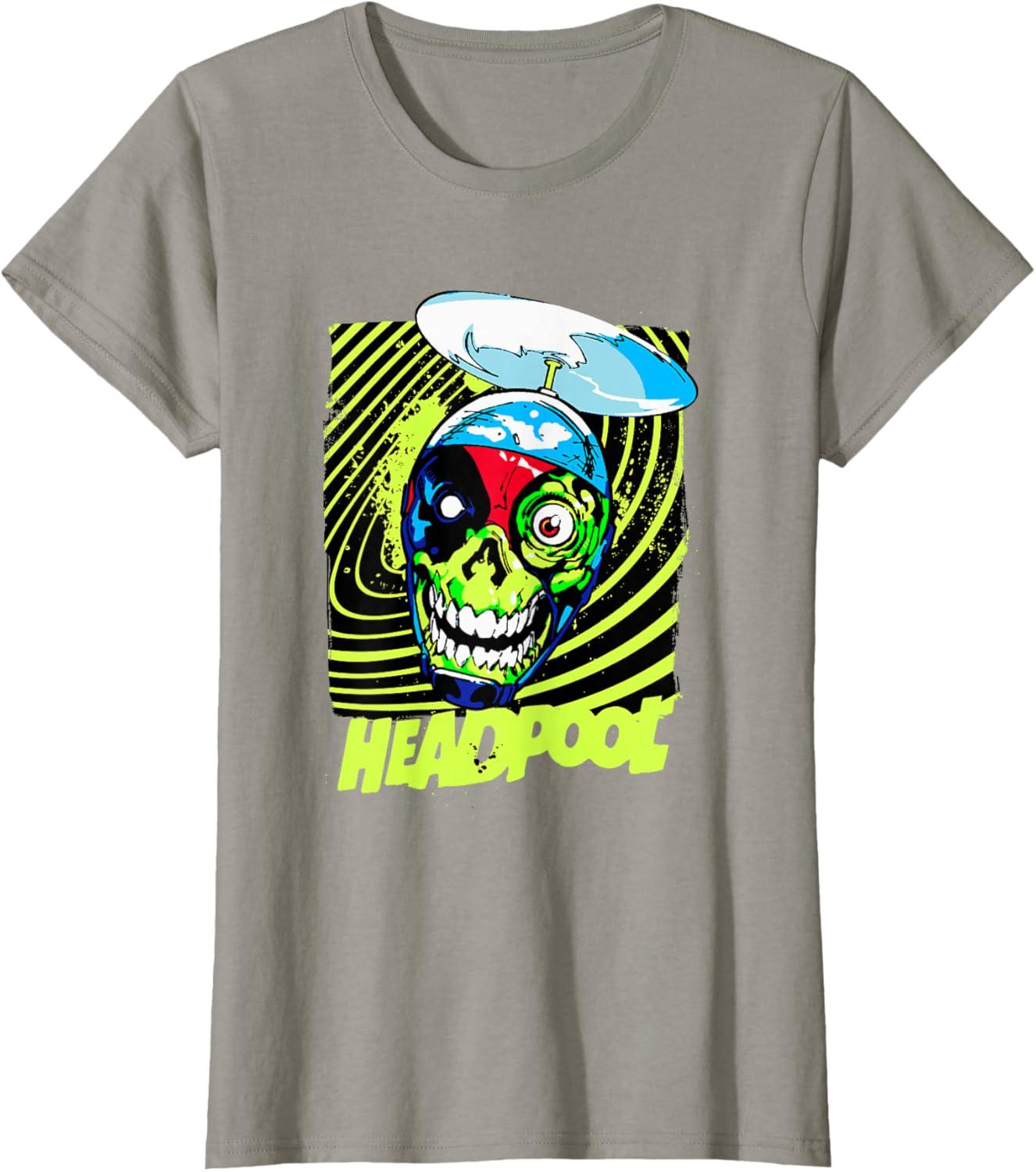 Marvel Comics Deadpool Neon Swirl Zombie Skull T-Shirt(Dark Heather Grey)
