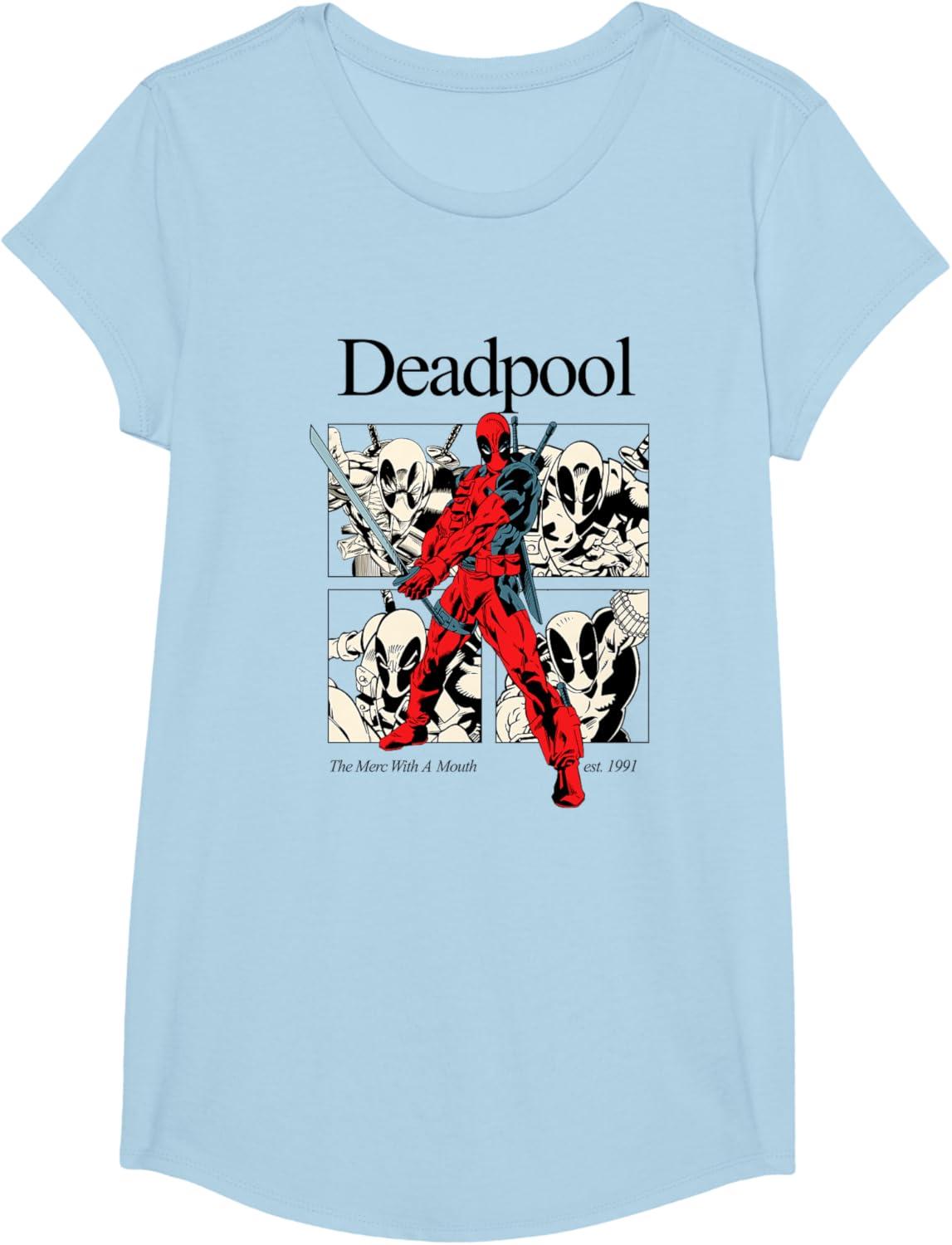 Marvel Comics Deadpool Retro Comic Shout T-Shirt(Baby Blue)