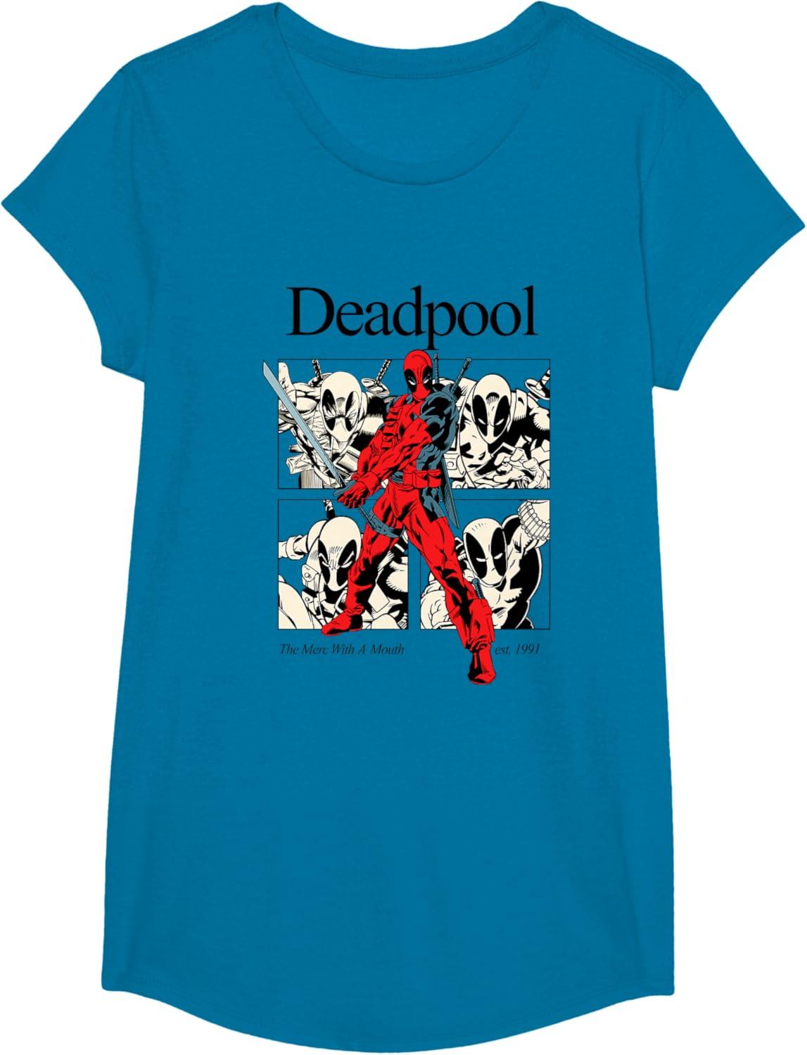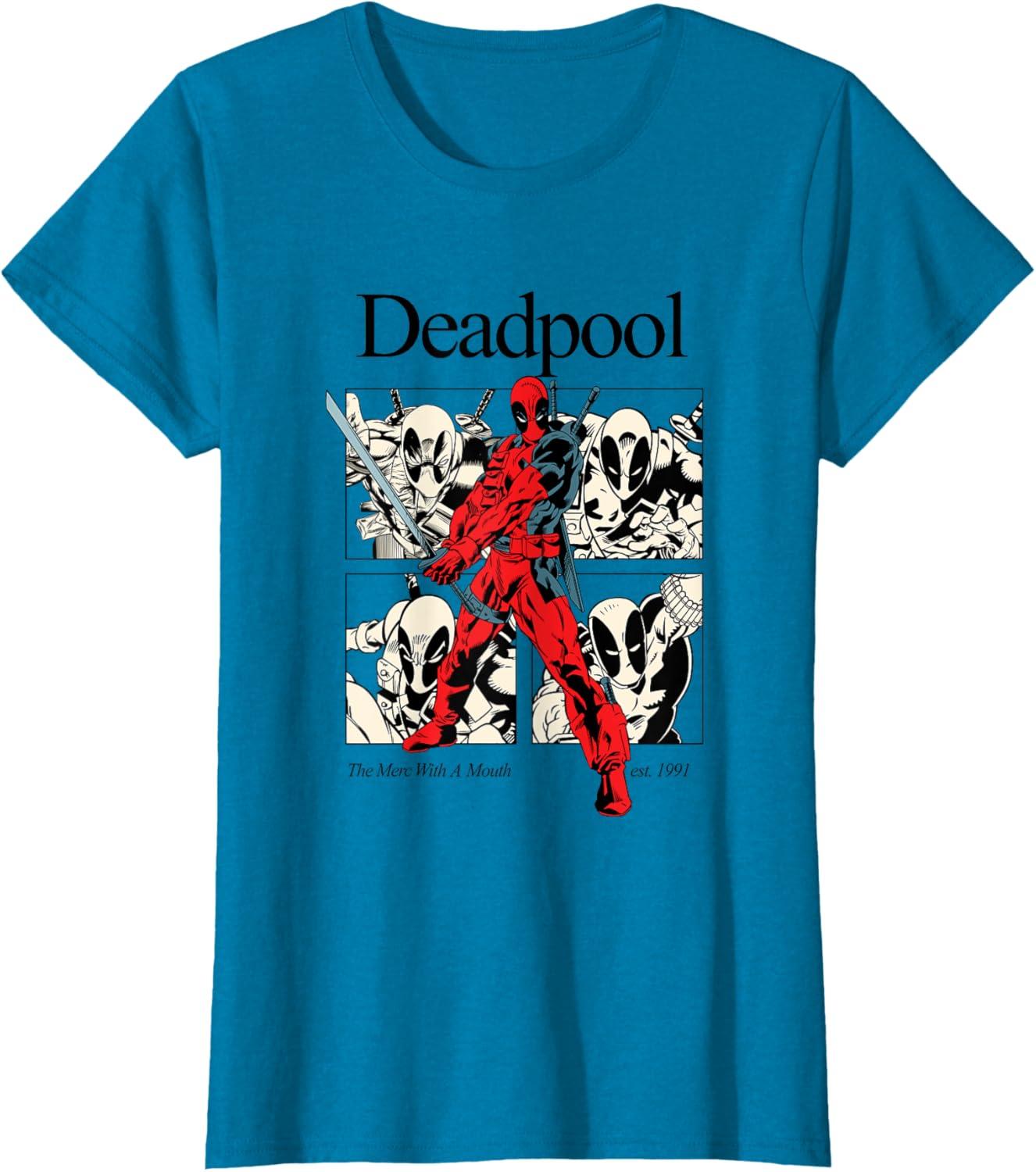 Marvel Comics Deadpool Retro Comic Shout T-Shirt(Sapphire Blue)