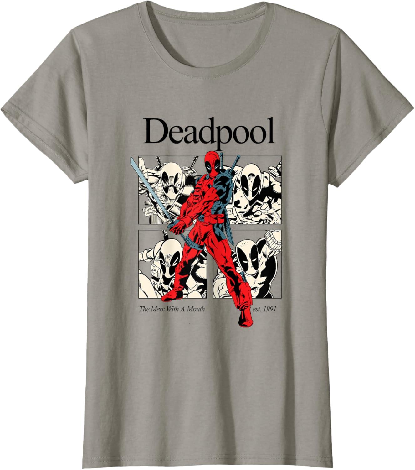 Marvel Comics Deadpool Retro Comic Shout T-Shirt(Slate Grey)