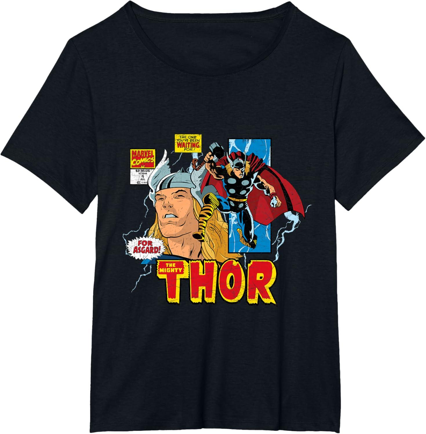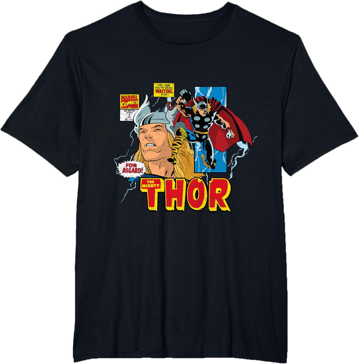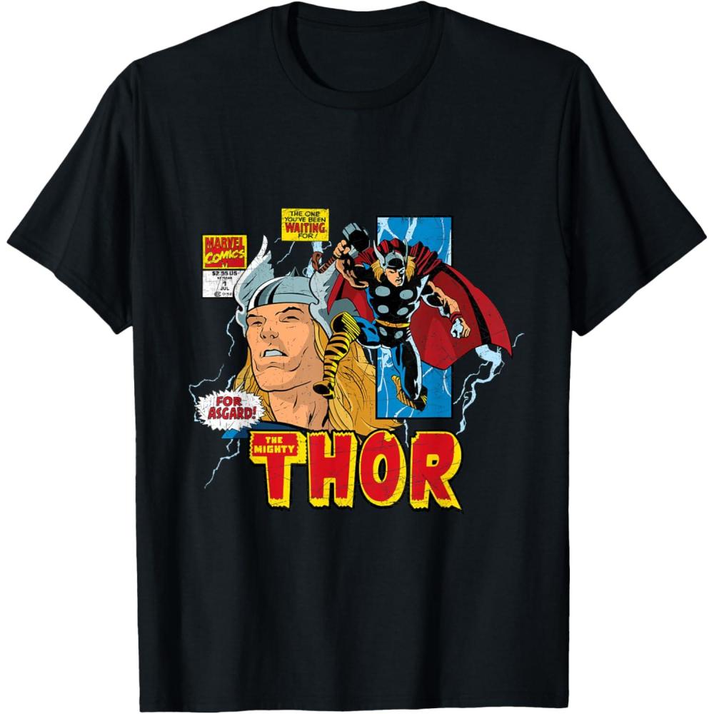 Marvel Comics Mighty Thor Retro Distressed Comic T-Shirt T-Shirt(Black)