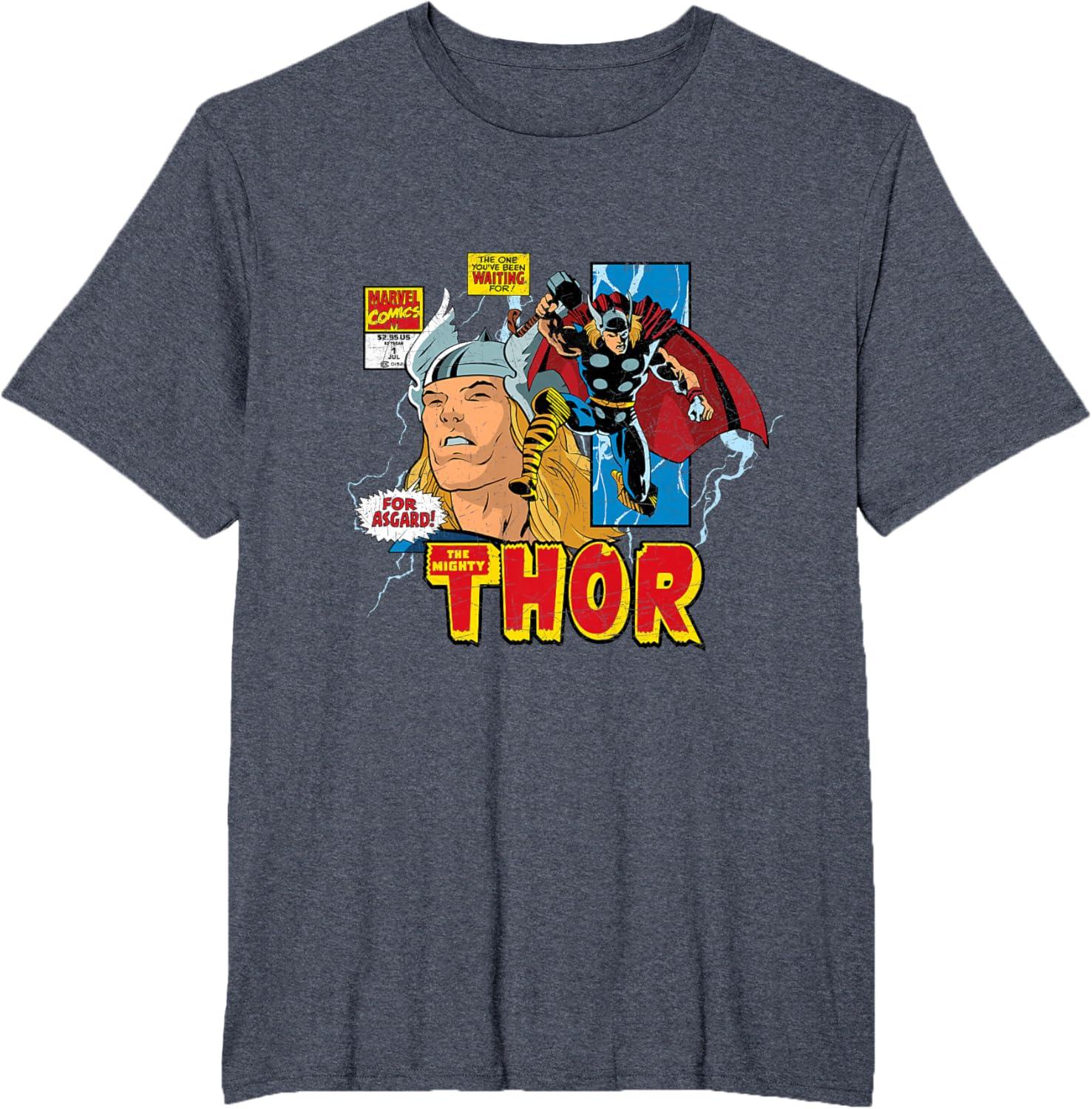 Marvel Comics Mighty Thor Retro Distressed Comic T-Shirt T-Shirt(Heather Blue)