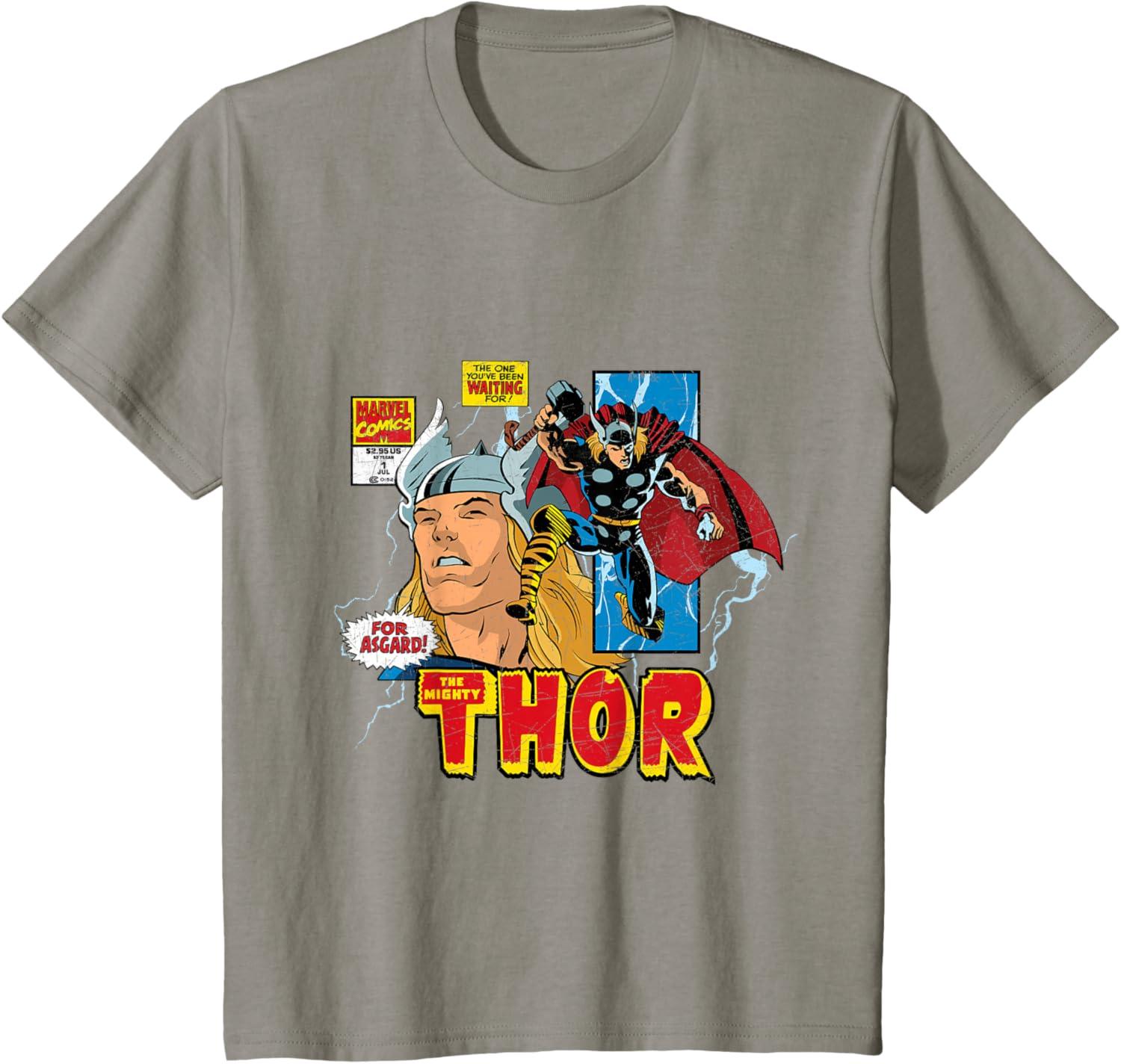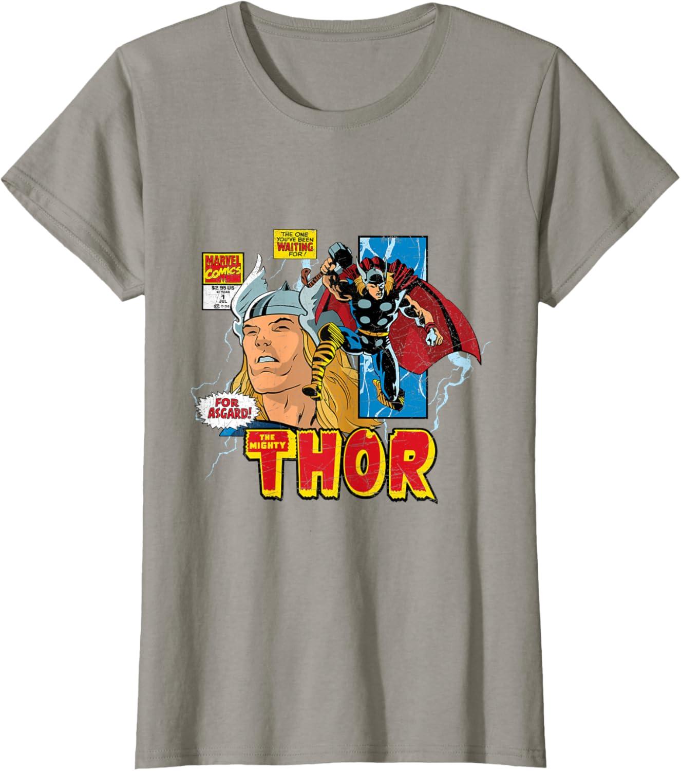Marvel Comics Mighty Thor Retro Distressed Comic T-Shirt T-Shirt(Slate Grey)