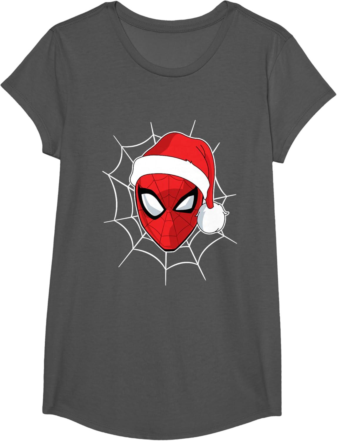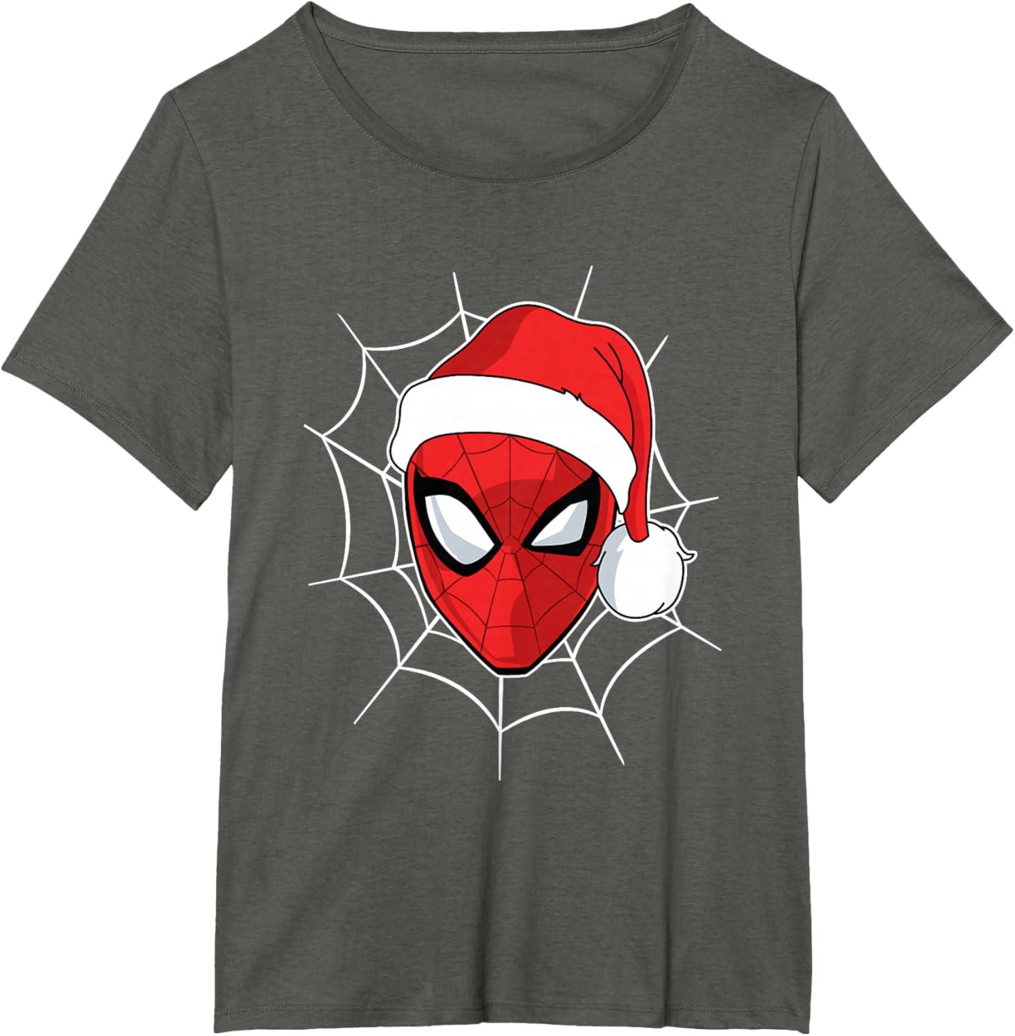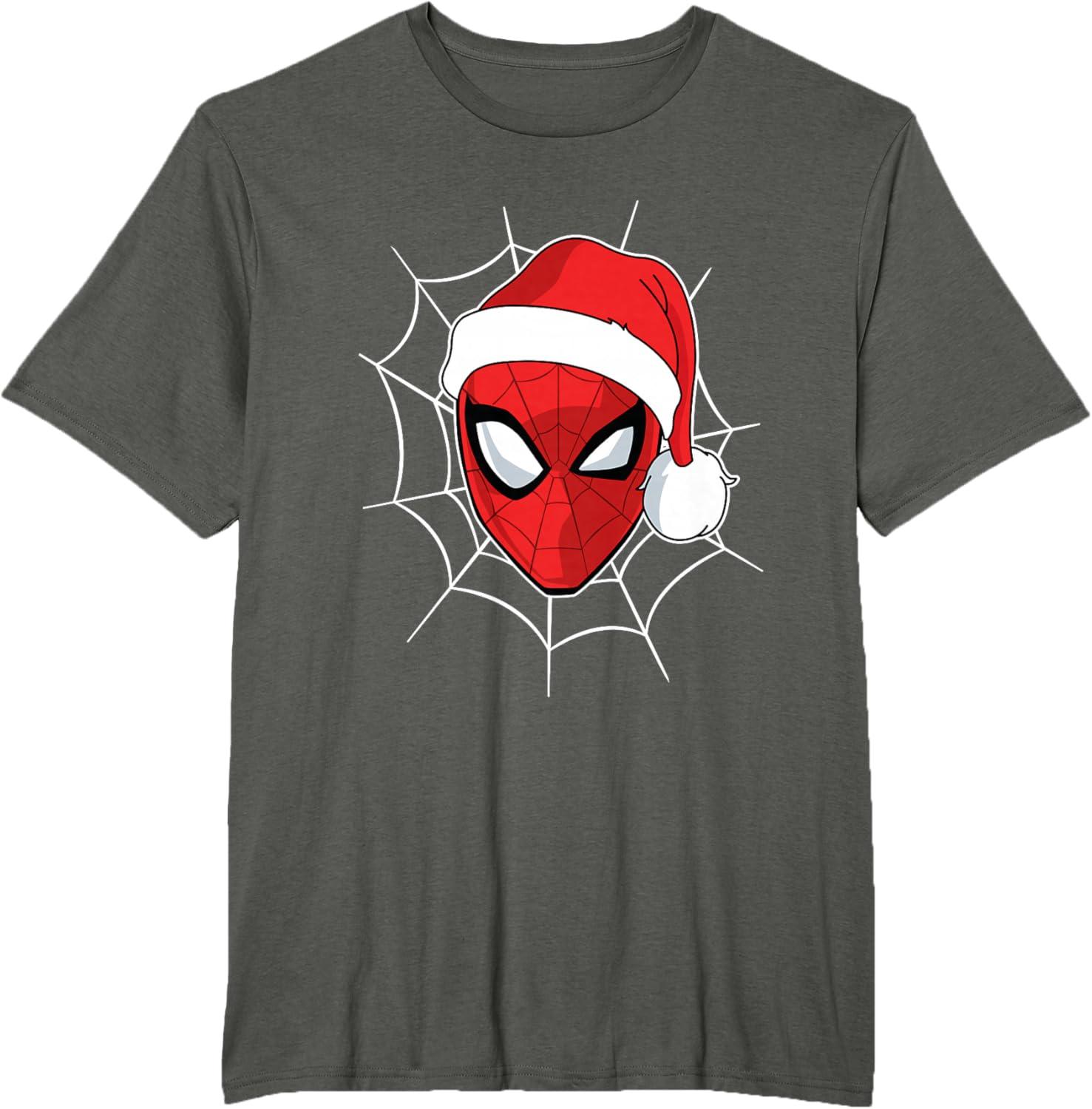 Marvel Comics Spider-Man Christmas Face Portrait T-Shirt(Asphalt Grey)