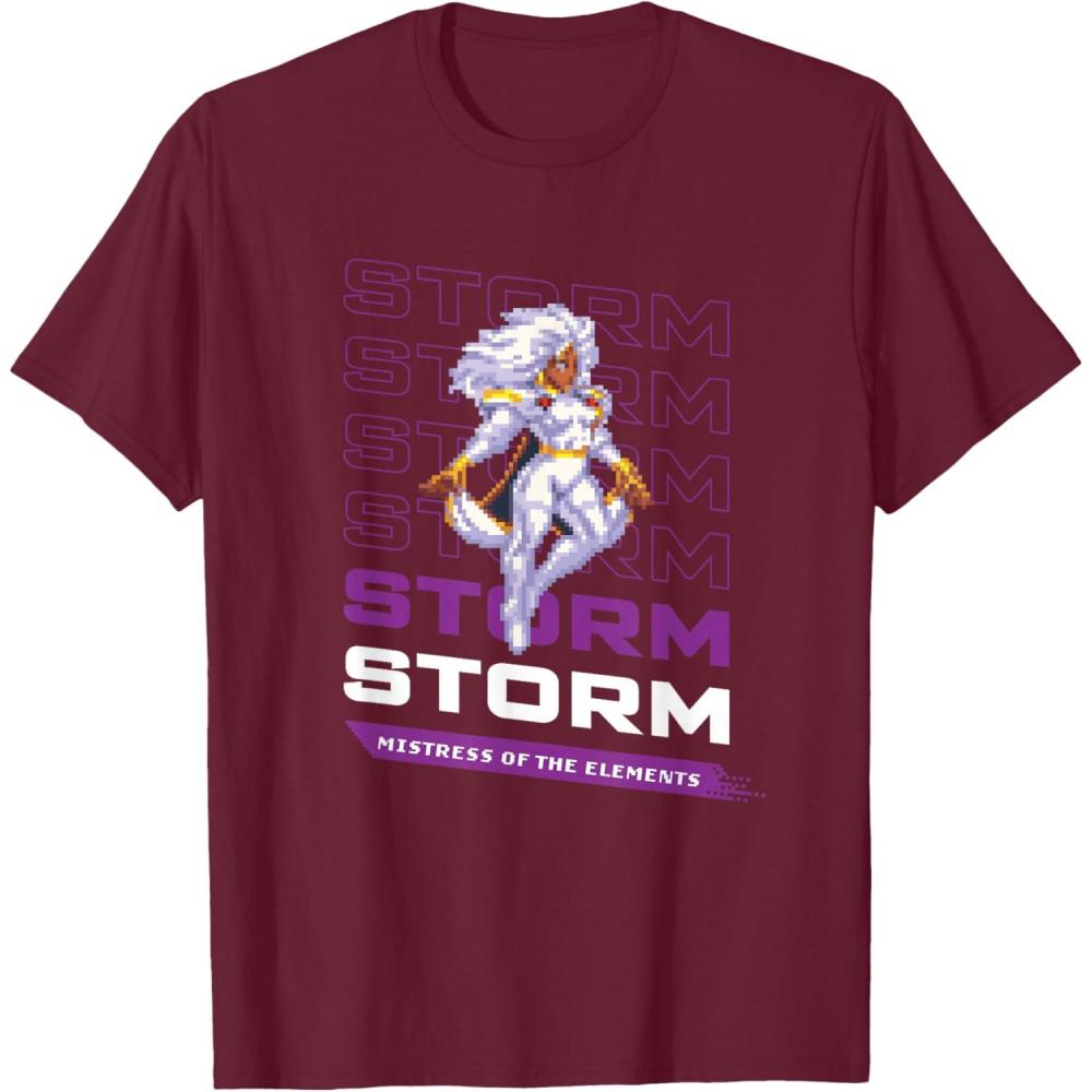 Marvel Cosmic Invasion Game Storm X-Men Retro Pixel Graphics T-Shirt(Burgundy)