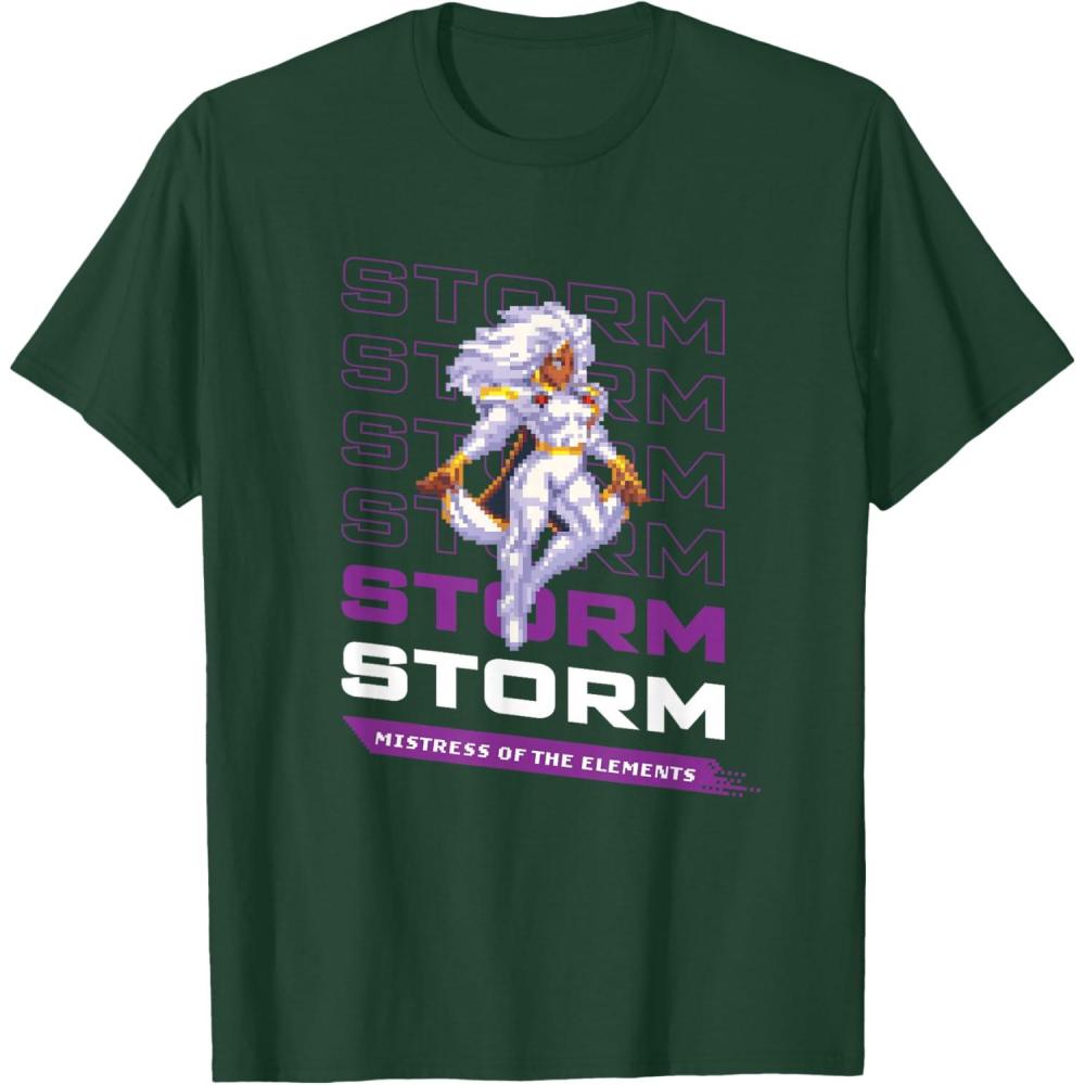 Marvel Cosmic Invasion Game Storm X-Men Retro Pixel Graphics T-Shirt(Dark Green)