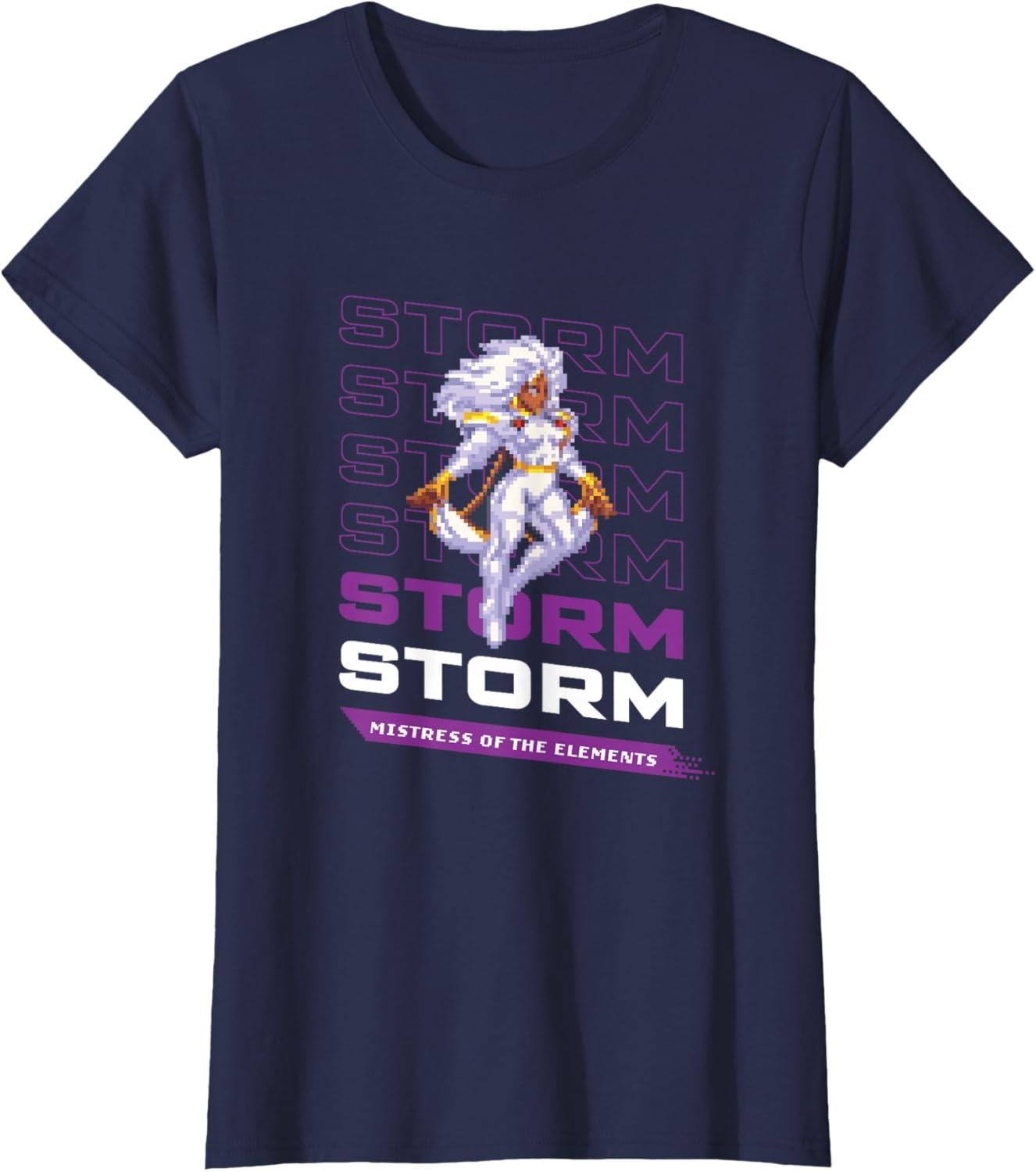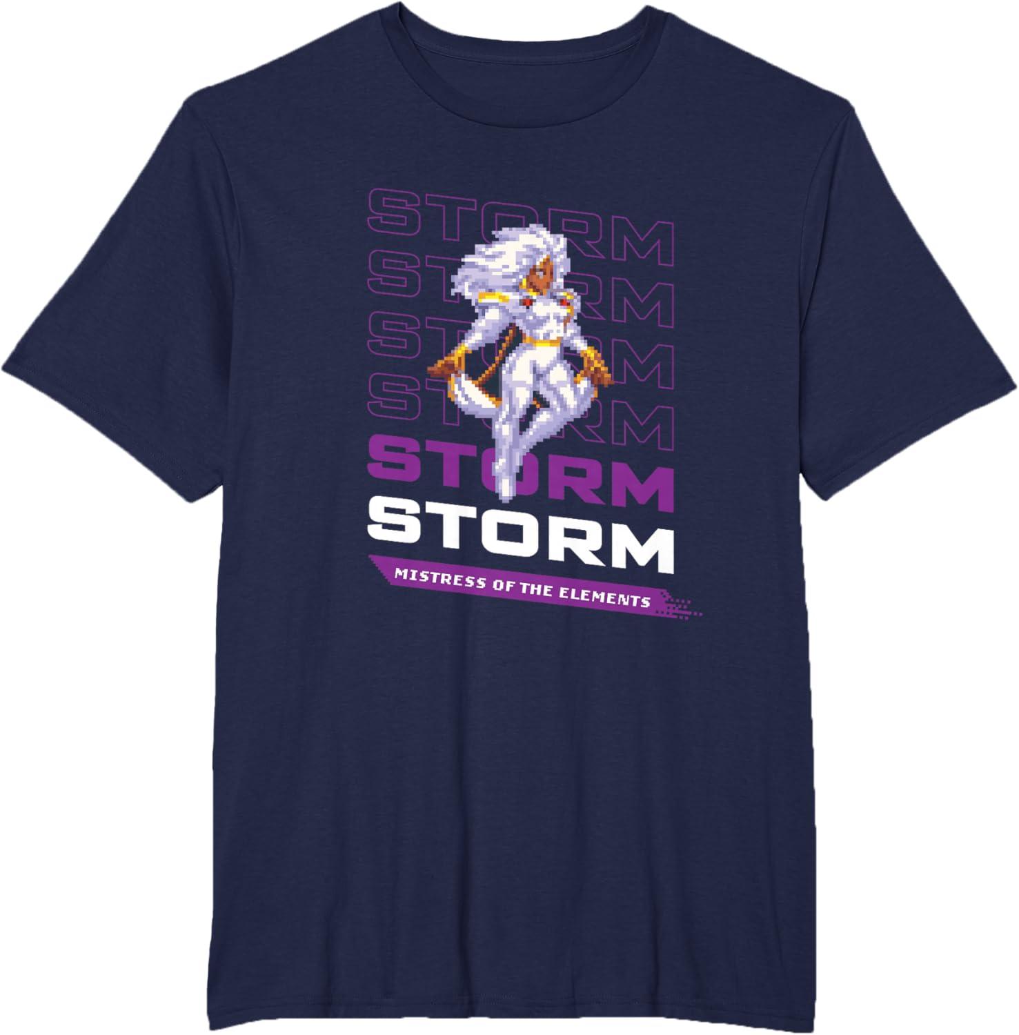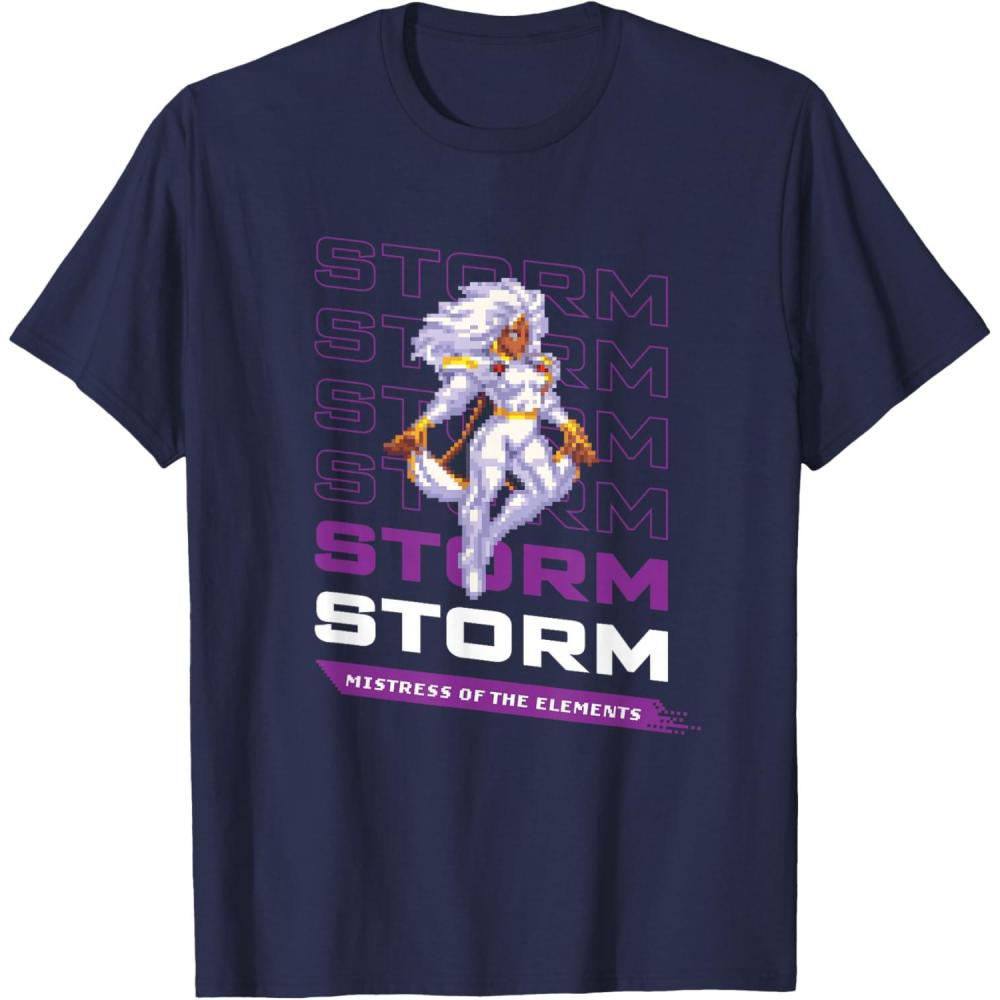 Marvel Cosmic Invasion Game Storm X-Men Retro Pixel Graphics T-Shirt(Navy Blue)