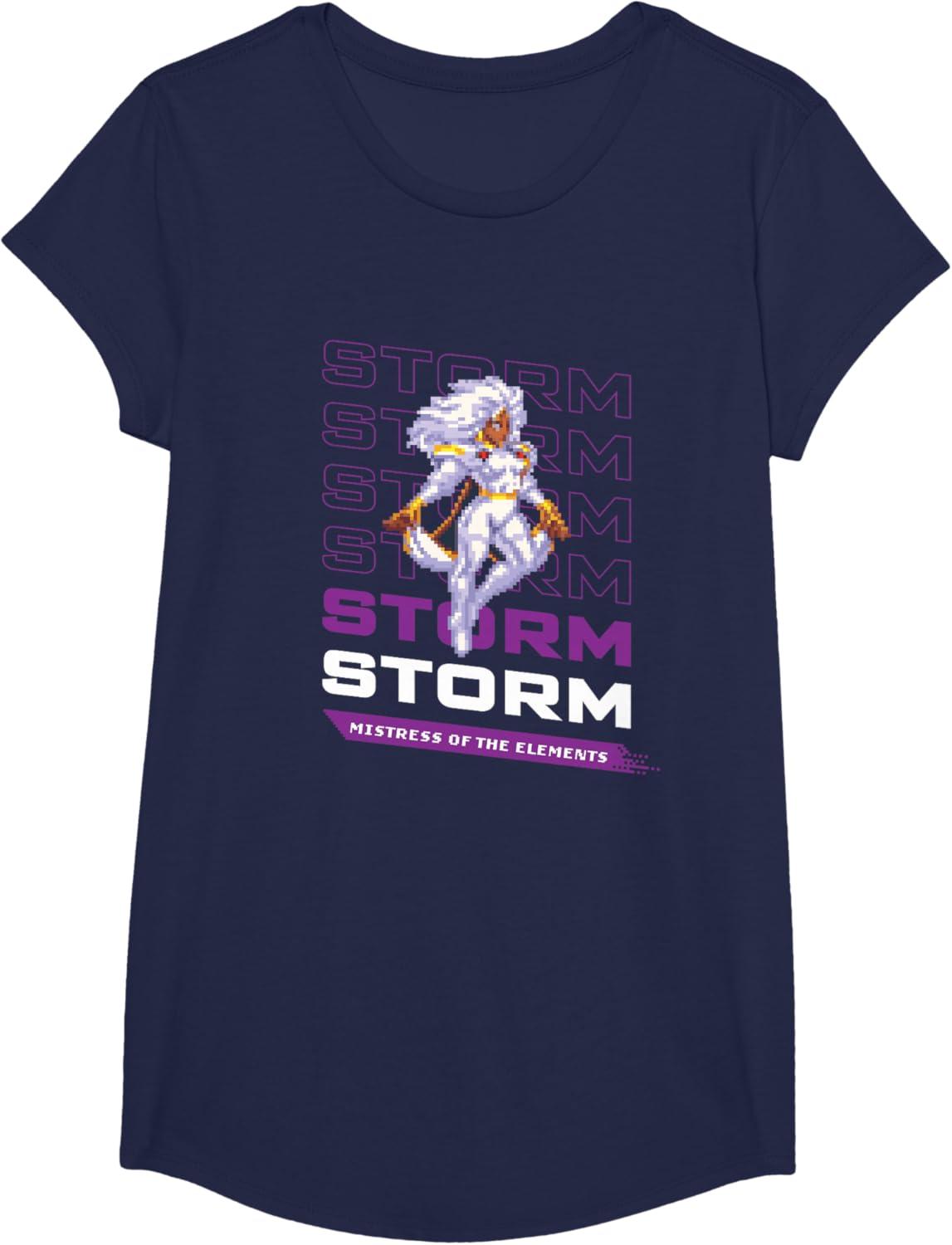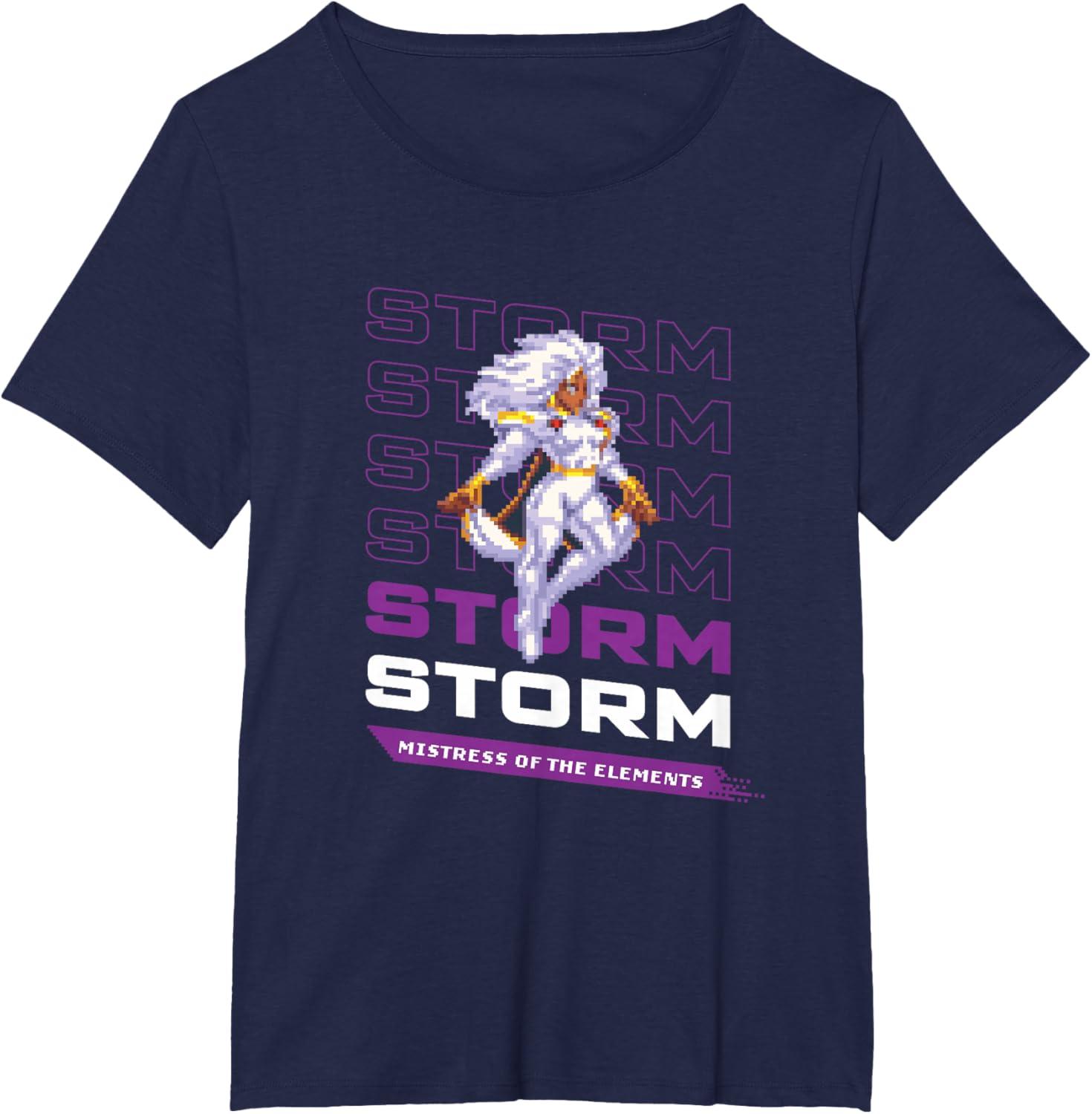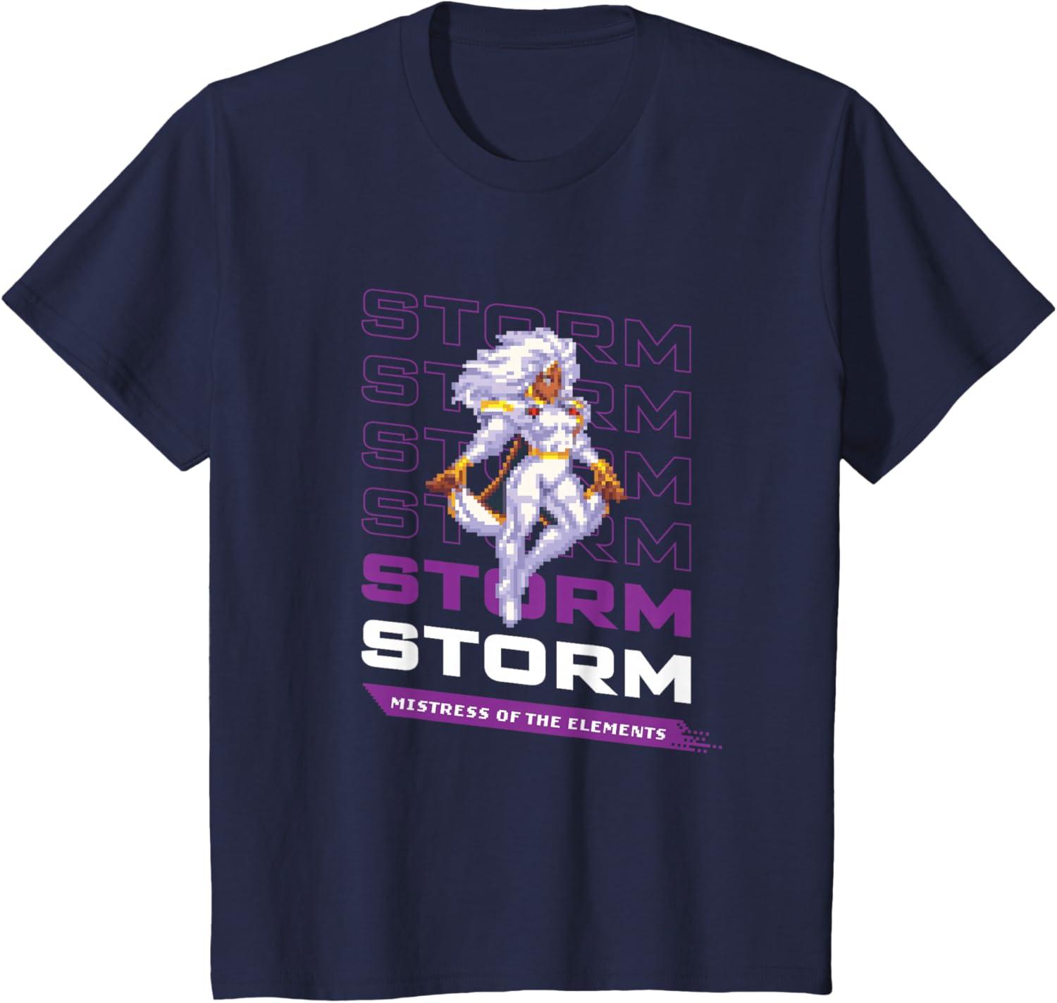 Marvel Cosmic Invasion Game Storm X-Men Retro Pixel Graphics T-Shirt(Navy Blue)