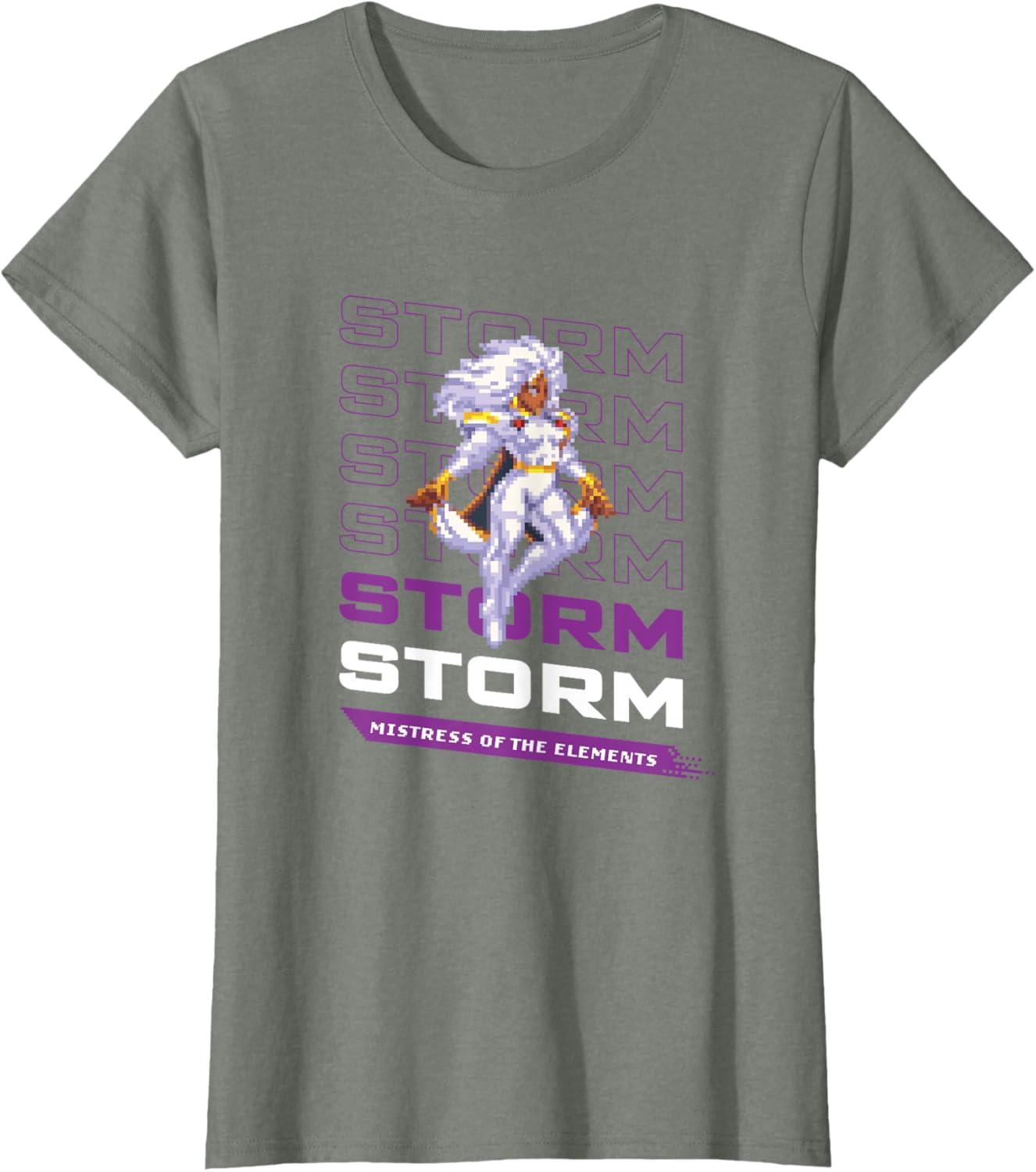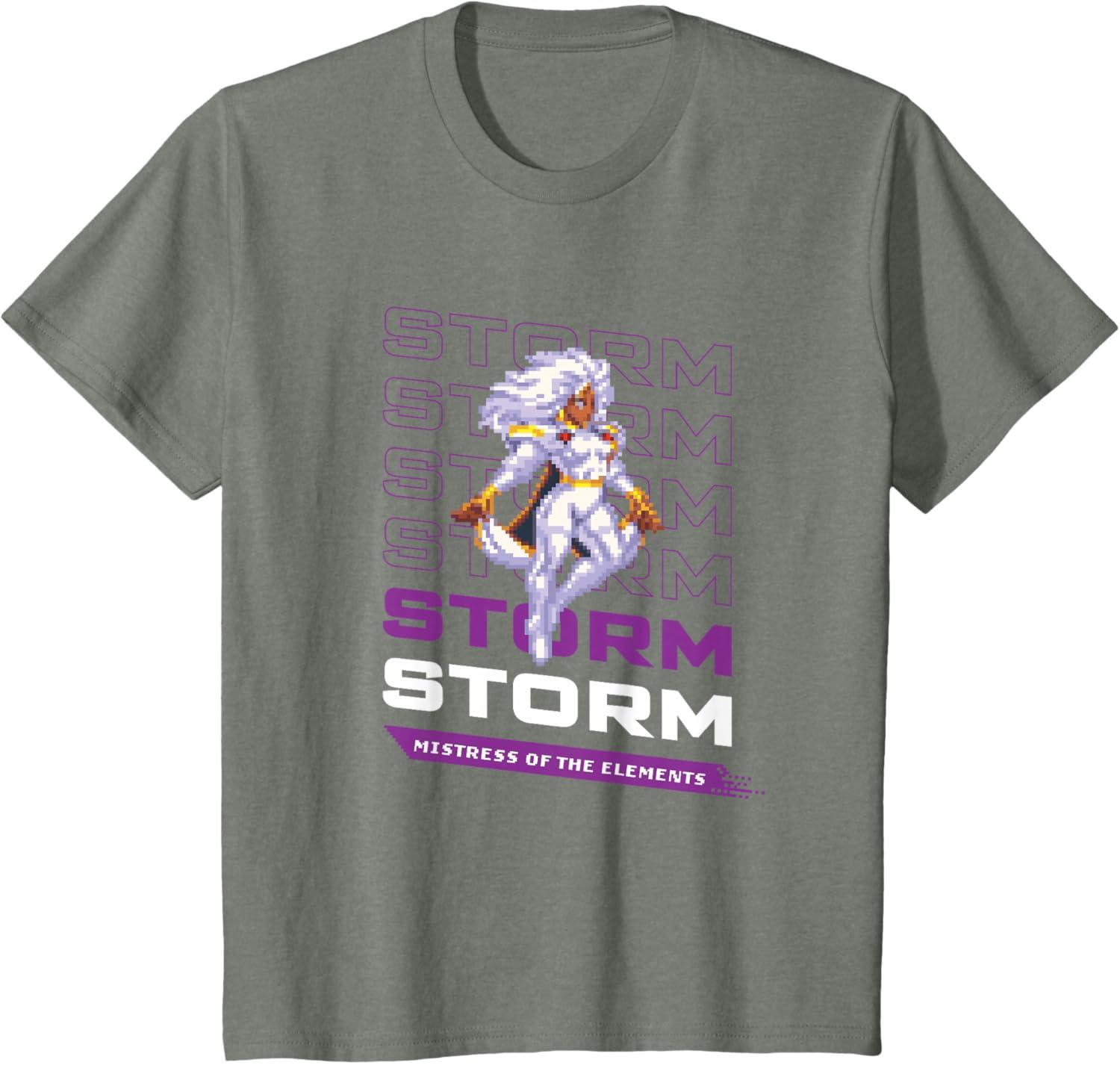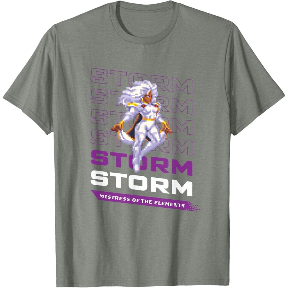 Join the heroes of the Marvel Universe in MARVEL Cosmic Invasion, an all-new, arcade-style, co-op beat-'em-up video game starring a dream roster of Marvel super heroes and villains in a battle from New York City to the Negative Zone against Annihilus and his destructive Annihilation Wave! This official Marvel tee or hoodie features eye-catching, full-color retro pixel art graphics of Storm of the X-Men, with the caption “Mistress of the Elements”. A great gift for a Marvel, Storm, or X-Men fan, and perfect for a comic convention or superhero themed party! Look for our other MARVEL Cosmic Invasion graphic tee designs and wear matching Marvel t-shirts with friends and family on your epic trip or vacation to Avengers Campus at Disney California Adventure Park, Disneyland, or Walt Disney World. Available in youth and adult sizes. Find it in a t-shirt, premium t-shirt, tank top, v-neck, long sleeve tee, hoodie, and sweatshirt.
