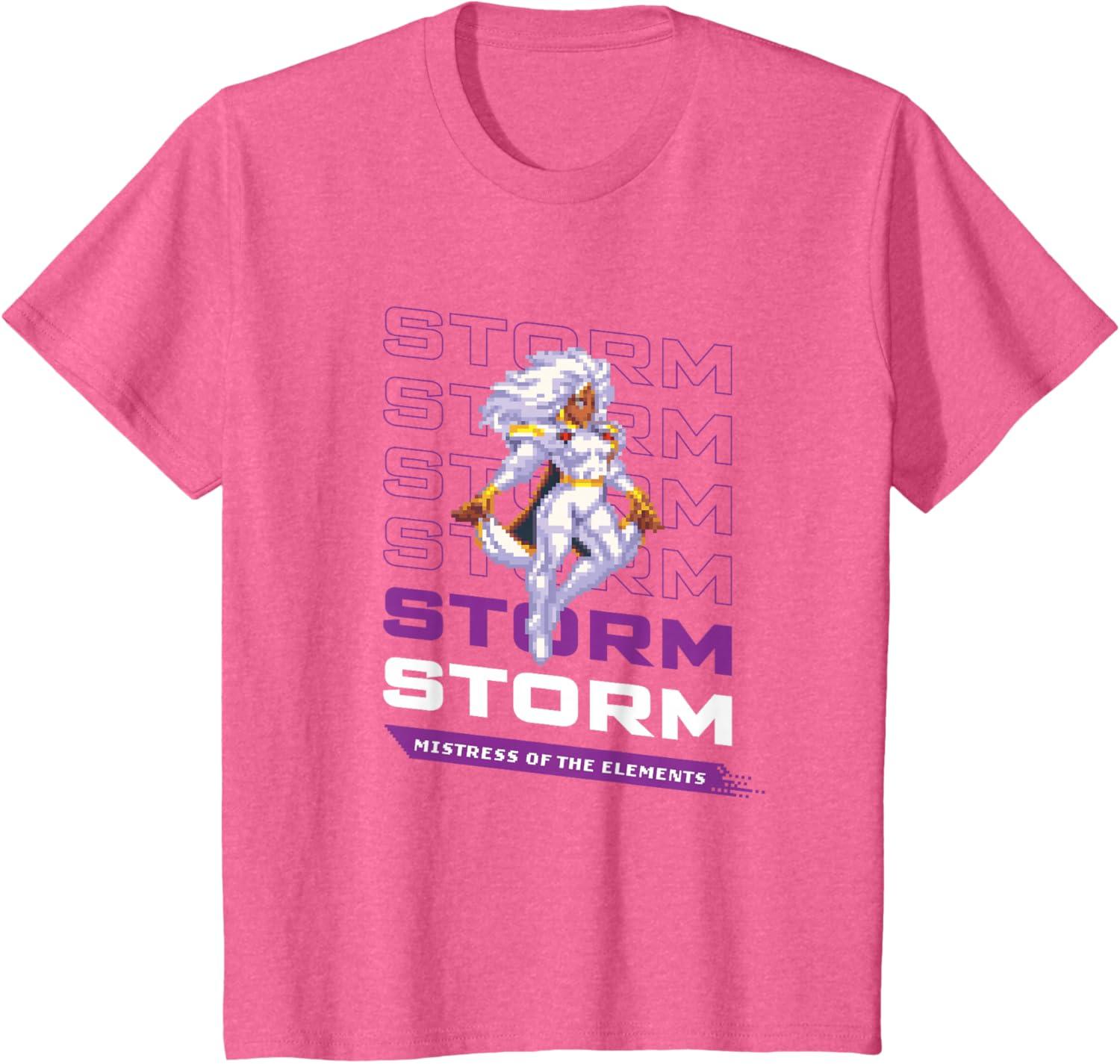 Marvel Cosmic Invasion Game Storm X-Men Retro Pixel Graphics T-Shirt(Pink Heather)