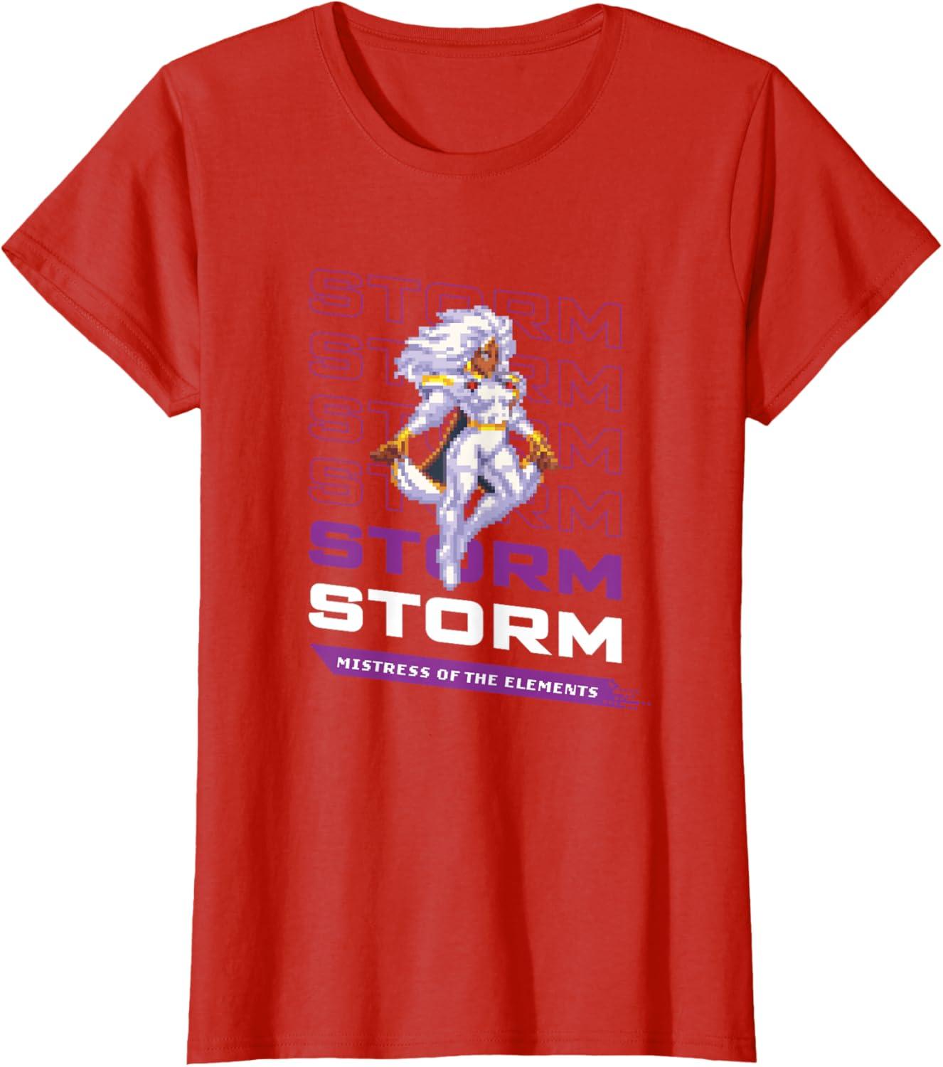 Marvel Cosmic Invasion Game Storm X-Men Retro Pixel Graphics T-Shirt(Red)
