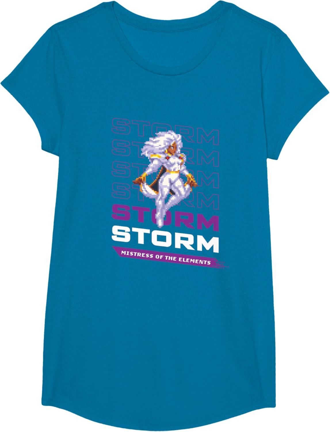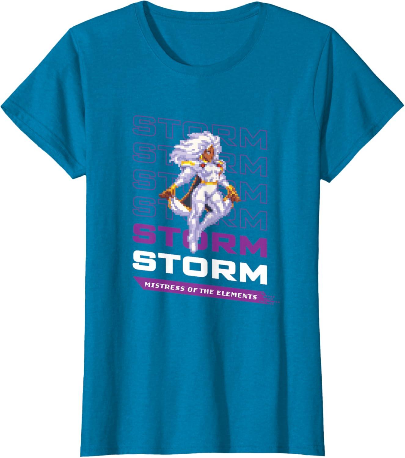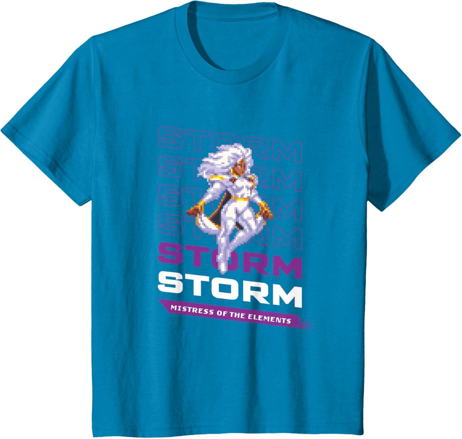 Marvel Cosmic Invasion Game Storm X-Men Retro Pixel Graphics T-Shirt(Sapphire Blue)