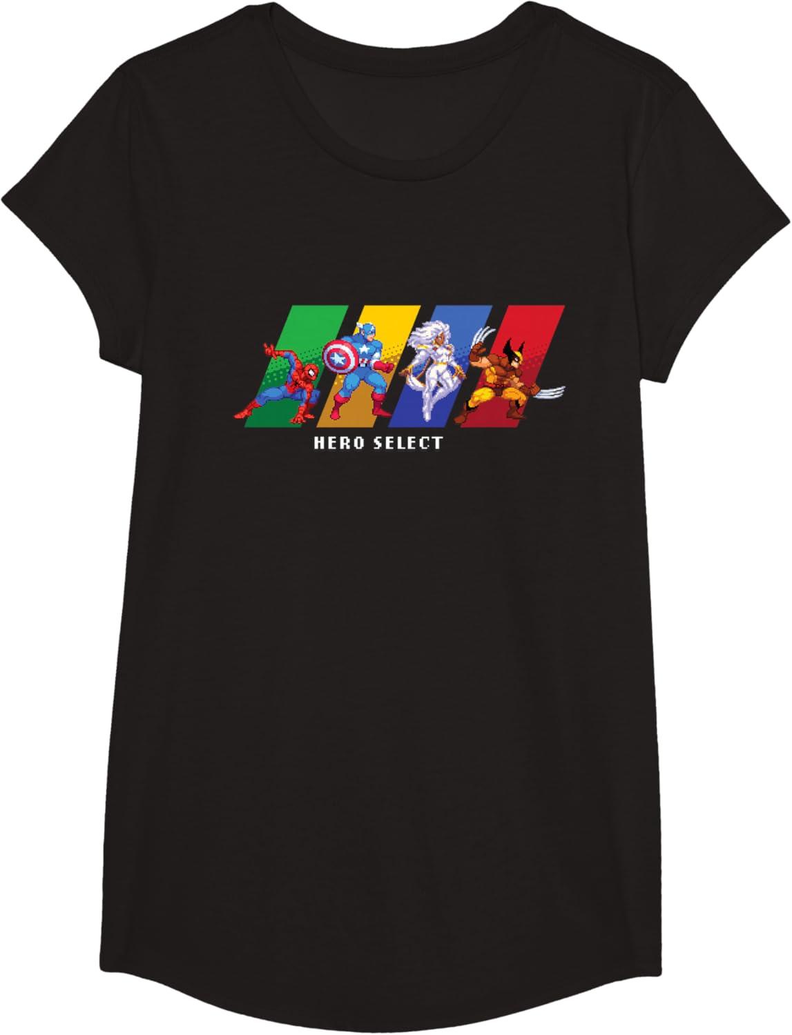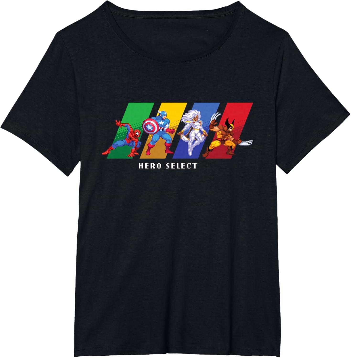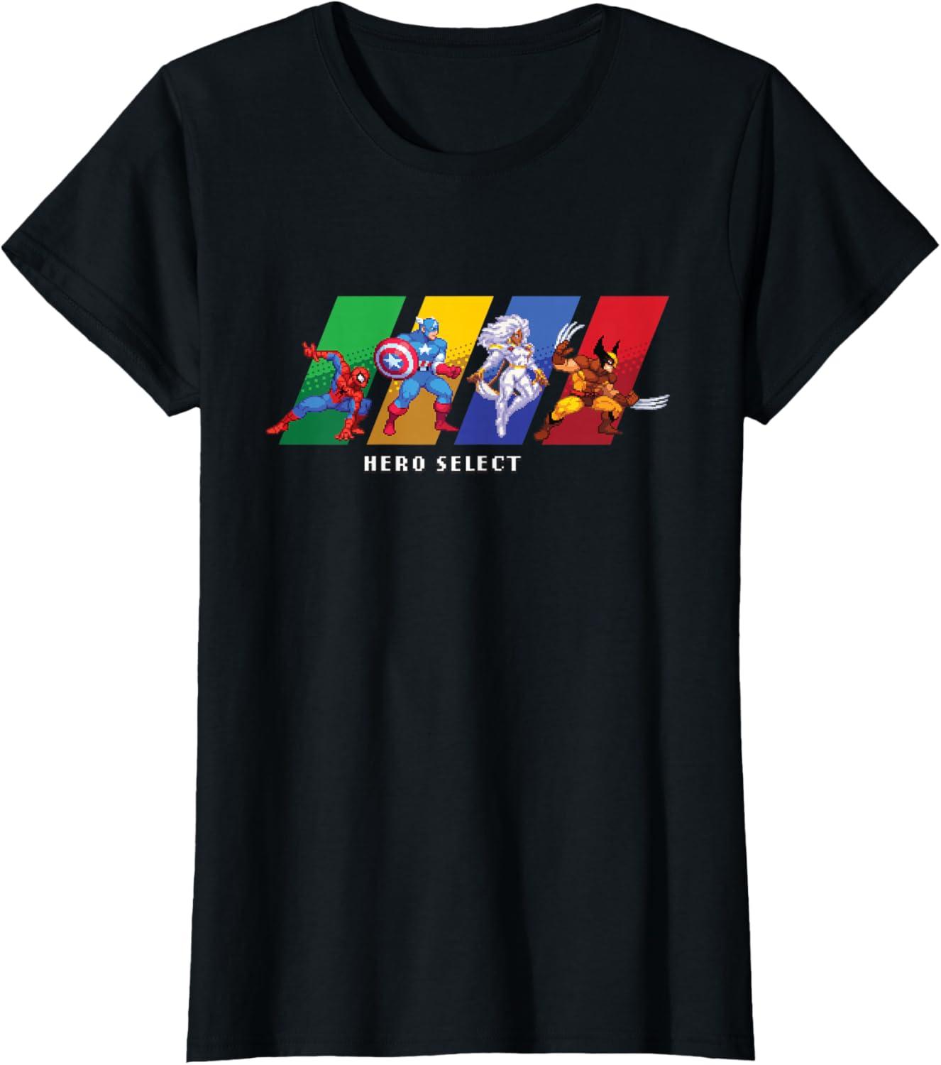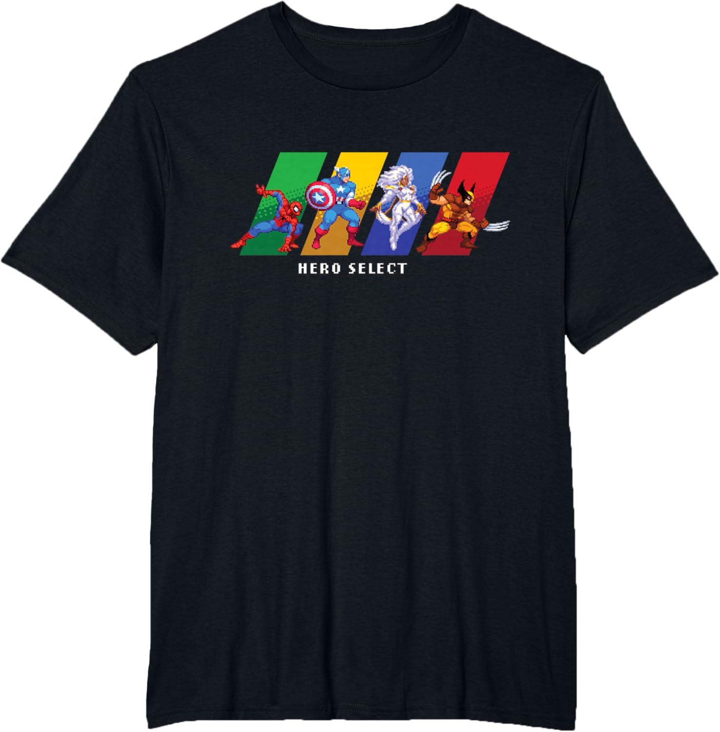 Join the heroes of the Marvel Universe in MARVEL Cosmic Invasion, an all-new, arcade-style, co-op beat-'em-up video game starring a dream roster of Marvel super heroes and villains in a battle from New York City to the Negative Zone against Annihilus and his destructive Annihilation Wave! This full-color official Marvel tee or hoodie features the Hero Select screen, with retro pixel art graphics of Spider-Man, Captain America, and Storm and Wolverine of the X-Men. A great gift for a Marvel fan, and perfect for a comic convention or superhero themed party! Get multiples and wear matching Marvel t-shirts with friends and family on your epic trip or vacation to Avengers Campus at Disney California Adventure Park, Disneyland, or Walt Disney World. Available in youth and adult sizes. Find it in a t-shirt, premium t-shirt, tank top, v-neck, long sleeve tee, hoodie, and sweatshirt.