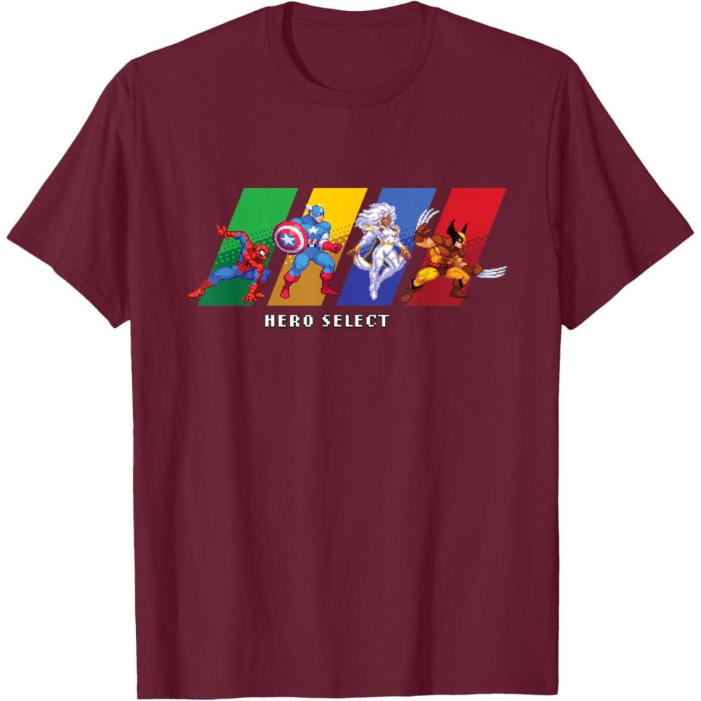 Marvel Cosmic Invasion Game Super Hero Select Screen Retro T-Shirt(Burgundy)